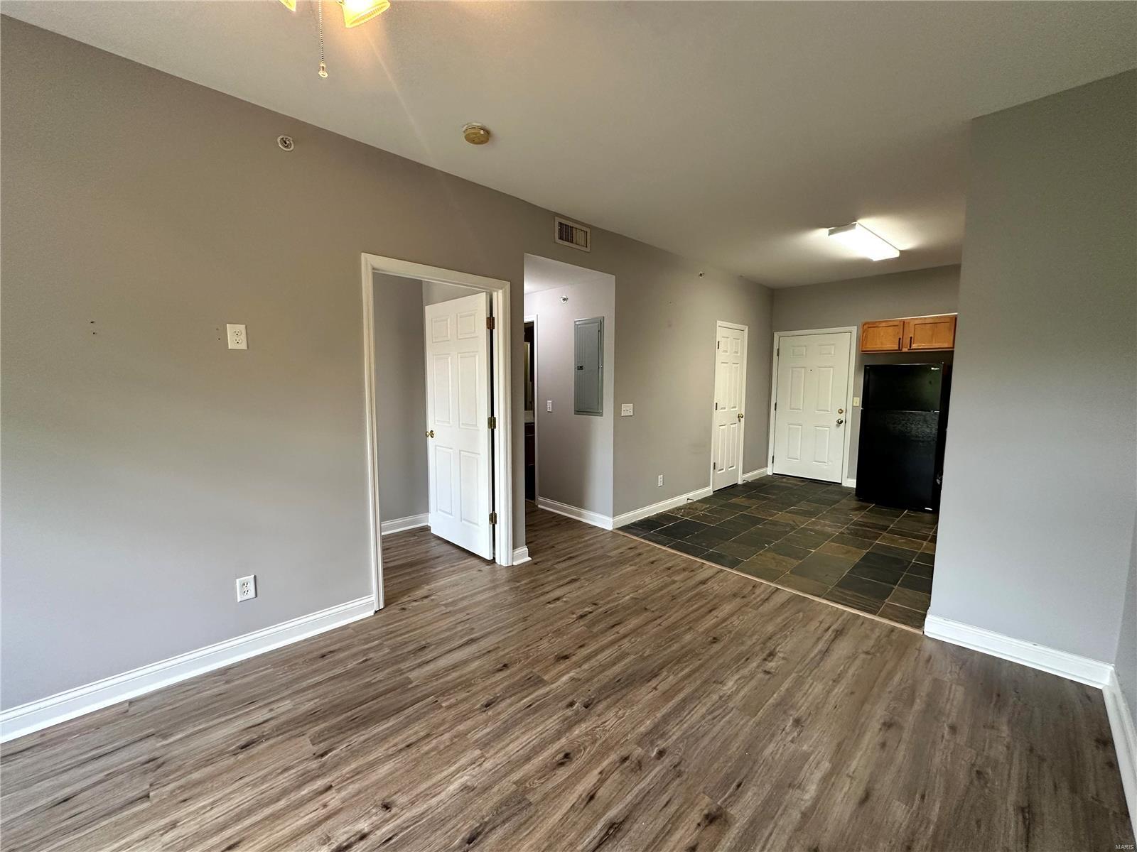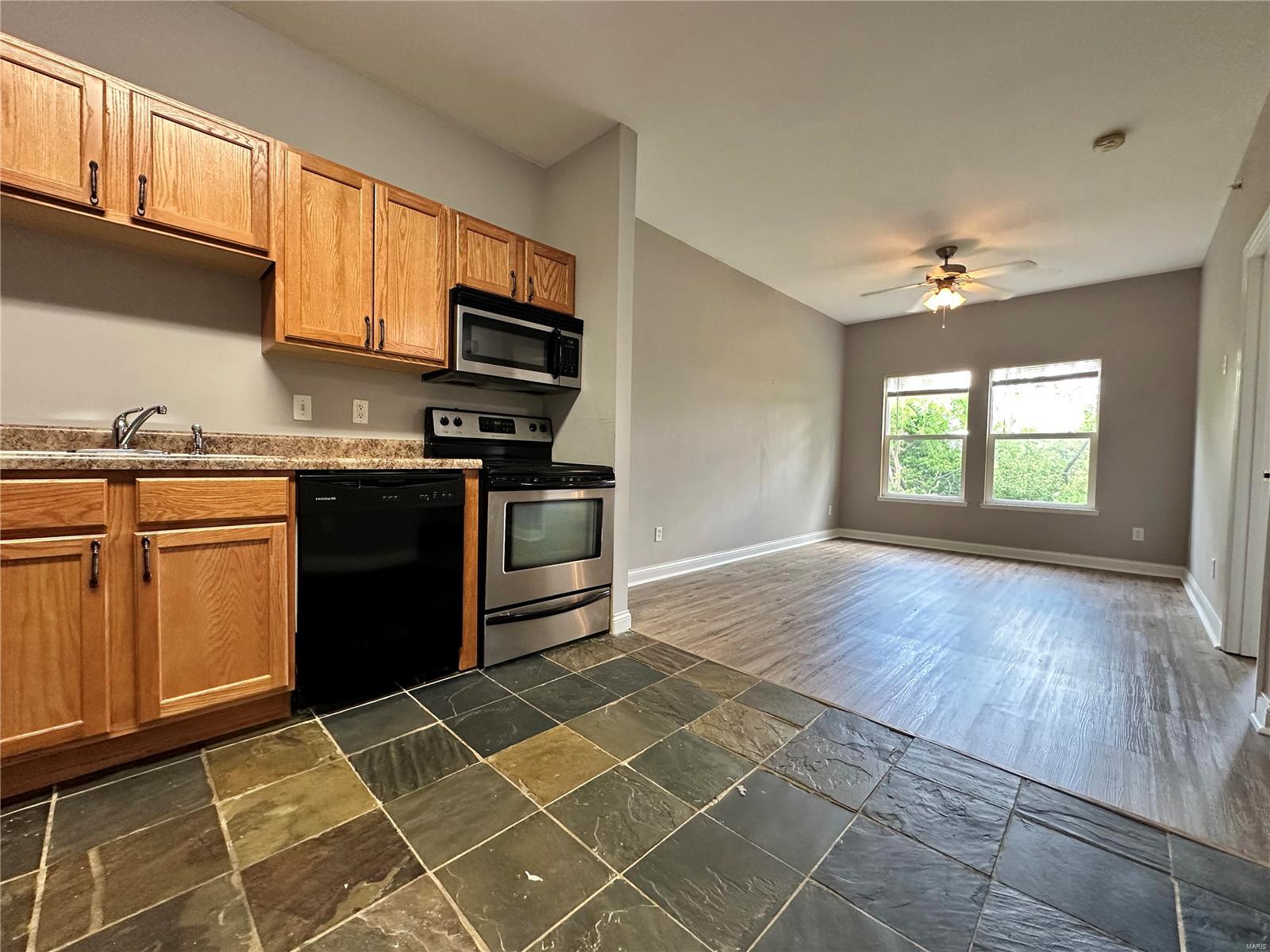 St. Louis County one-bedroom condo in a very desirable Mehlville area. Only 17 years old building. A second-floor unit that offers a great spacious open floor plan. 9” feet ceilings. Kitchen with plenty of cabinet spaces and some stainless-steel appliances. Laminated and tile floors. Good size bathroom with laundry closet. Back to common grounds and an assigned parking space at the front of the building. An elevator in the building to the second floor. Close to shopping, Jefferson Barracks Park, and Greenway trails