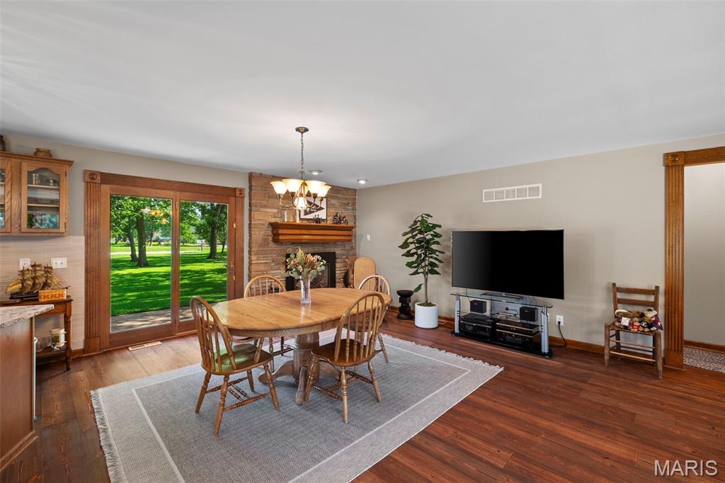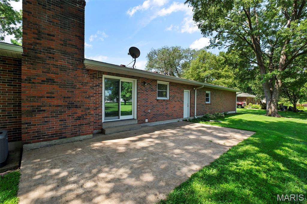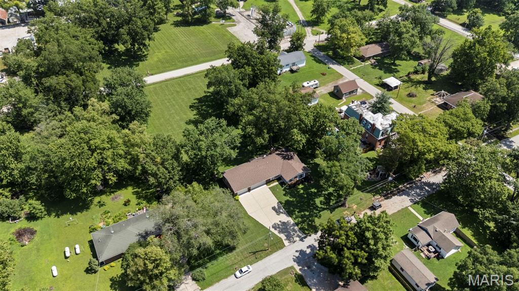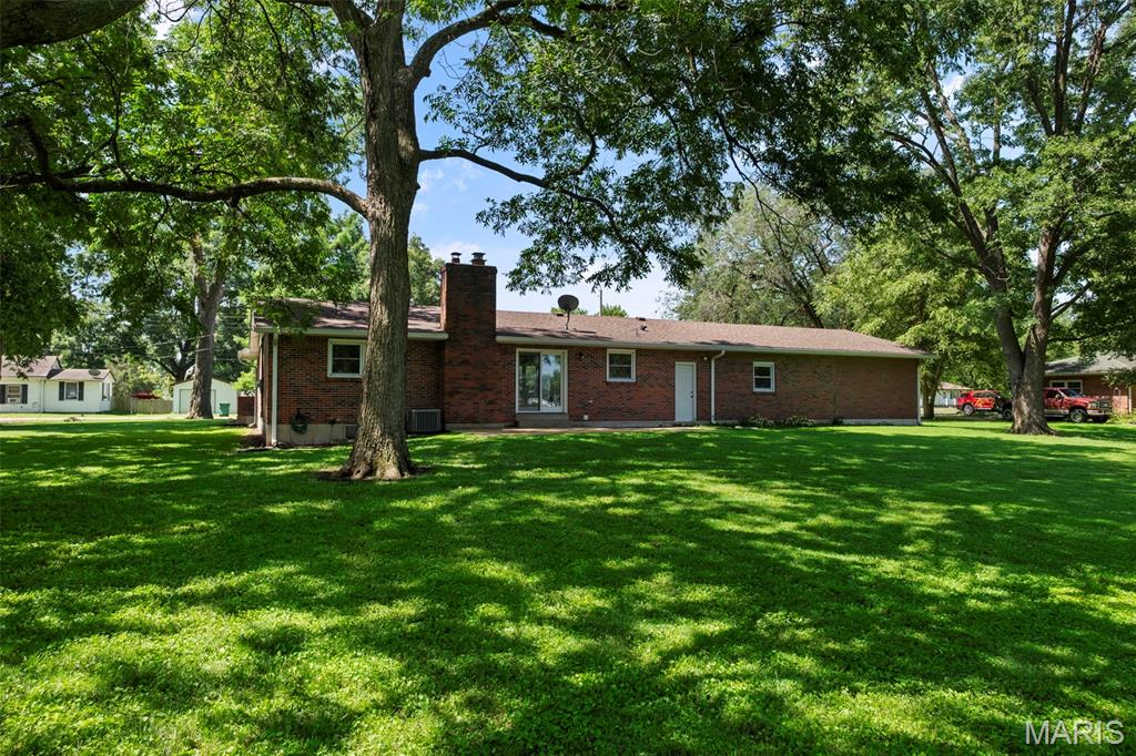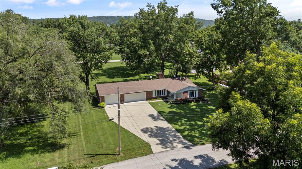 Est. 1964: Exceptional, move-in ready, ranch home awaits in charming Portage des Sioux sitting on nearly an acre with combined lots! The open-concept design maximizes space with an updated kitchen featuring granite countertops, oak cabinetry & stainless steel appliances. A stone fireplace with gas logs anchors a spacious great room/dining room with abundant filtered, natural light. The primary bedroom includes a newer en-suite with a walk-in shower. A second bedroom overlooks the park-like backyard, with an additional small bedroom or versatile office/den in between, alongside a shared bath. Through the laundry/mudroom, you’ll find an oversized 3-car garage, including a secondary bay with 8’ clearance—large enough to accommodate a large truck, boat, or medium size RV—plus additional room for motorcycles and storage. Most systems, including reverse osmosis water filtration system, are around 5 years old, with the roof approximately 8 years old. Set on a spectacular level lot with established shade trees, there’s ample outdoor entertaining space and room for the garden of your dreams. The perfect blend of modern comfort & small-town tranquility in charming Mississippi River community. Don't miss this rare opportunity in one of Missouri's most picturesque towns.