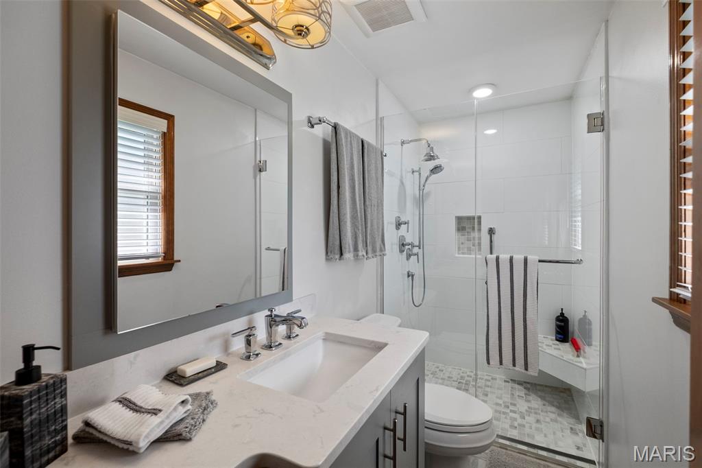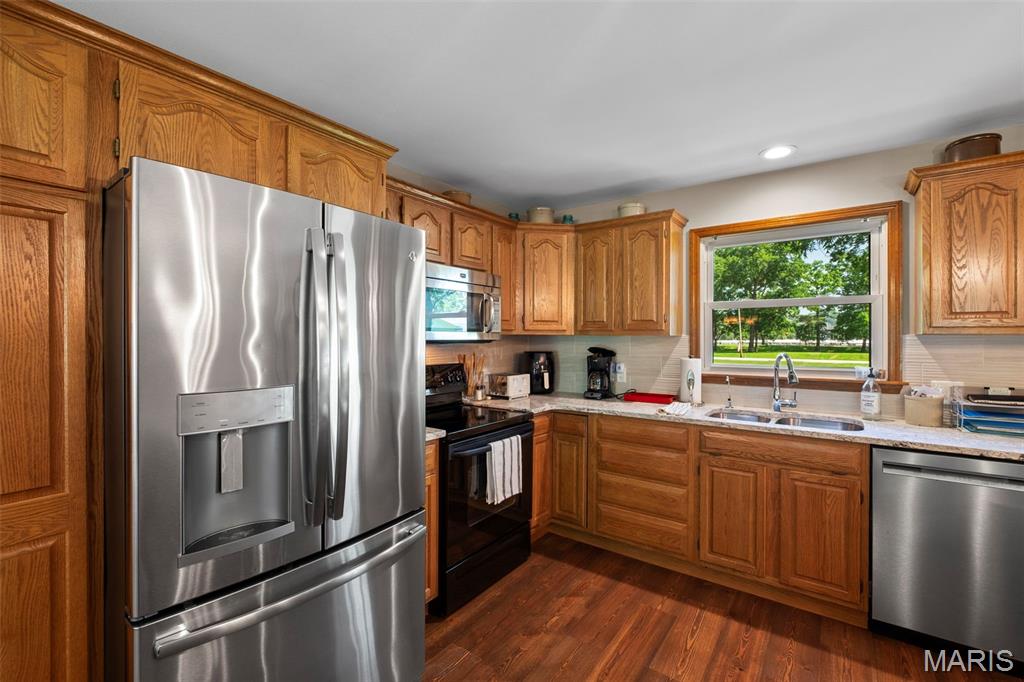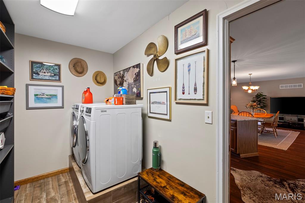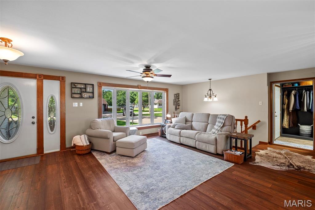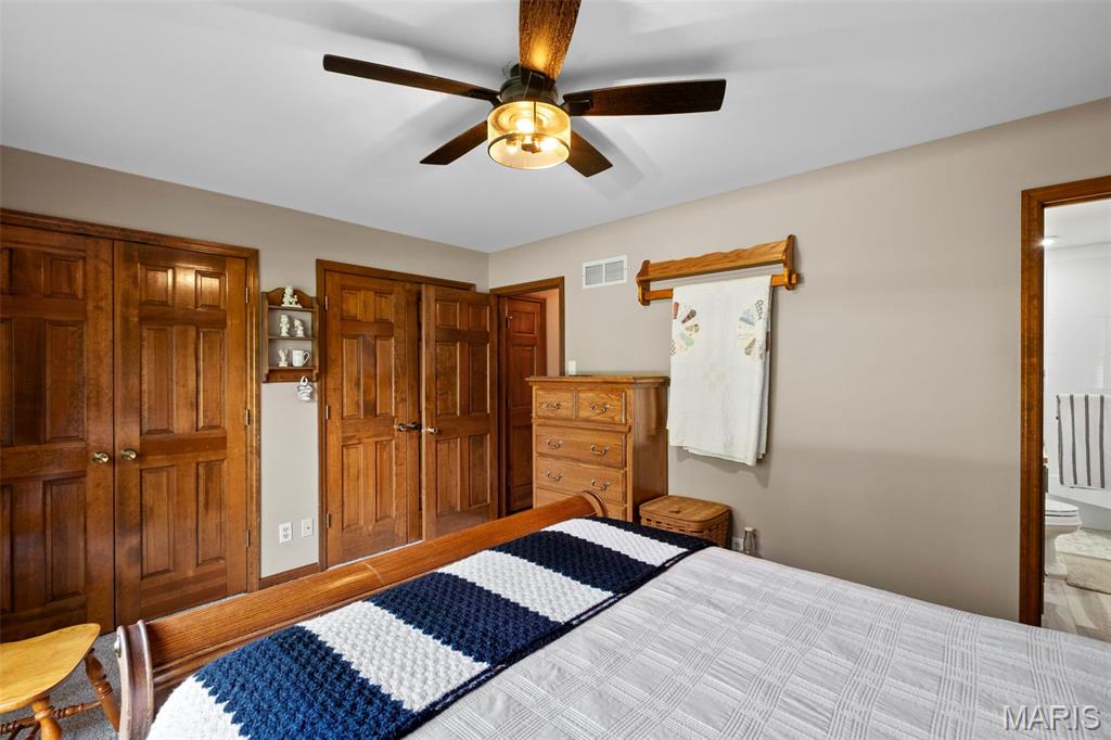 Est. 1964: Exceptional, move-in ready, ranch home awaits in charming Portage des Sioux sitting on nearly an acre with combined lots! The open-concept design maximizes space with an updated kitchen featuring granite countertops, oak cabinetry & stainless steel appliances. A stone fireplace with gas logs anchors a spacious great room/dining room with abundant filtered, natural light. The primary bedroom includes a newer en-suite with a walk-in shower. A second bedroom overlooks the park-like backyard, with an additional small bedroom or versatile office/den in between, alongside a shared bath. Through the laundry/mudroom, you’ll find an oversized 3-car garage, including a secondary bay with 8’ clearance—large enough to accommodate a large truck, boat, or medium size RV—plus additional room for motorcycles and storage. Most systems, including reverse osmosis water filtration system, are around 5 years old, with the roof approximately 8 years old. Set on a spectacular level lot with established shade trees, there’s ample outdoor entertaining space and room for the garden of your dreams. The perfect blend of modern comfort & small-town tranquility in charming Mississippi River community. Don't miss this rare opportunity in one of Missouri's most picturesque towns.