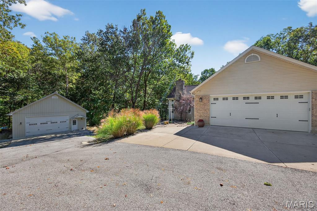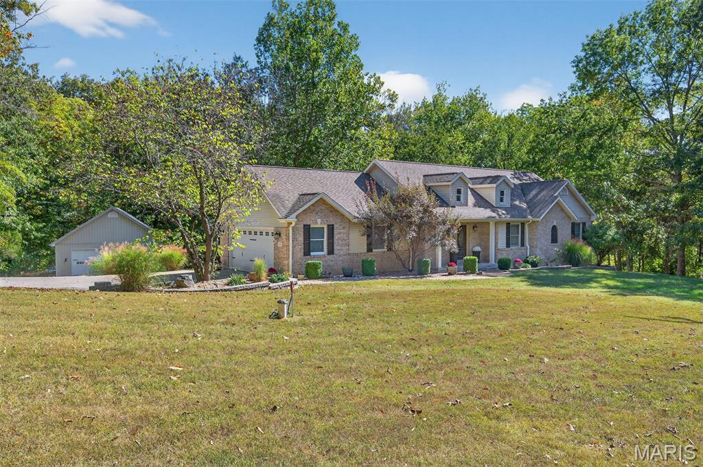 Welcome to 196 Dunn Road where peaceful country living meets modern luxury. Nestled on 8 private acres, this 3-bed, 5-bath retreat is the perfect blend of rustic charm and refined style. Step inside to discover a stunning interior with soaring ceilings, rich finishes, and an inviting wood-burning fireplace that anchors the living space with warmth and character. The open-concept design flows effortlessly into a chef-inspired kitchen and spacious dining area, perfect for entertaining family and friends. The primary suite offers serene views and a spa-like feel, while each additional bedroom features its own private walk-in closet, for ultimate luxury and convenience. Downstairs, you’ll find even more flexible living space ideal for gatherings, a home gym, or media room and a sleeping area that could act as a 4th bedroom. Outside, the property truly shines, with 8 sprawling acres of privacy, mature trees, and endless possibilities for recreation or relaxation. The massive detached shop is a dream come true for hobbyists, car enthusiasts, or anyone in need of extra storage or workspace. Whether you’re sipping coffee on the porch or watching wildlife at sunset, this property offers the peace and beauty only country life can provide-all just a short drive from everything St. Louis has to offer.