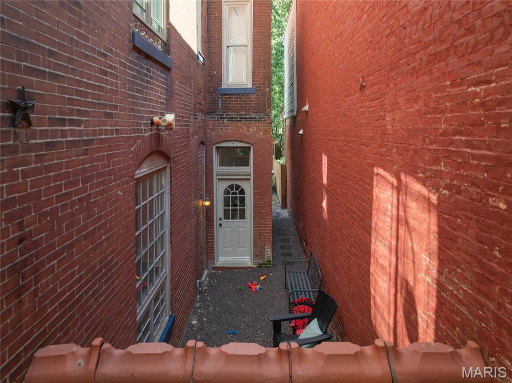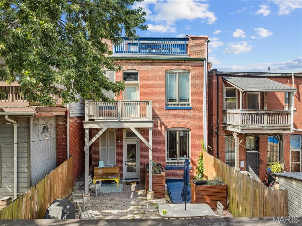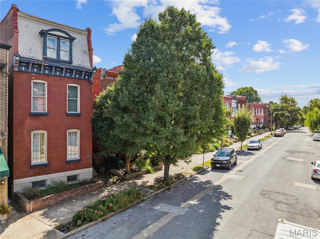 Love city living but crave space? This beautifully updated 3-story Benton Park home blends historic charm with modern luxury. Nearly 2,800 sq ft of living space includes 3 bedrooms—each with its own full bath—plus a convenient main-level powder room. Inside, soaring ceilings, exposed brick, and crown molding complement expansive windows that fill every room with natural light. The kitchen dazzles with a massive granite island, prep sink, pot filler, and wine fridge—perfect for entertaining. Upstairs, the primary suite impresses with a fireplace, dual closets, and a spa-like bath with a soaking tub. The third floor offers flexible living space, laundry, and walkout access to a newly rebuilt rooftop deck (2024) overlooking Fremont Park with its playground, ball field, and dog park. Outside, enjoy a low-maintenance paver patio, private courtyard, and oversized 2-car garageport with EV charging. Steps from Arzola’s, Black Rabbit Vintage, and A Spoonful of Sugar Ice Cream—this is city living at its best!
