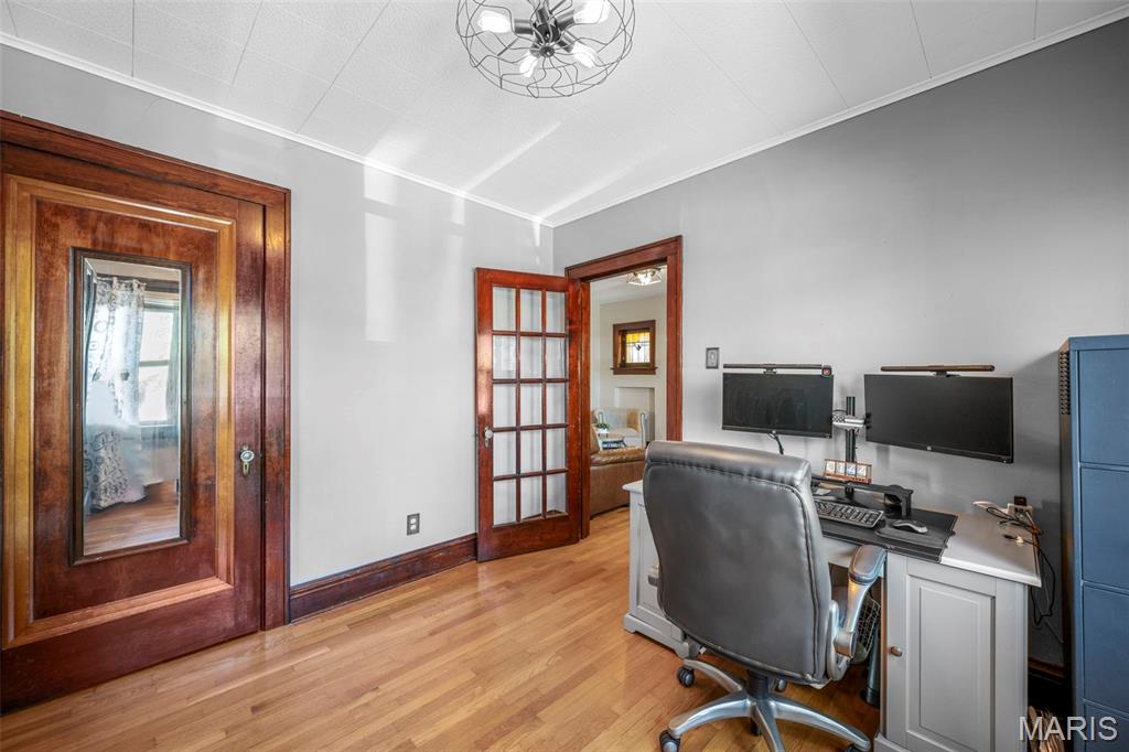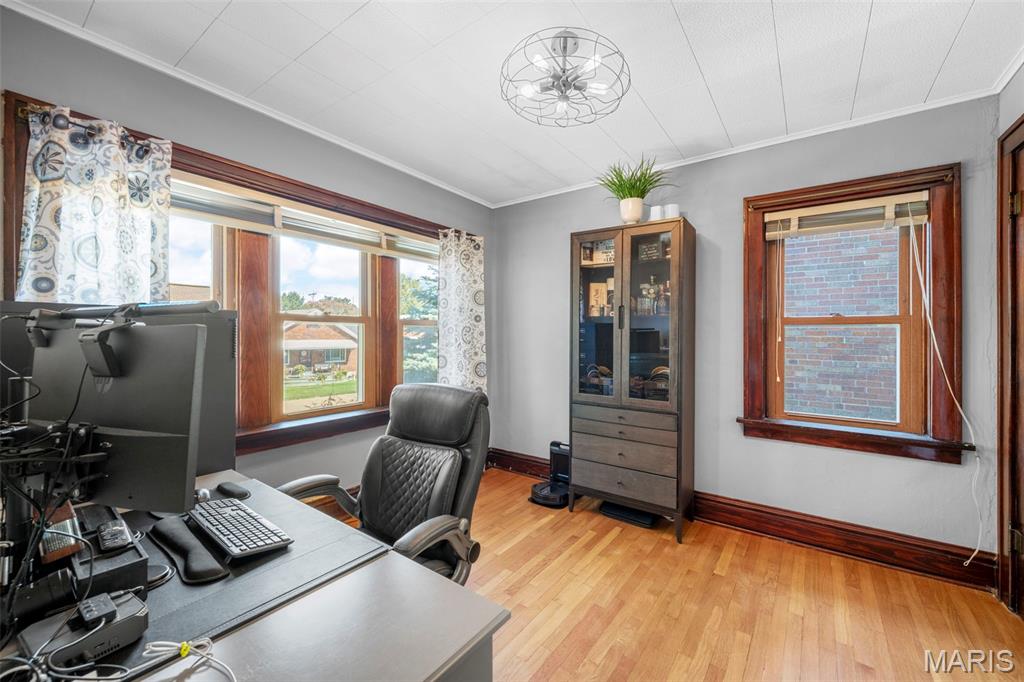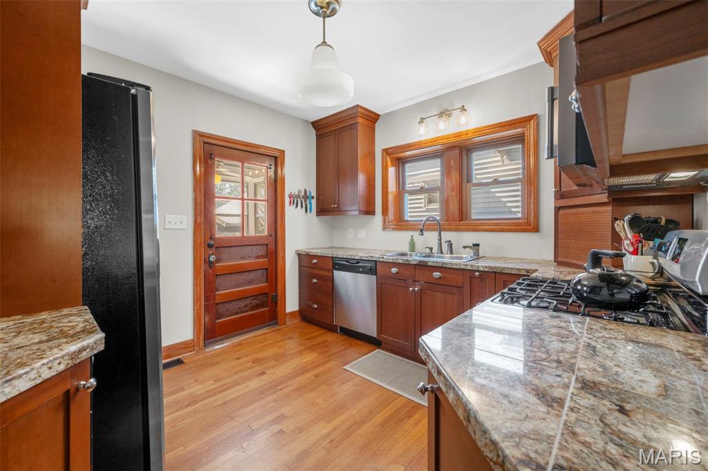 Charming bungalow in the sought-after Holly Hills neighborhood! Step into the spacious living room featuring gleaming hardwood floors, stained glass windows and abundant natural light. The separate dining room provides the perfect space for entertaining. The updated kitchen impresses with 42 inch custom Cherry cabinetry, gorgeous crown molding, granite countertops, and stainless appliances ready for you to whip up your culinary masterpieces. The kitchen opens to a screened porch—an ideal spot to enjoy your morning coffee or evening libation. The main floor offers a primary bedroom, 2 additional bedrooms and a full bath. The partially finished basement expands your living space with a large family room, bonus room (perfect for a home office or guest area), huge laundry room, plus a utility room with plenty of storage, AND a rough in already in place to add a second bathroom! Enjoy your newer privacy fence while you hang with friends and family for backyard BBQ's. A detached 1 car garage ensures you won't be scraping ice off the windshield this winter! Enjoy the unbeatable location close to parks, restaurants, and shops. Updates include New AC 2025, New Roof 2024, Privacy Fence 2024