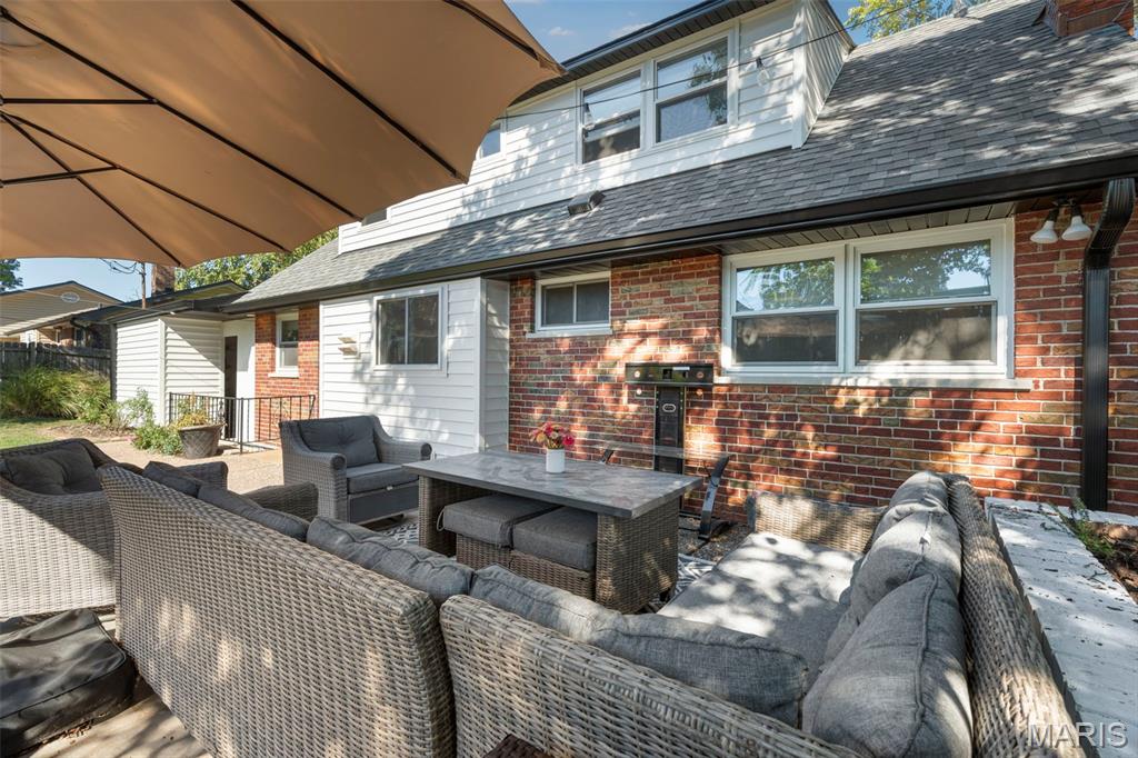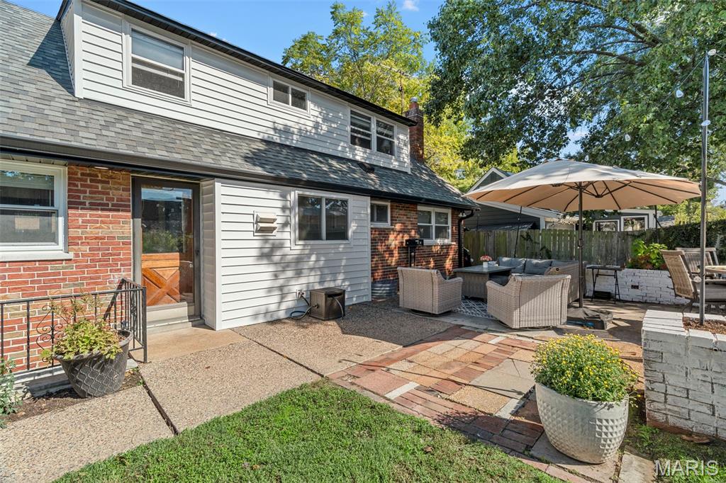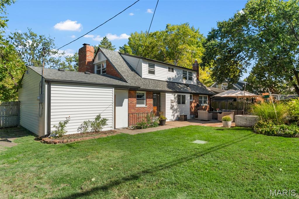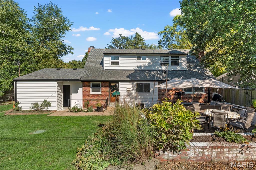 Welcome home to this beautifully updated 3-bed, 2-bath 1.5-story charmer in the highly sought-after Lindbergh School District! Step inside to a bright, open living area featuring gleaming hardwood floors, a cozy wood-burning fireplace, and picture windows that fill the space with natural light. The inviting layout flows effortlessly into the stylish dining area and crisp white kitchen, complete with stainless-steel appliances, modern lighting, and abundant cabinet space, perfect for everyday living and entertaining alike. On the main floor discover a spacious primary suite retreat with a peaceful sitting area, double closets, and a serene color palette that makes it easy to unwind. Two additional upper-level bedrooms and a full bath offer flexibility for guests, home office, or play space. The finished lower level provides even more versatility ideal for a home gym, media room, or creative workspace plus a convenient laundry area with walk out access. Outside, enjoy a private backyard oasis featuring a large patio with built-in seating, space for dining and lounging, and lush landscaping that’s perfect for gatherings or quiet mornings with coffee. Curb appeal shines with new siding, roof, and gutters installed in 2024 for a "like new" exterior with a charming covered front porch. Located on a quiet, tree lined street just minutes from parks, dining, and major highways this home offers the perfect blend of comfort, character, and convenience in one of St. Louis County’s top school districts.