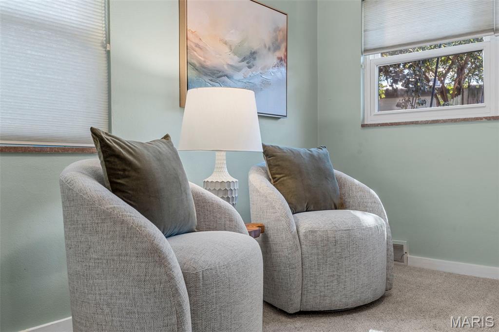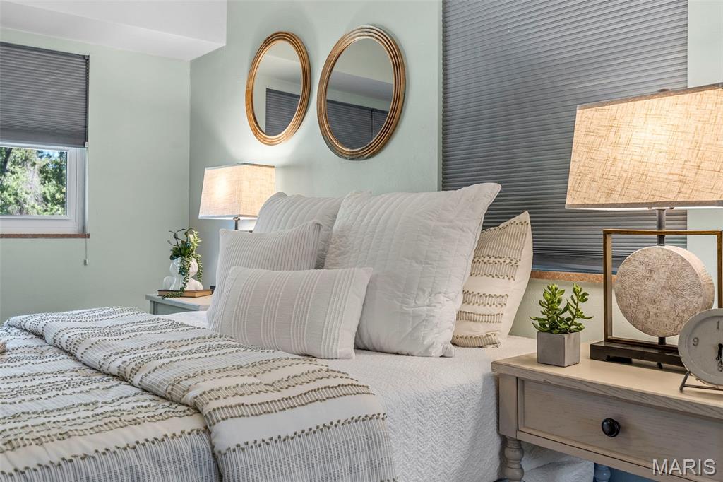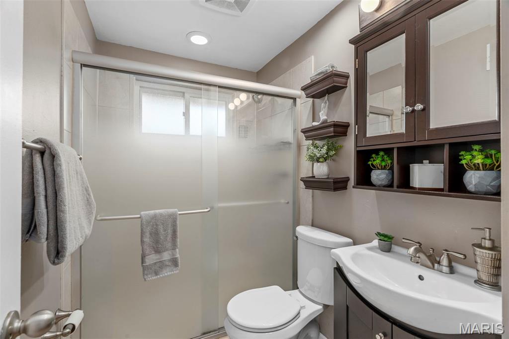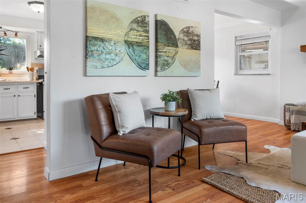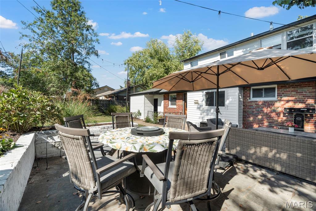 Welcome home to this beautifully updated 3-bed, 2-bath 1.5-story charmer in the highly sought-after Lindbergh School District! Step inside to a bright, open living area featuring gleaming hardwood floors, a cozy wood-burning fireplace, and picture windows that fill the space with natural light. The inviting layout flows effortlessly into the stylish dining area and crisp white kitchen, complete with stainless-steel appliances, modern lighting, and abundant cabinet space, perfect for everyday living and entertaining alike. On the main floor discover a spacious primary suite retreat with a peaceful sitting area, double closets, and a serene color palette that makes it easy to unwind. Two additional upper-level bedrooms and a full bath offer flexibility for guests, home office, or play space. The finished lower level provides even more versatility ideal for a home gym, media room, or creative workspace plus a convenient laundry area with walk out access. Outside, enjoy a private backyard oasis featuring a large patio with built-in seating, space for dining and lounging, and lush landscaping that’s perfect for gatherings or quiet mornings with coffee. Curb appeal shines with new siding, roof, and gutters installed in 2024 for a "like new" exterior with a charming covered front porch. Located on a quiet, tree lined street just minutes from parks, dining, and major highways this home offers the perfect blend of comfort, character, and convenience in one of St. Louis County’s top school districts.