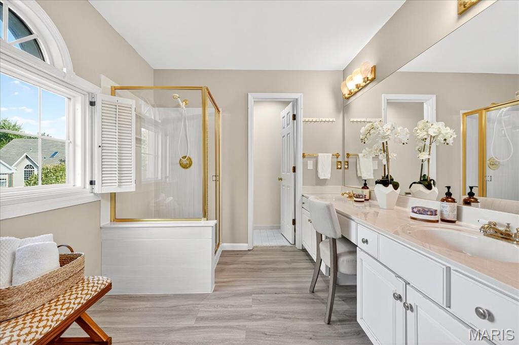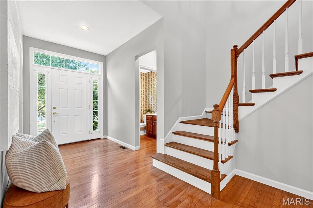 Welcome home to this traditional two-story residence, nestled within the private enclave of the Village of University Place. Immediately upon entering, you'll be greeted by hardwood floors that flow seamlessly throughout the sun-drenched main level. The elegant living room featuring a gas fireplace is the perfect spot to relax on a cool evening. This space opens gracefully into the dining room, which is highlighted by a dramatic wooden box tray ceiling. The chef’s kitchen boasts a spacious granite center island, extensive cabinetry, ample counter space, and a built-in oven. Right off the kitchen is a bright, cozy sun room/breakfast room - ideal for morning coffee - which conveniently leads out to a private patio and fenced yard filled with perennials that burst with blooms come spring! Main level laundry room includes a newer washer and dryer! Upstairs, the primary suite is a true sanctuary. It features a dramatic vaulted ceiling, a bay window, and a large walk-in closet. The private en suite bath features a spacious shower and a dual vanity. The second floor is completed by two additional spacious bedrooms and a full hall bath, offering plenty of room for family or guests. The basement offers untapped potential - ready for you to finish and customize into a media room or recreation space. The rear entry 2-car garage includes an EV charger. Don’t miss your chance to call this Village of University Place gem home.