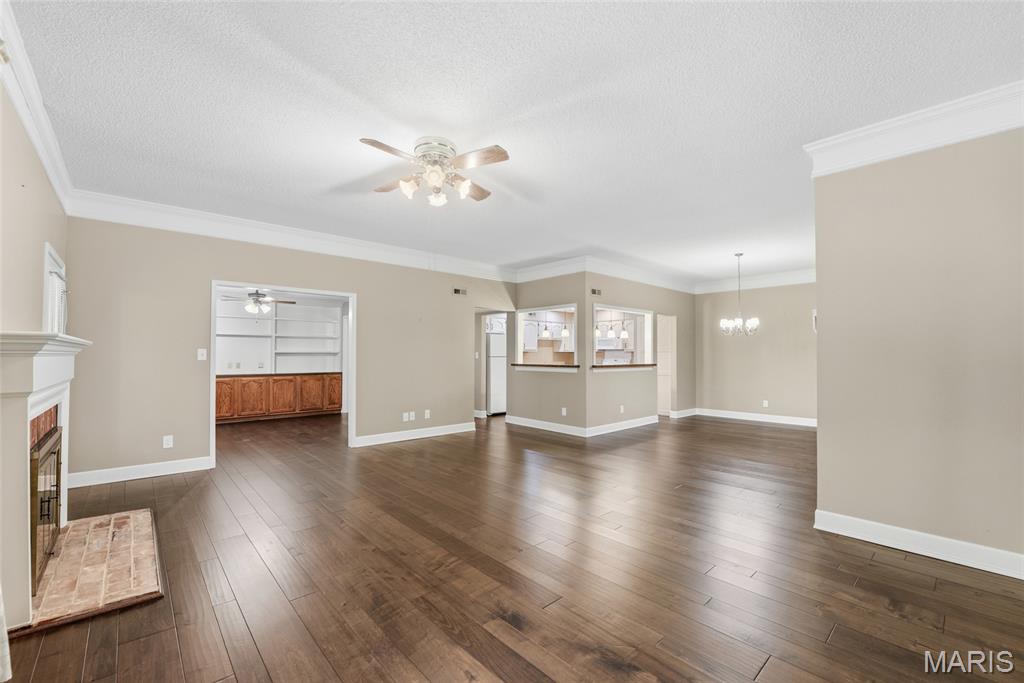 This spacious home offers carefree living in a desirable neighborhood; Briar HIll Farm. Wood flooring and bulky crown molding span the living area. The LR has a woodburning fireplace and a atrium door to the deck. The kitchen opens with a breakfast bar to the dining room and another to the Living Room for an open flow. There is a large study complete with built in bookcases, great for working from home. Generous sized primary bedroom with a walk in closet, an ensuite with a double sink, soaking tub, and a separate shower, plus linen closet. The 2nd bedroom has 2 closets and a Jack n Jill bathroom. There is a laundry area with utilities and additional storage. There is a storage locker downstairs next to the 2 car parking spots. Relax knowing the AC, Furnance and water heater are brand new. HOA includes a membership to the neighborhood pool, clubhouse and tennis courts.