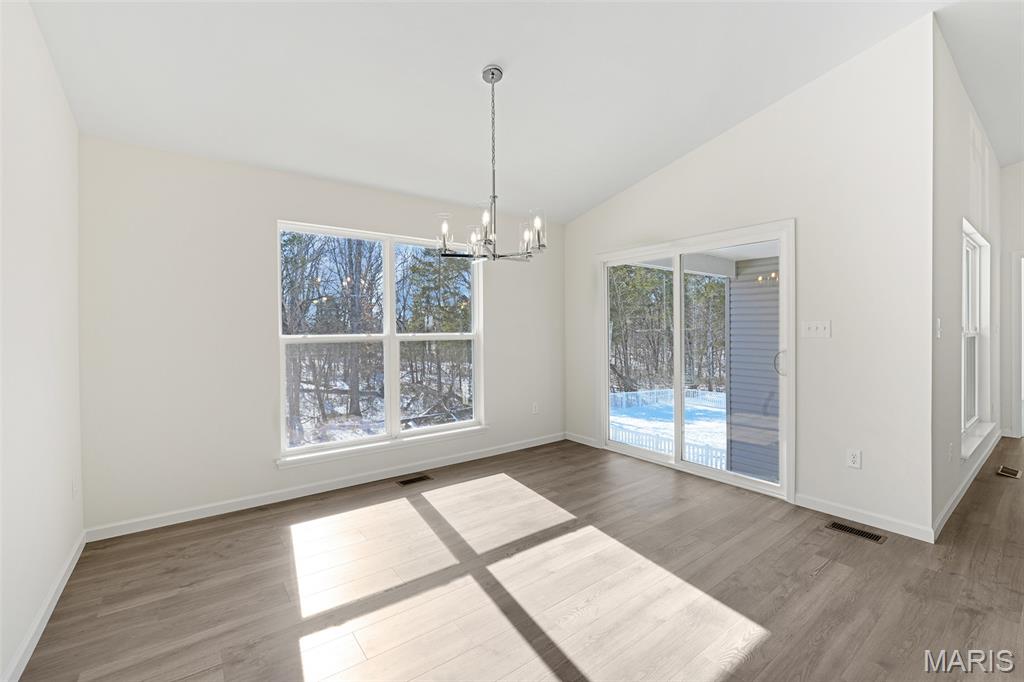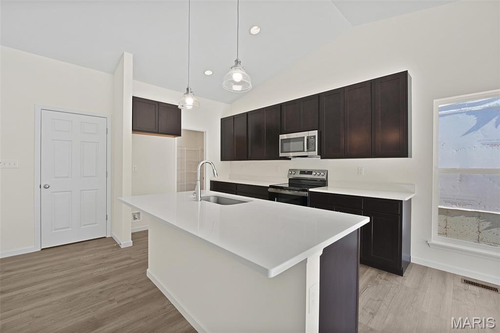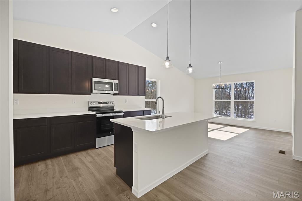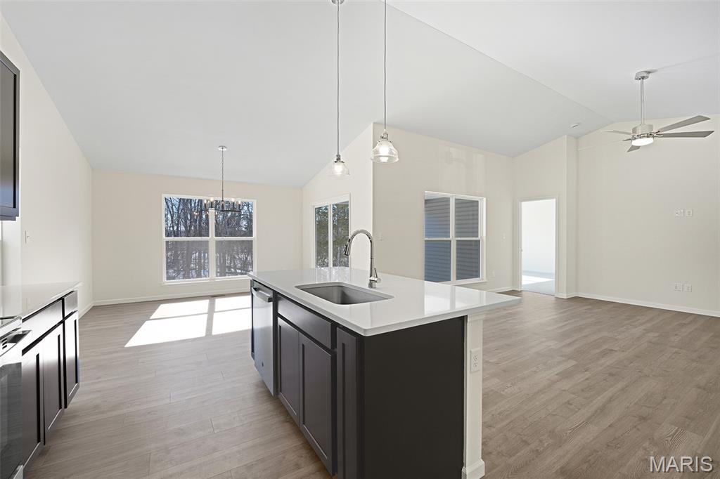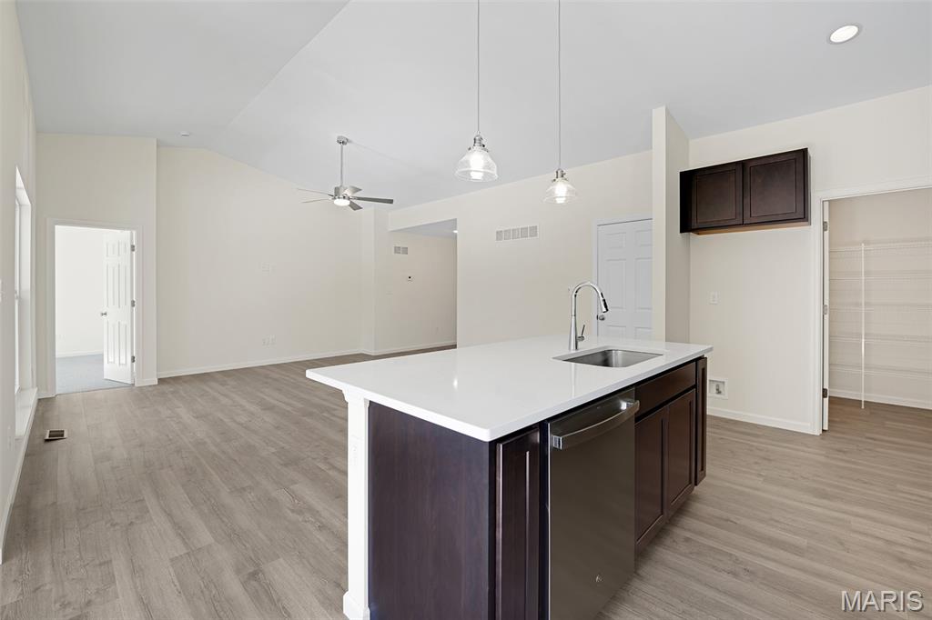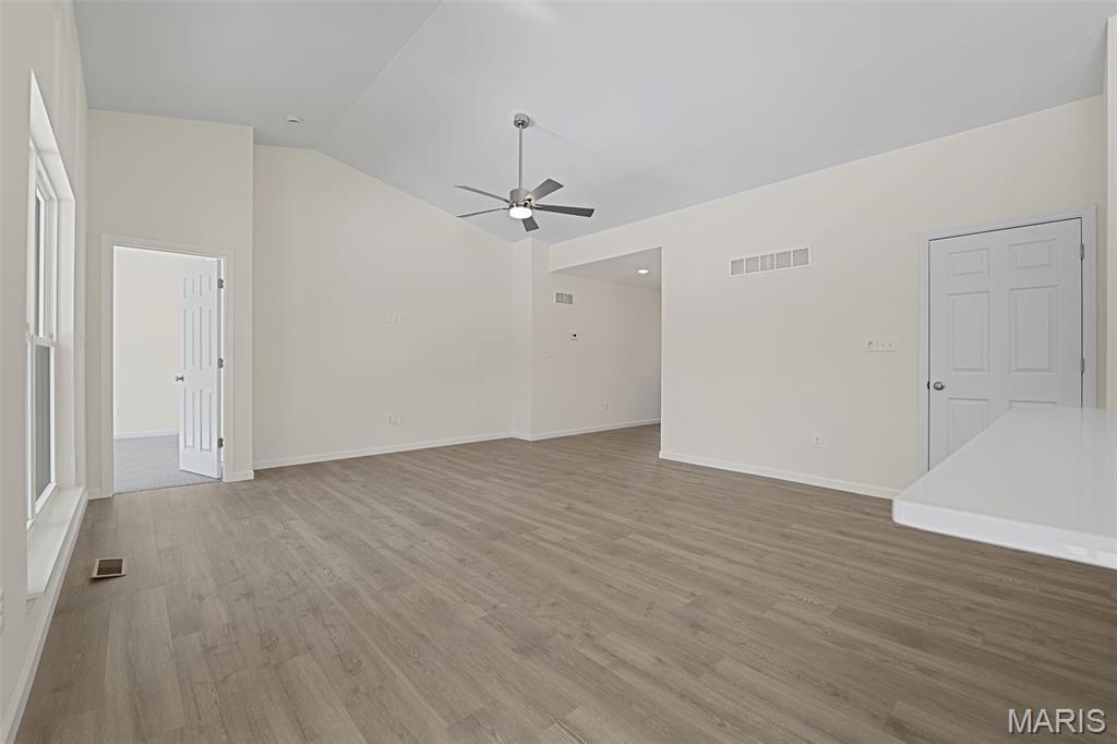 McBride Homes’ Aspen II 3BR, 2BA ranch, ready this winter! Craftsman elevation & Walkout homesite! Enjoy an open floorplan w/vaulted ceiling, 6ft windows, & wood laminate flooring in main living areas. The kitchen has a large island w/breakfast bar, level 4 Benton Sarsaparilla 42” cabinets, quartz countertops, stainless GE appliances, & large walkin pantry. The dining area has a sliding glass door to a future covered deck w/ceiling fan prewire. The primary suite has a large window, dual closets, & private bath w/double sinks & 5’ walk-in shower. 2 extra bedrooms & full bath add convenience. Other extras include main flr laundry, ¾ bath rough in at LL, upgraded lighting & plumbing fixtures, 6 panel interior doors, & exterior coachlights. Located in Truesdale near Warrenton, Elkhorn Ridge is highly sought-after in Warren County, close to shopping, restaurants, & more. Enjoy peace of mind with McBride Homes' 10-year builder's warranty & excellent customer service! Similar photos shown.