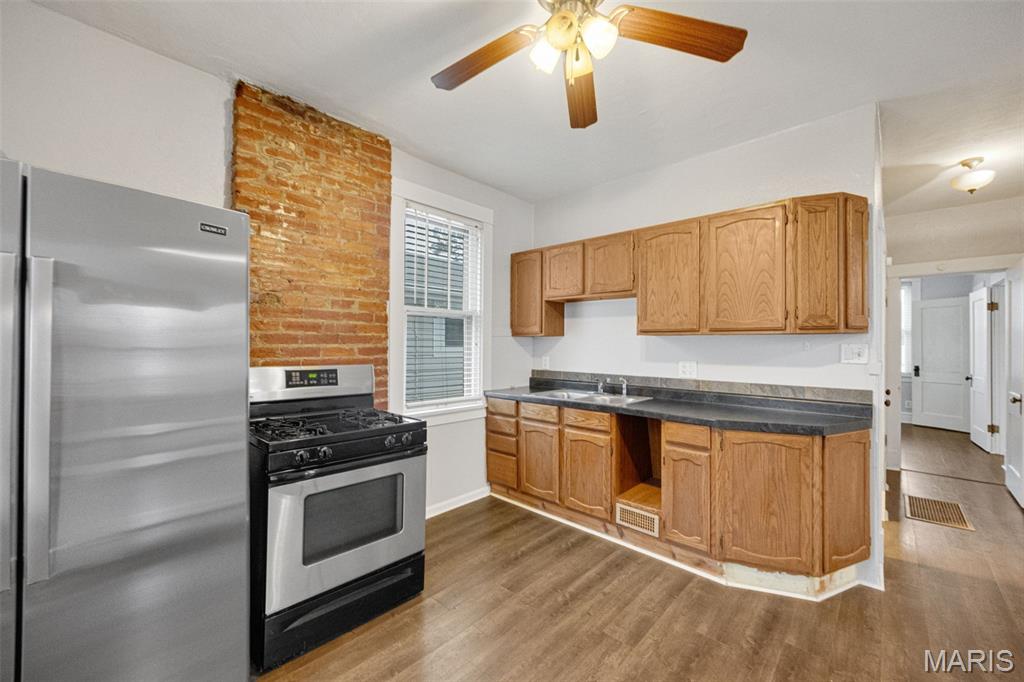 Welcome to 7320 Eugene Ave located in the heart of Boulevard Heights neighborhood! This stunning one bed one bath features comfortable main floor living. Step inside to the large living room which opens to the dining room and kitchen providing ample space to relax, unwind, and host guests. The original stained glass windows and French doors give off authentic vibes that makes south city such a special place to live. The sitting room is a wonderful flex space with endless opportunities. The spacious bedroom has plenty of closet space The unfinished basement provides extra space and is awaiting your finishing touches! Step outside to your large backyard where you can host your BBQ's with family and friends. Did I mention all of the appliances stay? This south city charmer is waiting for you! Schedule your showing today!