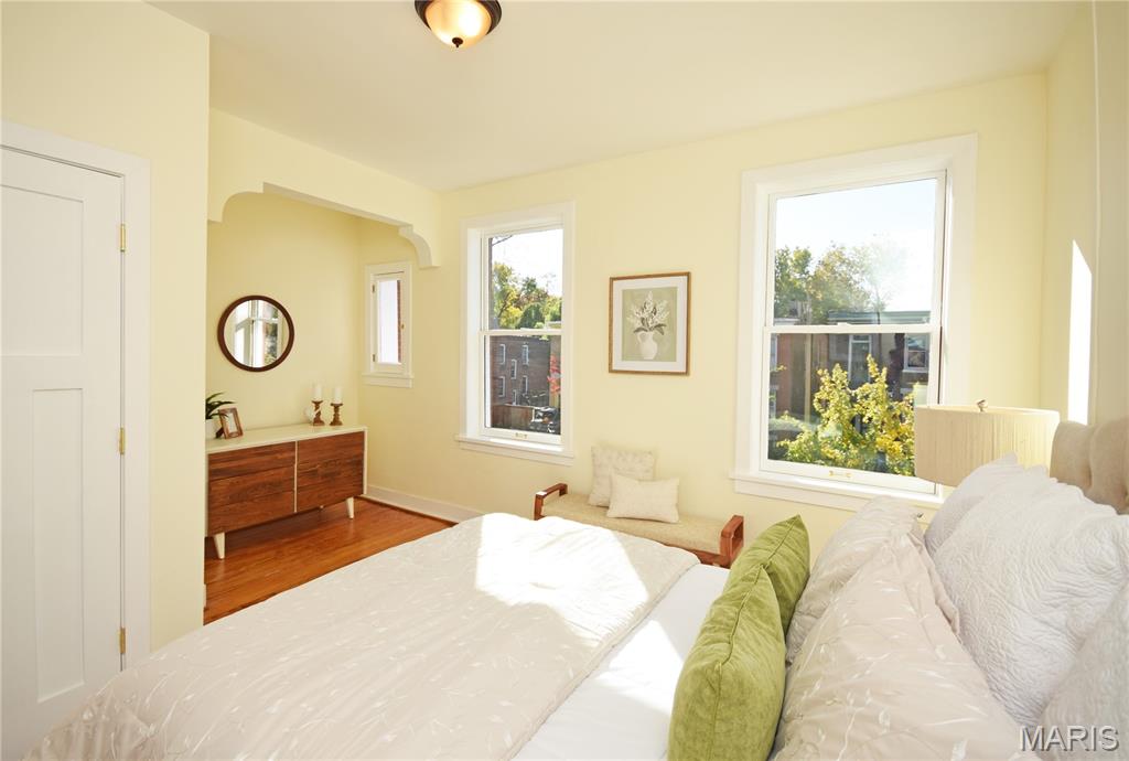 This fee simple town home has been meticulously renovated over the past several years with attention to detail and respect for its history. Enter into the spacious living room with a cozy gas fireplace and a convenient coat closet. The classic large dining room is perfect for holiday entertaining or casual dining. The first floor full bath is all new. The kitchen has all new appliances including a washer and dryer in a separate laundry closet. There is also a pantry and an additional back staircase with custom wood railing. Notice the beautiful engineered wood flooring in the kitchen and hallway. The floors have been refinished in most rooms revealing the original character. Upstairs you'll find three bed rooms with new doors and a brand new full bath with a large shower. All the textured ceilings were refinished and repaired to beautiful a smooth finish. Newer windows, new electric service and wiring, newer water lines and PVC sewer service. You will notice quality work and fresh paint throughout. The basement contains a new water heater and high efficacy HVAC. The basement is clean and dry and ready for your storage and or workshop. All the ducts and furnace were recently professionally cleaned and serviced. The back yard with fresh grass, bushes and plants is a pleasant area to hang out. The exterior was recently spot tuckpointed. The front porch was rebuilt including a new porch roof and deck. The walkway has freshly poured concrete to the back. Have your agent schedule a tour to see this property, you will not be disappointed. The location is City Living perfection and very convent to all your needs. Located a few steps from world-renowned Missouri Botanical Garden and walking distance to many fine restaurants. There is a new bike/walking path on Tower Grove Ave. currently being constructed that will eventually take you to Forest Park. First available this Friday 11/8 after 10:00 AM