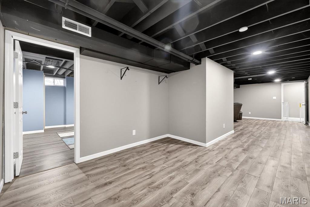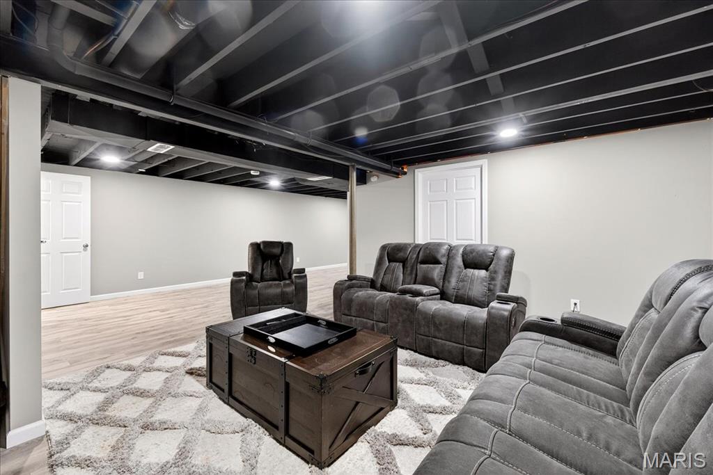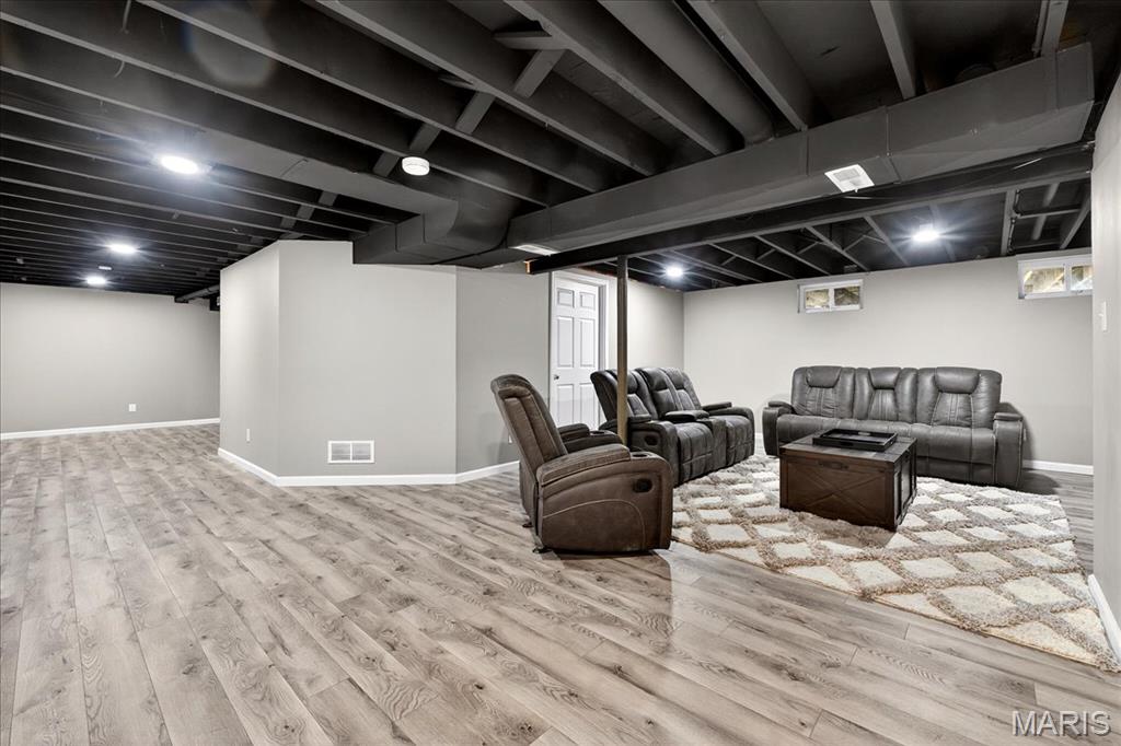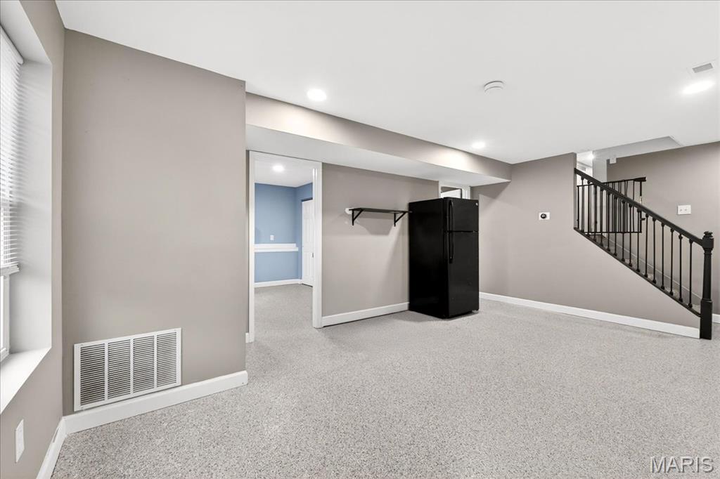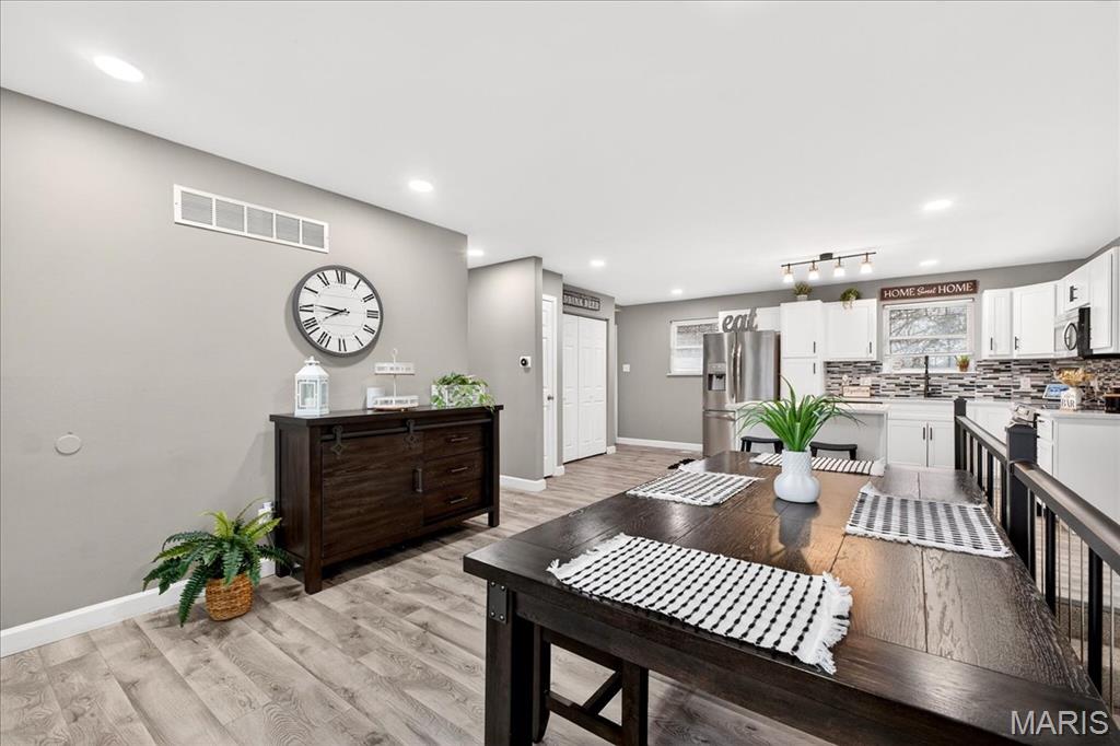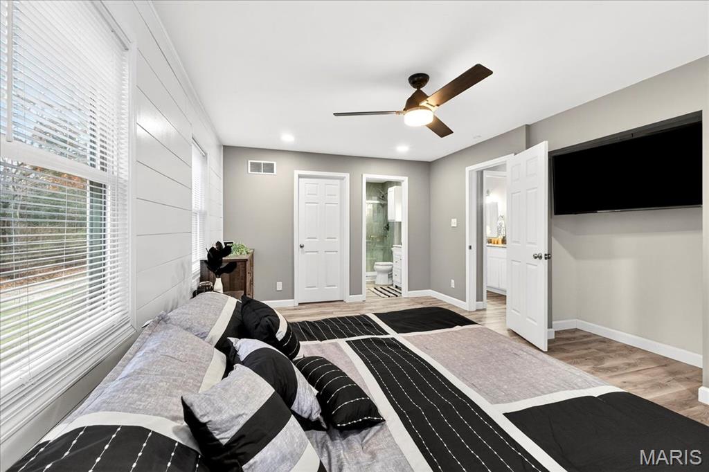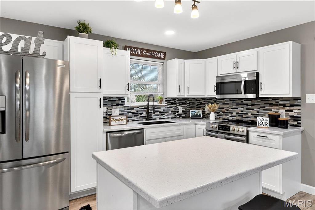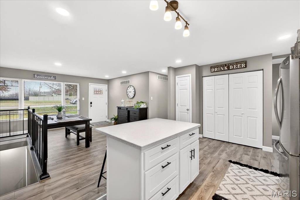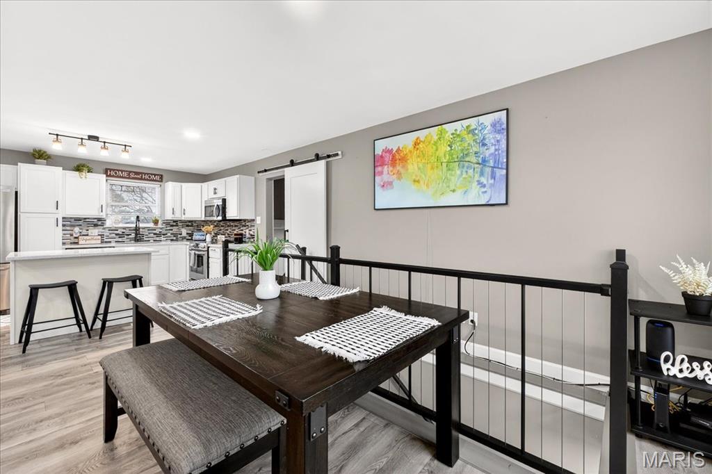 2.45 ACRES UPDATED and secluded just minutes from Civic Park in O'Fallon yet tucked away on a quiet street that feels like a private retreat. This beautifully remodeled 1 1/2 story home offers 1,612 sq. ft. of thoughtfully designed living space with modern finishes and incredible outdoor amenities. The exterior features a newer architectural roof, newer white siding, black gutters/soffit/fascia, and a striking black stone front with warm wood shutters, creating true modern-farmhouse curb appeal. You'll love the two impressive OUTBUILDINGS: a 624 sq. ft. detached garage with matching exterior to house and tall clearance for large vehicles, plus a massive 1,200 sq. ft. matching exterior to house outbuilding with two garage doors, two man doors, and a half bath—ideal for a workshop, car/boat/ATV storage, or gym. Inside, the updated kitchen features white cabinetry, solid-surface counters, a center island, backsplash, and laminate flooring, opening to the dining/hearth area for easy entertaining. The remodeled oversized primary offers a walk-in closet and full bath. The updated spacious hallway bath includes a double-sink vanity. The main-level laundry off the the kitchen adds modern convenience. The upper level includes an updated spacious family room with a stone gas fireplace. The basement features an updated rec room, sleeping area, full bathroom, and storage. Outdoor living spaces include an updated covered patio, fenced patio, and a maintenance-free deck overlooking mature trees and park like backyard. This property offers a rare combination of updated home + acreage + multiple outbuildings + privacy with all the amenities of town nearby—country feel with city convenience. Despite the private feel, you are minutes from restaurants, shopping, Hwy 70/364, parks, and more.