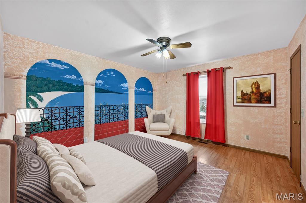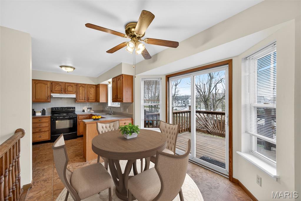 Welcome to this spacious 4-bedroom ranch offering bright, open living and an incredible backyard retreat. Step inside to a vaulted living room filled with natural light from the skylight, complete with a ceiling fan and seamless flow into the breakfast room and kitchen. The breakfast room features a sliding door that leads to the wood deck—perfect for morning coffee or outdoor dining. The kitchen includes a stainless steel refrigerator that stays with the home. The primary suite offers comfort and style with a walk-in closet, ceiling fan, and an updated bathroom featuring a beautiful tile-surround shower. Two additional bedrooms, each with ceiling fans, and a full hall bathroom complete the main level. The finished lower level expands your living space with a rec room, a great room ideal for a home office, and a 4th bedroom—plus walkout access to the show-stopping backyard. The lower level also includes a partially finished bathroom with a toilet and sink, offering convenience and the opportunity to easily complete a full bath if desired. Outside, you’ll find room for a large garden, a pergola, a built-in stone firepit, and a fully fenced yard perfect for pets, play, and entertaining. A backyard retreat ideal for entertaining family and friends. Just minutes from highways, shopping, restaurants, and more. Served by the highly sought-after Ft. Zumwalt (South) schools. This one checks all the boxes!