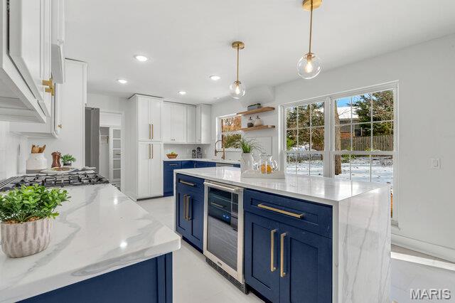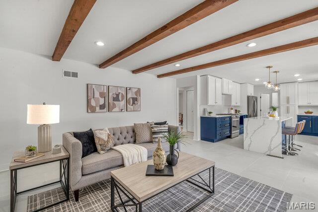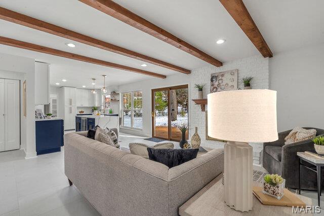 Meticulously renovated and thoughtfully curated, this stunning 3-bedroom, 2-bath home sits in one of Creve Coeur’s most prestigious and highly sought-after neighborhoods. Sunlight fills the home’s generous, airy living spaces, highlighting an open-concept, effortlessly flowing layout that blends sleek modern updates with warm, timeless character. The formal living and dining rooms showcase beautifully refinished, gleaming original hardwood floors, while the expansive family room features authentic, rustic wood-beamed ceilings and a cozy, inviting wood-burning fireplace that transitions seamlessly into the sophisticated, updated chef’s kitchen. The kitchen is designed to impress, offering premium stainless steel appliances, a striking range hood, oversized quartz countertops with a dramatic waterfall island, custom, soft-close cabinetry, and a built-in wine cooler. Both bathrooms have been fully remodeled with elegant floating quartz vanities, sleek wall-mount faucets, and luxuriously detailed custom-tiled showers. Additional upgrades include fresh designer-grade interior paint, energy-efficient recessed lighting, a newer roof, updated plumbing and electrical systems, and a brand-new furnace and AC. A custom, frameless glass shower door will be installed in the primary bathroom prior to closing. Conveniently located off the kitchen, the laundry room features modern floating wood countertops, open, minimalist shelving, and a practical wet sink, with washer/dryer hookups available on both the main floor and in the basement. The fenced backyard offers a private, tranquil outdoor retreat in this quiet, well-established neighborhood. Additional flexible storage space is available in the basement. Just minutes from popular local restaurants, charming boutique shops, and prestigious Westwood Country Club, the home is centrally located with easy access to Hwy 64/40. Schedule your private showing today!