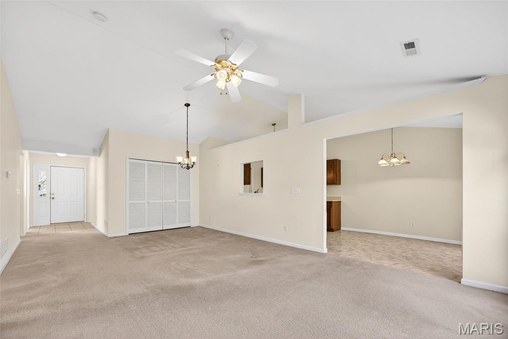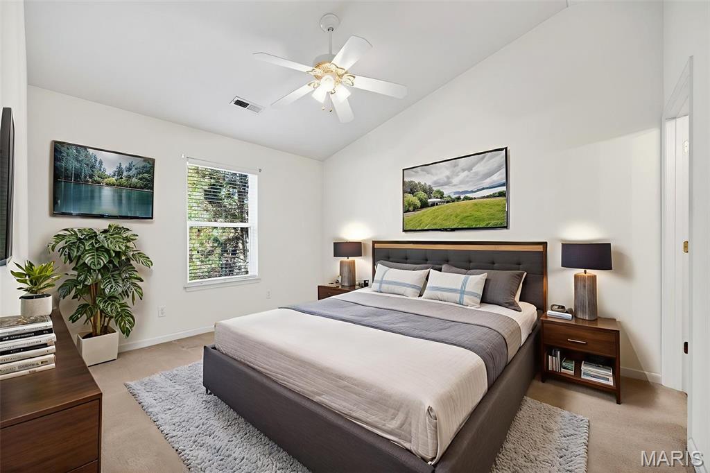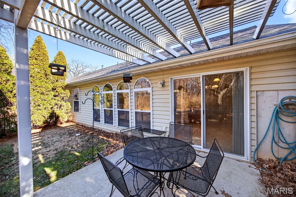 Amazing wooded view and private lot in this ranch villa! Privacy here with no through street. Great Room with wall of windows shows the beautiful woods and private yard. Patio with pergola and small fenced area with vinyl fencing. Vaulted throughout with open plant shelves. Bedrooms are spacious with primary bedroom offers private bath with shower and walk in closet. Plenty of counter and cabinet space. New roof 2023. Breakfast Room and Formal Dining area. Main Floor Laundry and 2 car garage. A rare find!