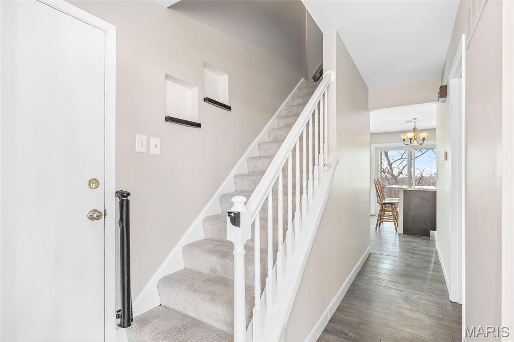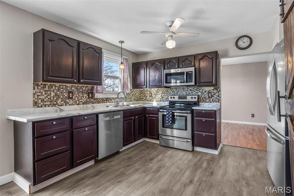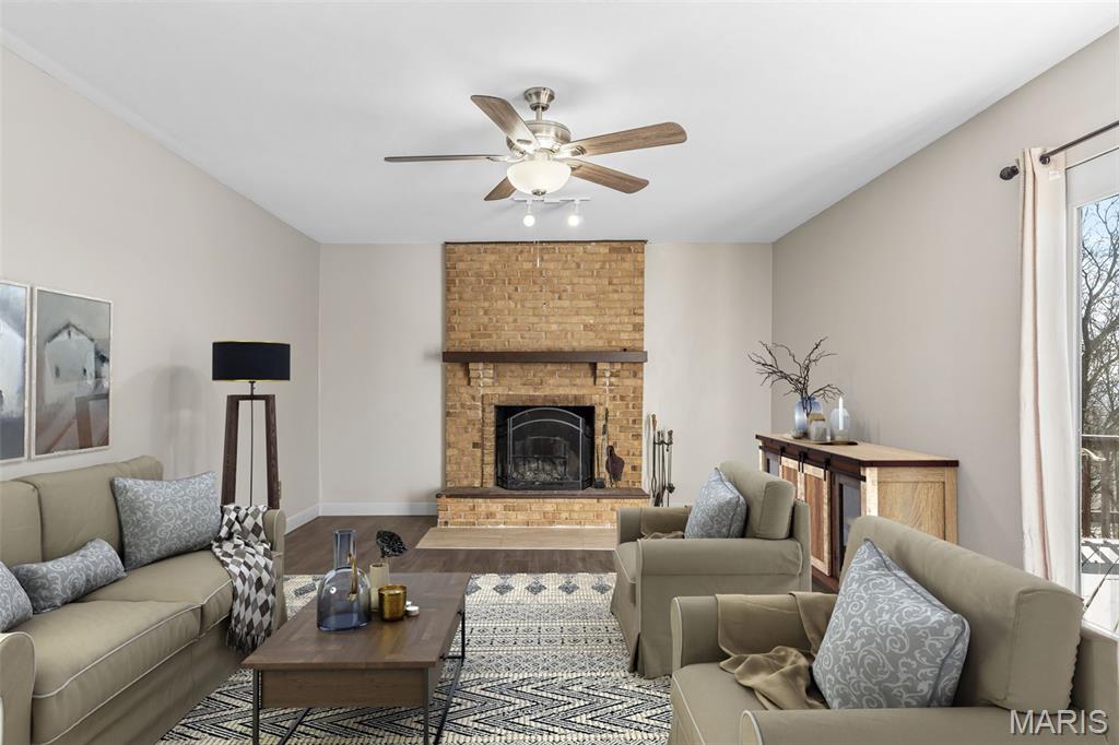 Welcome home to this spacious 4 bedroom, 3.5 bath two-story nestled on a quiet cul-de-sac — the perfect setting for family living! Step inside to find neutral décor throughout and laminate flooring across most of the main level, offering both style and durability. The inviting family room features a cozy wood burning fireplace with a classic brick hearth and surround — perfect for relaxing evenings at home. The kitchen is designed for both everyday living and entertaining, complete with stainless steel appliances, pantry, center island with breakfast bar and breakfast nook. From here, step out onto the expansive deck overlooking a large backyard with multiple areas for the whole family to enjoy. Whether it’s summer BBQs, outdoor gatherings, or simply taking in stunning evening sunsets, this outdoor space delivers! Convenience continues with main floor laundry and numerous updates including a newer roof, newer vinyl windows along the rear of the home, and a newer sliding door off the breakfast room. Upstairs you’ll find four generously sized bedrooms and two full baths, offering plenty of space for everyone. The partially finished walk-out lower level adds exceptional versatility, featuring a huge L-shaped recreation room, full bath, and a flex room ideal for a home office, workout room, or possible additional sleeping area. Move-in ready and built for making memories, this home offers space, function, and comfort both inside and out. Don’t miss your opportunity to make this beauty your own! Located in a wonderful neighborhood that has a subdivision pool & playground area for more family fun.
