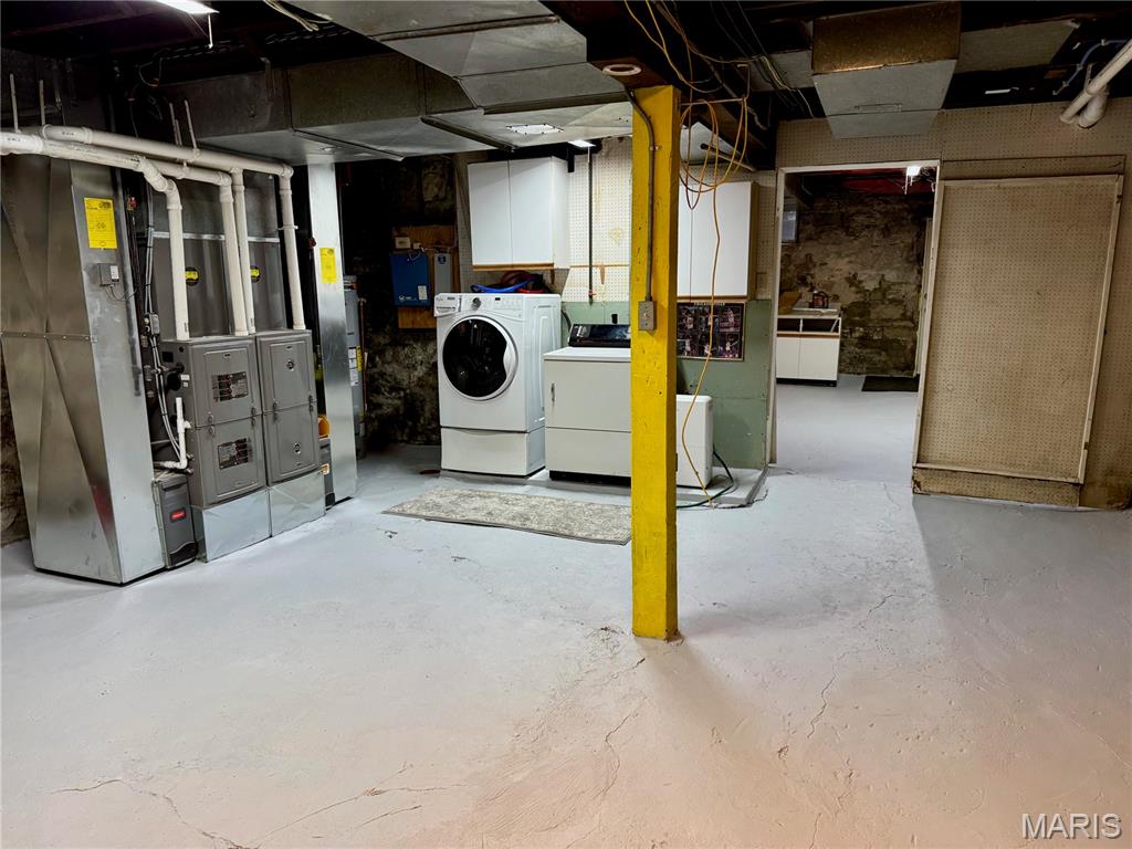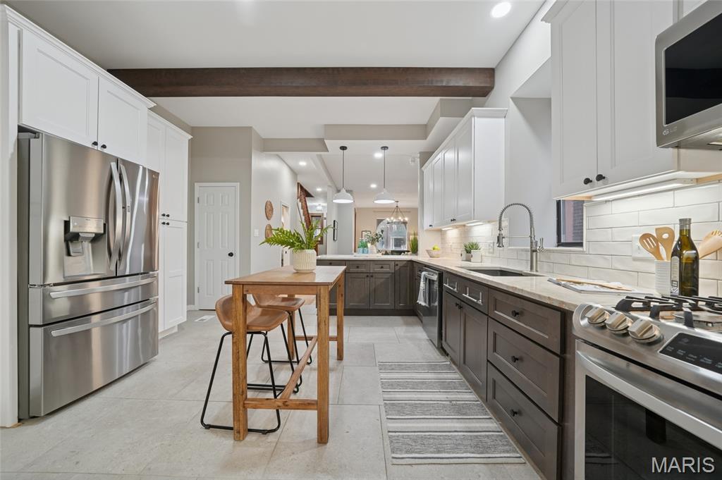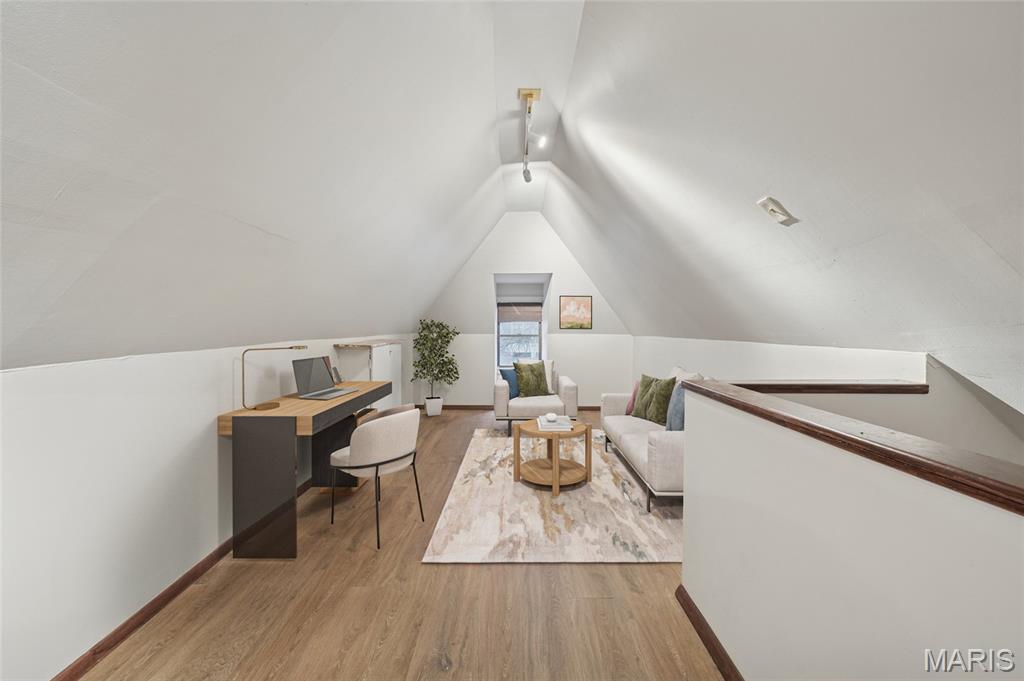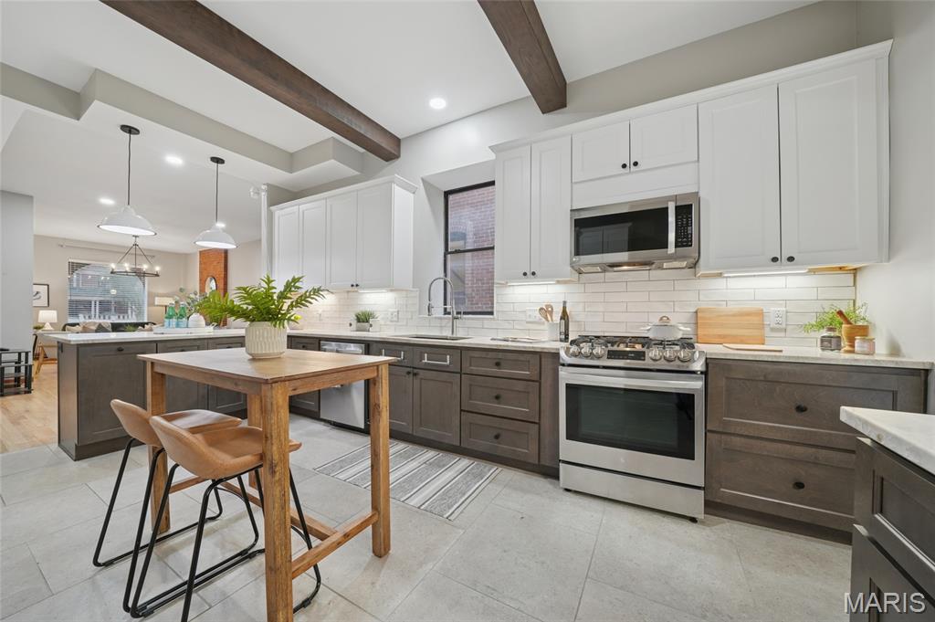 Located within this private street community of Laclede Place, this historic residence seamlessly blends timeless elegance with modern sophistication. Graced with 10-foot ceilings, rich wood floors, and original millwork, the home exudes warmth and refined character from the moment you enter. The beautifully reimagined living and dining areas provide an ideal setting for both intimate gatherings and upscale entertaining. Exposed brick accents and two striking fireplaces serve as architectural showpieces, enhancing the home’s distinctive charm. The gourmet kitchen is a chef’s delight, featuring marble countertops, stainless steel appliances, custom cabinetry, a breakfast bar, and a pantry. A chic, newly remodeled powder room completes the main level. Upstairs, the spacious primary suite offers a serene retreat with a generous walk-in closet and a luxuriously updated en suite bath featuring a double vanity and walk-in shower. A second bedroom and an additional full bath provide comfort for family or guests. The third-floor bedroom, recently refreshed, offers a versatile space perfect for a home office, studio, or private getaway. Outside, a fenced backyard creates a peaceful urban oasis with a large deck—ideal for alfresco dining—and direct access to the one-car garage.
