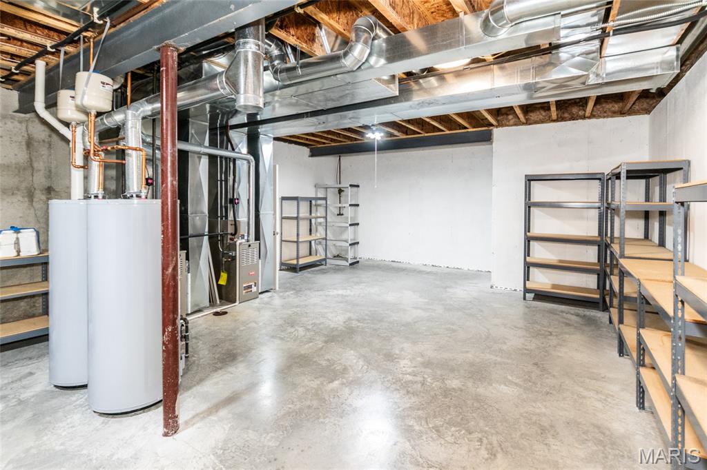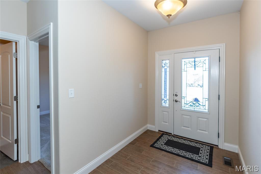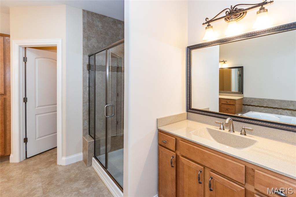 Thoughtfully designed and built in 2012, this exceptional villa offers timeless sophistication with its elegant brick and stone facade, quietly tucked away on a private cul-de-sac. A welcoming foyer leads to a dramatic vaulted great room and dining area, showcasing rich wood flooring, a striking gas fireplace, a custom wet bar, and an abundance of natural light. The vaulted kitchen is beautifully appointed with wood cabinetry, granite countertops, dual dishwashers, double wall oven, warming drawer, electric cooktop (gas line available) and a sun-filled breakfast room ideal for everyday living. The luxurious primary suite features a tray ceiling, two walk-in closets. The primary bath is spa-like with dual vanities, an air-jet soaking tub, an oversized separate shower, and tile flooring. A secondary bedroom, full bath, and an expansive laundry room complete the main level. The deep poured finished lower level offers remarkable flexibility, perfect for multigenerational living. Lower level features a spacious family room and wet bar, a third bedroom with walk-in closet, a full bath, ample storage, and a second laundry hookup. Additional highlights include zoned HVAC, Andersen windows, dual water heaters, stair lift, 3-car garage with built-in storage, a deck, passed Manchester occupancy Inspection & 1 year Guard Home Warranty for peace of mind!