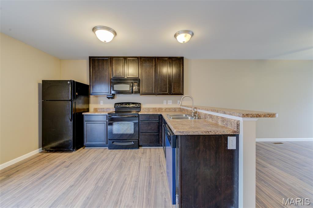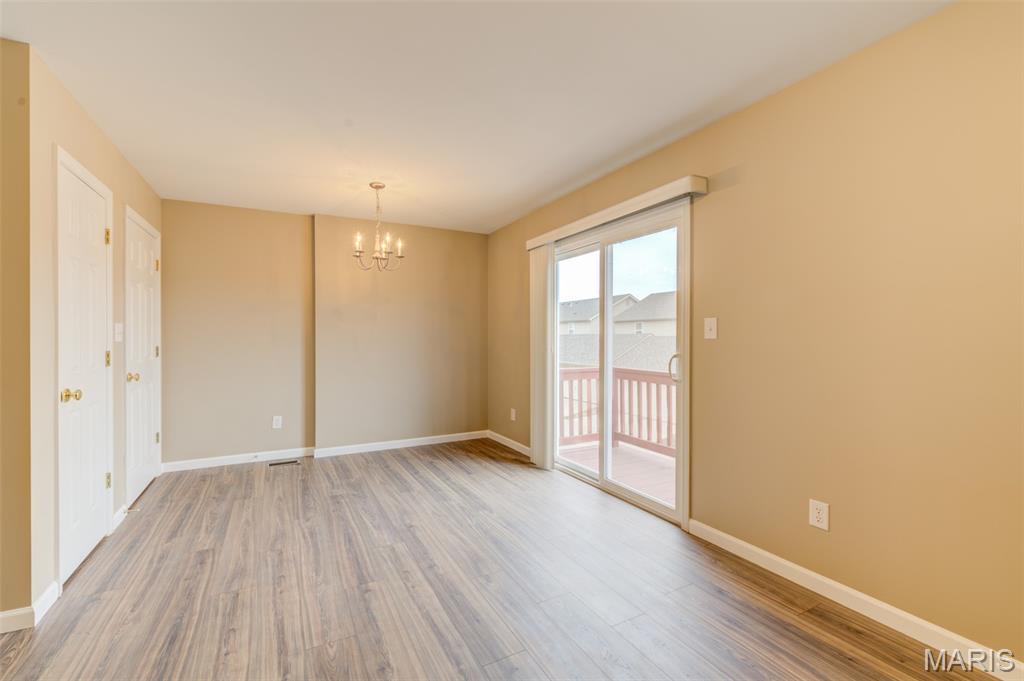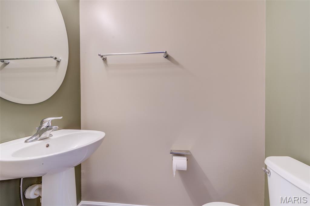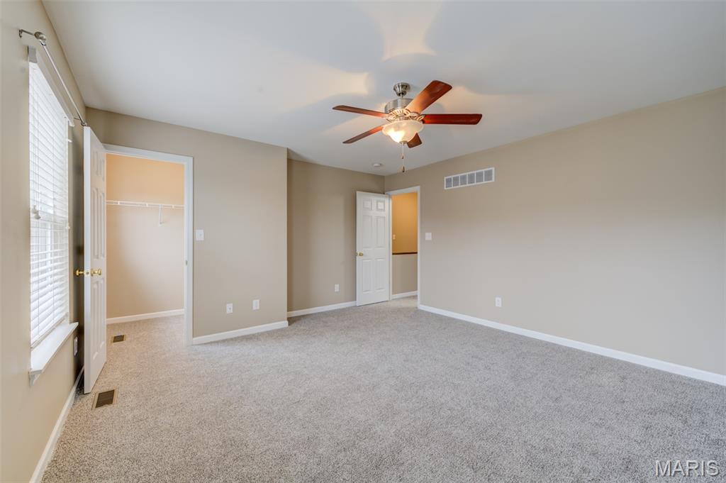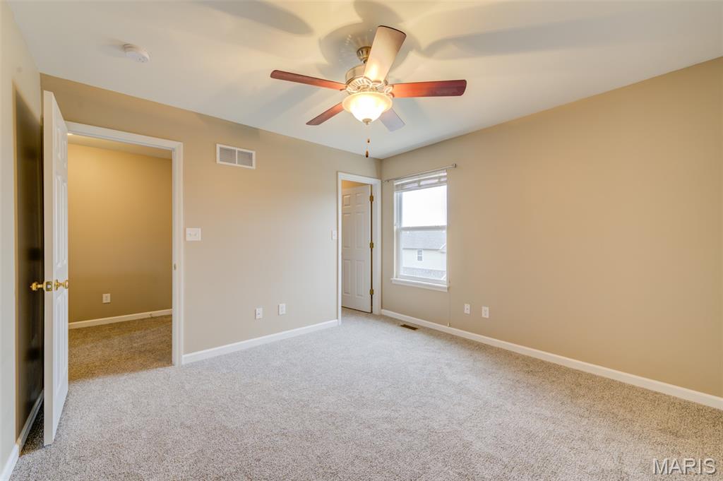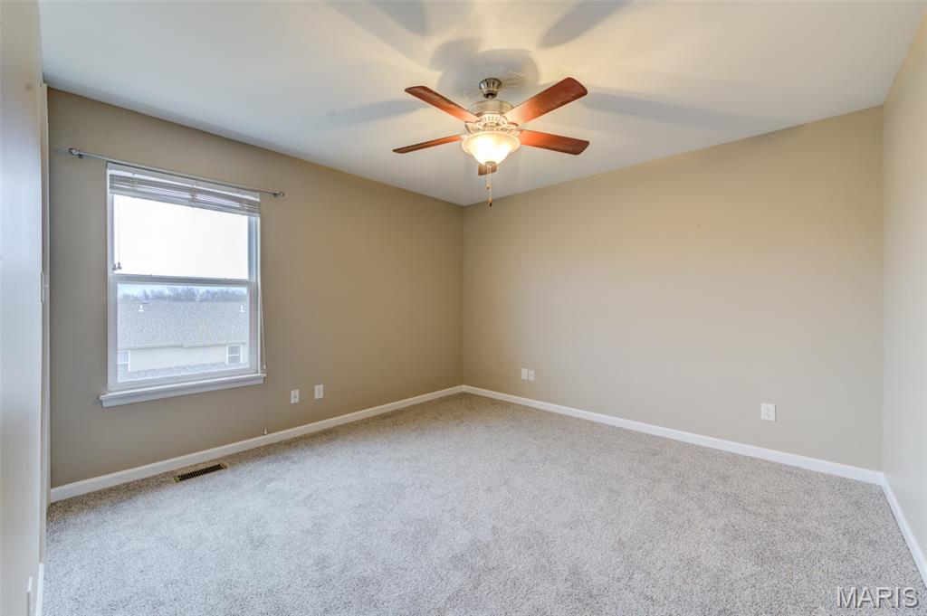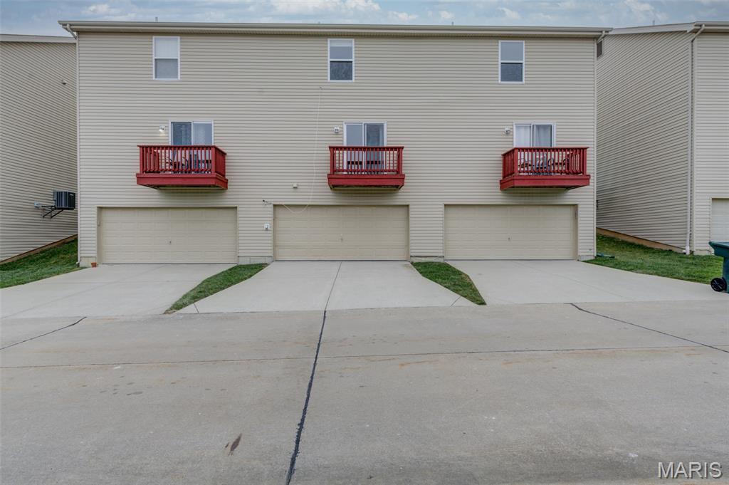 This awesome townhouse has an oversized 2 car garage attached to the home. Main level features open floor plan with large living area and lighted ceiling fan which is open to the kitchen with breakfast bar counter, smooth top stove, new dishwasher, microwave, disposal and refrigerator with ice maker is included. There is a pantry, dining area with slider to your deck for some fresh air and main level guest powder bathroom finish off the main level. Upstairs you'll find nice sized owner's suite and secondary bedroom both with ceiling fans and walk-in closets and full bathroom with comfort height vanity with a long counter space and double sinks. There is also a small loft at the top of the stairs with a closet could which would be a great place for a desk or reading nook. The oversized tuck-under 2 car garage can be accessed from the lower level. There is also a mud-type room from with closet from the garage entrance and off that area is the utility room with laundry area with storage shelf and hanging bar above hook-ups, furnace, water heater and sump pump. The home has fresh paint, new carpet, is move in ready and can accommodate a quick closing. The 2 car garage is accessed by an alley entrance and there is more ample guest parking in the front of the home. The Association maintains the outside and does your snow removal and keeps the landscaping looking lush. There is a picnic pavilion in the complex just a 2 min walk from this home. Great location in the heart of St Peters with it's shopping, dining, parks, amenities and easy access to highways. Make your appointment today!