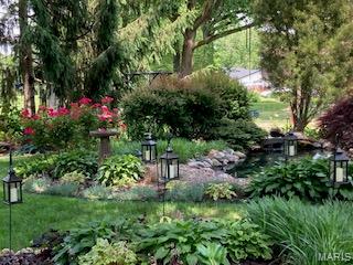 Enjoy the Lake St. Louis Association lifestyle with stunning golf course views of the 3rd green of the Lake St Louis golf course, all within walking distance to the clubhouse for true resort-style living. Peaceful scenery, lush landscaping, and koi pond with waterfall all create a setting that’s both relaxing and inviting. Beautiful hardwood floors span the main level, while the kitchen with rich hickory cabinetry opens seamlessly to a cozy family room anchored by a gas fireplace, perfect for everyday living or entertaining. Wood blinds throughout add warmth and continuity, and both full baths were stylishly updated in 2023. Extensive updates provide peace of mind, including a roof and high-efficiency HVAC (2019), 4-inch gutters with LeafGuard, irrigation system (2022), new electrical panel, window wells, and a 50-gallon water heater (2025). Other features include the paver stone driveway and patio, six-panel wood doors, and extensive landscaping add lasting quality and curb appeal. The $650/year Lake St. Louis Association fee offers exceptional amenities: two lakes, golf, tennis, swimming pools, clubhouse, restaurant, sandy beaches, covered picnic areas, and a full calendar of year-round activities, making every day feel like a getaway.