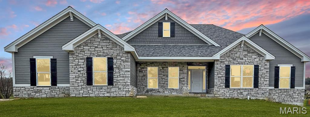 New Home on the water at Cobblestone Creek. Take in the view in your new home by Northern Star Homes at the last lake homesite! Here's the highlights of this floor plan: 3 main floor bedrooms + study, an open design with expansive windows, covered deck and patio. The finished lower level adds a rec room and bedroom, full bath and walk out to the patio. High ceilings, built ins, stone fireplace, upgraded flooring, upgraded trim and interior doors, Diamond level cabinets with oversized island, quartz tops, upgraded appliances with double wall oven, gas cooktop, added drawers, walk in pantry. The primary suite includes walk -in, walk through laundry area and the bath features a tile / frameless glass shower, separate soaking tub, double vanity w quartz, linen closet, Main floor laundry with cabinetry. The elevation planned shows off brick / stone, hip roof, side entry garage, and dormers (but we have options for the front elevation including a more craftsman style if buyer chooses. Huge, side entry three car garage that is 30' deep! Buyers will choose exterior and interior colors. Northern Star Homes will make some design variations and customizations. Northern Star Homes is your hometown builder in Washington, Missouri. Cobblestone Creek is located just outside of Washington and is a premier community with large homesites. More models are available to view at Stone Bridge (located just off Bieker Road).