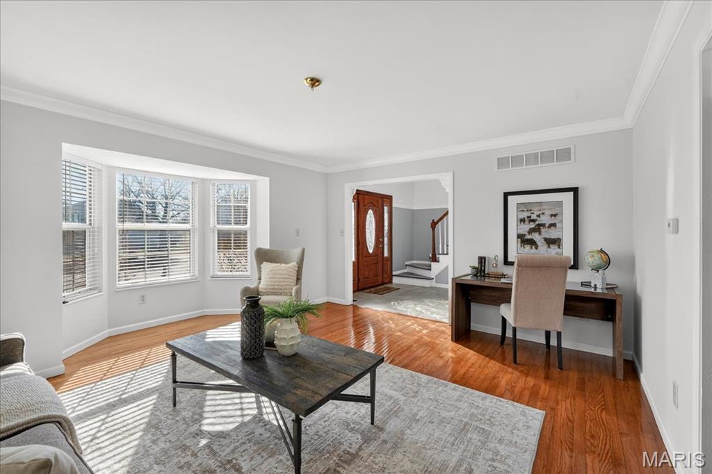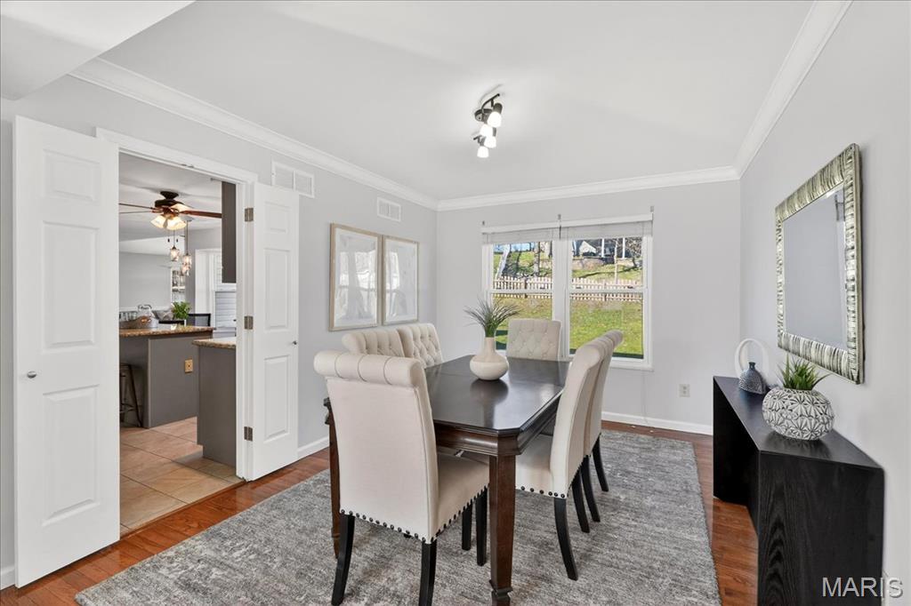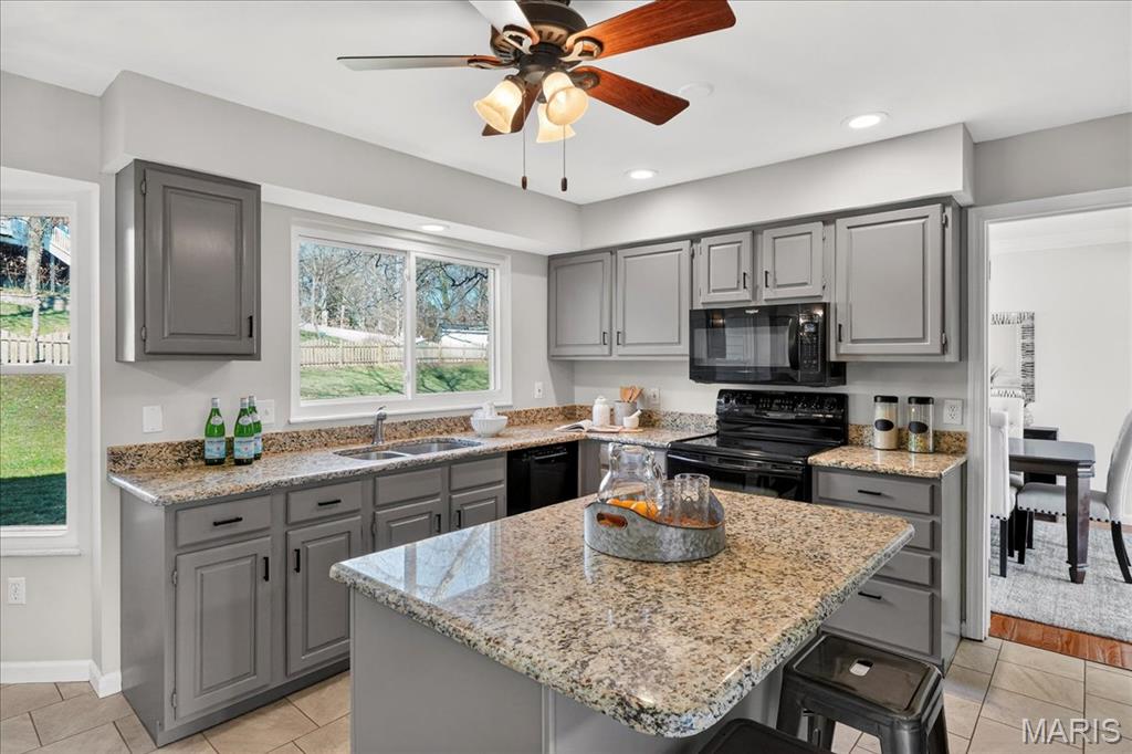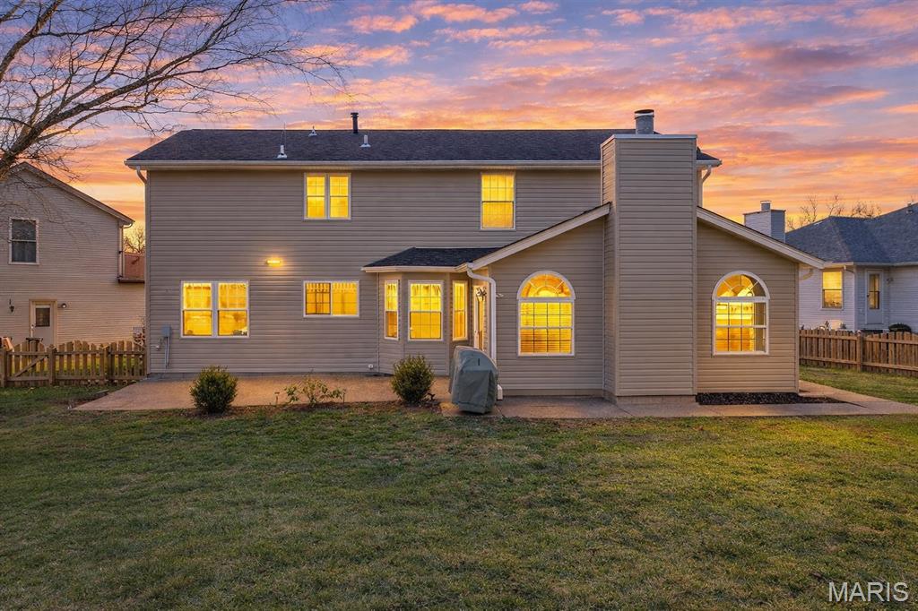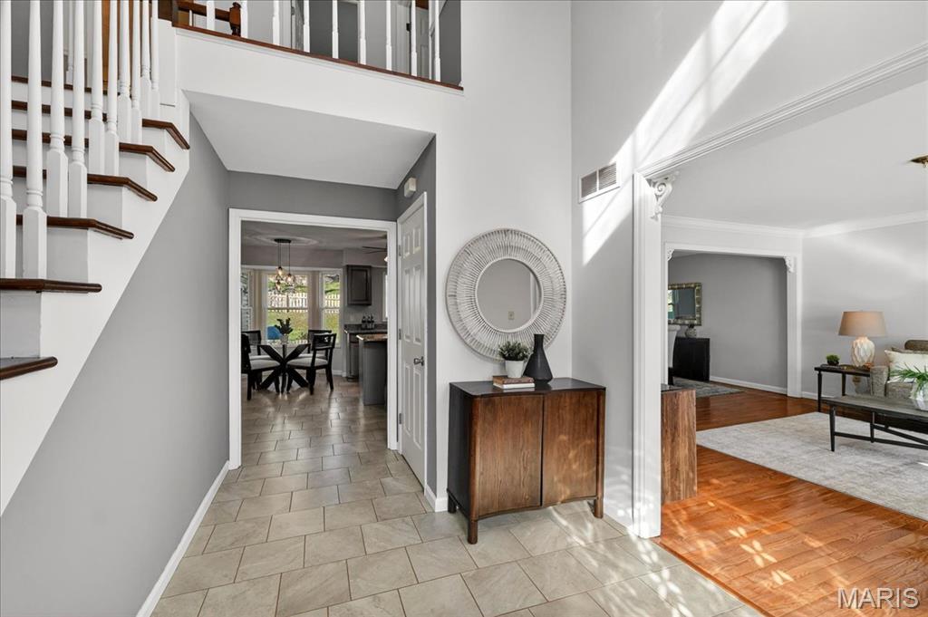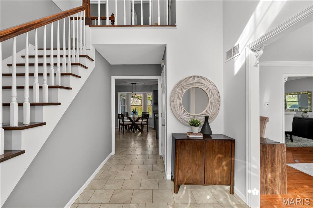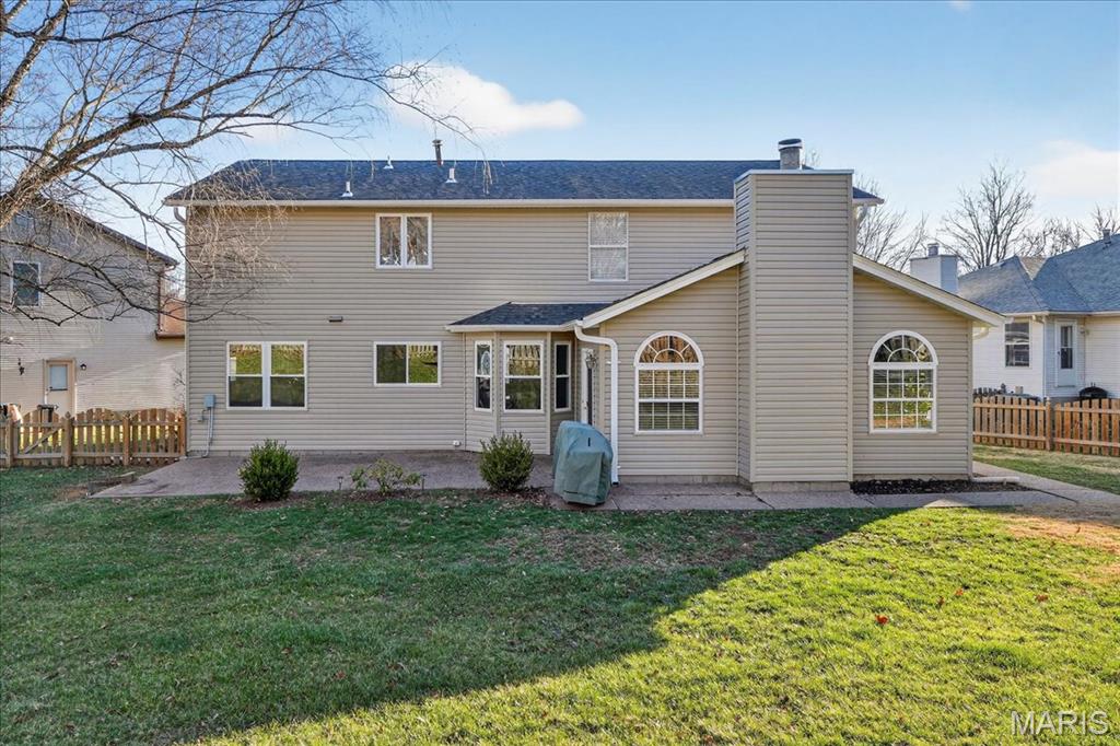 Welcome to 4910 Lowndes Drive, tucked inside a quiet, family-friendly neighborhood served by Mehlville Schools. One of the largest homes in the subdivision, this property offers the space, comfort, and thoughtful updates today’s buyers are searching for. From the moment you arrive, the inviting curb appeal sets the tone, and inside, a dramatic two-story foyer and warm hardwood floors create a welcoming first impression. The heart of the home is the beautifully updated kitchen with center island and bay windows that fill the space with natural light, flowing seamlessly into the spacious family room where soaring vaulted ceilings, a cozy fireplace, and wet bar make it the perfect place to gather. Step outside to the back patio overlooking a large, private, fully fenced yard ideal for summer evenings, playtime, or entertaining friends. The main floor also offers the convenience of laundry and a powder room, while the partially finished lower level with an additional half bath provides flexible space for recreation, hobbies, or guests. Upstairs, three comfortable guest bedrooms share an updated full bath, and the expansive primary suite serves as a true retreat with double sinks, a soaking tub, separate shower, and a generous walk-in closet. Major updates completed in 2025 including a new roof, siding, gutters, downspouts, and two new garage doors—add peace of mind and long-term value. This is a home designed for living well, growing comfortably, and making lasting memories.