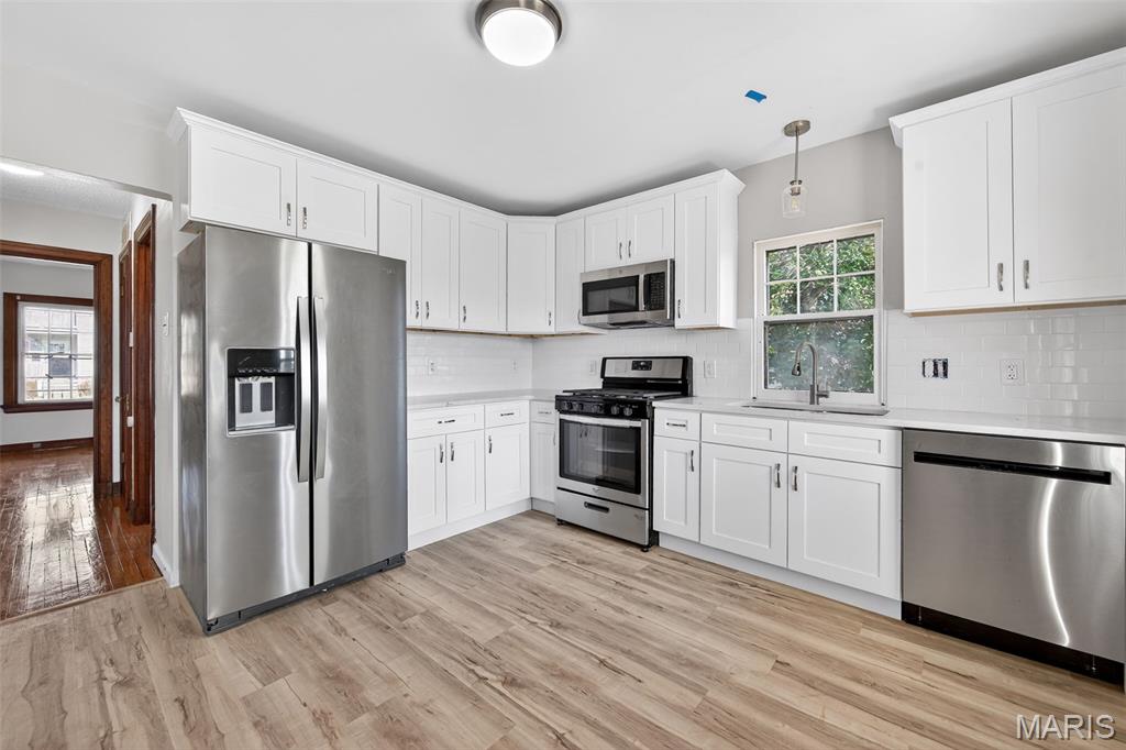 Fully renovated, packed with space, and incredibly versatile — 6318 Bradley Ave is the one you’ve been waiting for. This beautifully updated home offers 5 total bedrooms across three finished levels, providing flexibility for families, multi-generational living, or even house-hack potential. The main level features a bright living room, two spacious bedrooms, a stylish full bath, an updated kitchen with brand-new cabinets, countertops, and appliances, a dining area, and a sunroom that adds charm and additional living space. Upstairs, the finished attic includes two additional bedrooms — perfect for home offices, guest rooms, kids’ rooms, or creative space. The finished basement feels like its own private suite, complete with a large bedroom, full bathroom, and coffee bar — ideal for extended family, guests, or additional living quarters. Recent upgrades include: - New flooring throughout - Fresh paint - New kitchen cabinets & countertops - New appliances - Updated lighting & ceiling fans Outside, you’ll find a rare detached 4-car garage offering incredible storage, workshop space, or parking flexibility. Located in an excellent St. Louis location near restaurants, parks, shopping, and major highways, this home combines modern updates, generous space, and unbeatable convenience. Homes with this much flexibility and garage space don’t come along often — schedule your showing today.