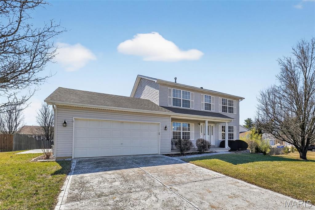 Welcome to 1816 Packard Court, a well-kept two-story home located on a quiet cul-de-sac in Dardenne Meadows. With 2,238 square feet of living space, four bedrooms, and a flexible floor plan, this home offers comfort, function, and room to grow. The main level features both a formal living room and a formal dining room, giving you dedicated spaces that can be used for everyday living, hobbies, or gatherings. The family room serves as the heart of the home with hardwood flooring, a bay window that brings in natural light, and a wood-burning fireplace that adds warmth and character. The kitchen is designed for efficiency and storage, offering granite countertops, vinyl flooring, a pantry, and easy access to the main-floor laundry room. A convenient half bath is also located on this level. Thoughtful details such as hard-wired smoke detectors and durable finishes add peace of mind. Upstairs, the primary bedroom includes a walk-in closet and a private bath with double sinks, a linen closet, a walk-in shower, and a separate tub. Three additional bedrooms and a full hall bath complete the upper level, offering flexibility for work, guests, or storage needs. The lower level provides a full basement with 1,266 square feet, ideal for future finishing, storage, or utility space. Additional feature includes a sump pump. Outside, the vinyl exterior offers easy upkeep, while the setting provides a sense of privacy. With a low annual HOA fee and a clean, move-in-ready condition, this home is ready to be seen in person. Schedule a showing today to experience the space and layout for yourself.