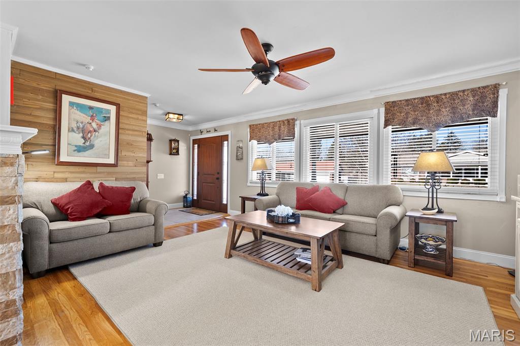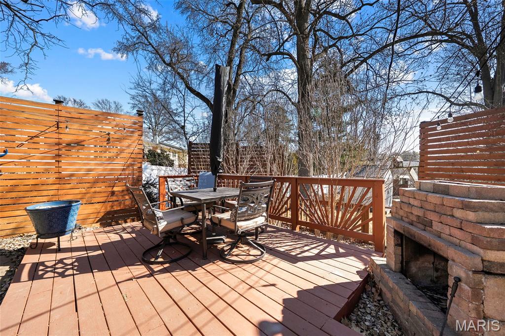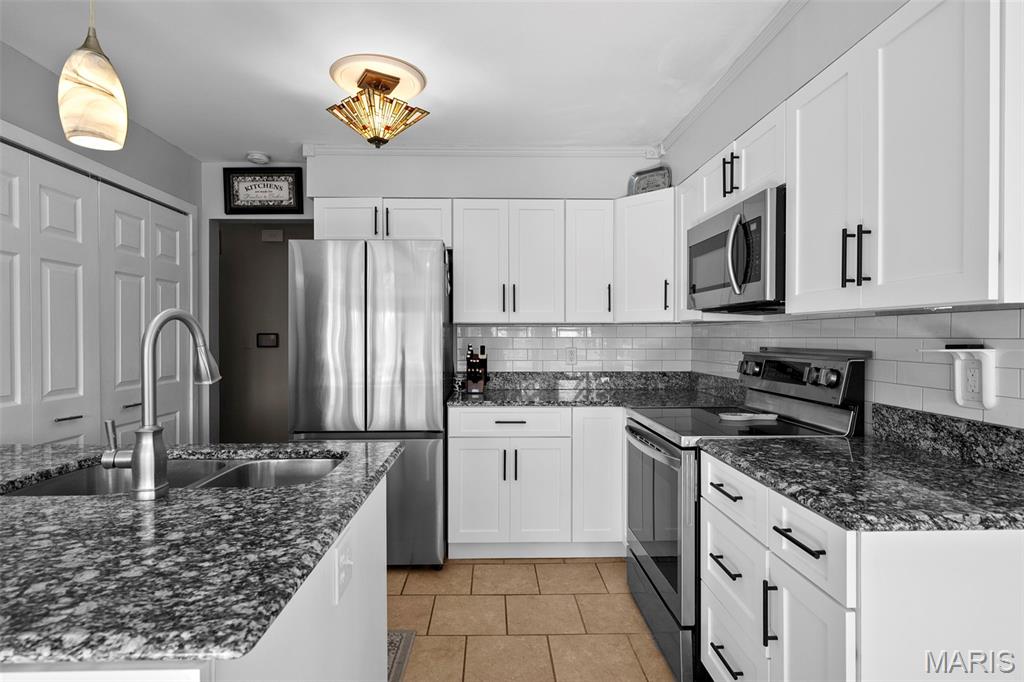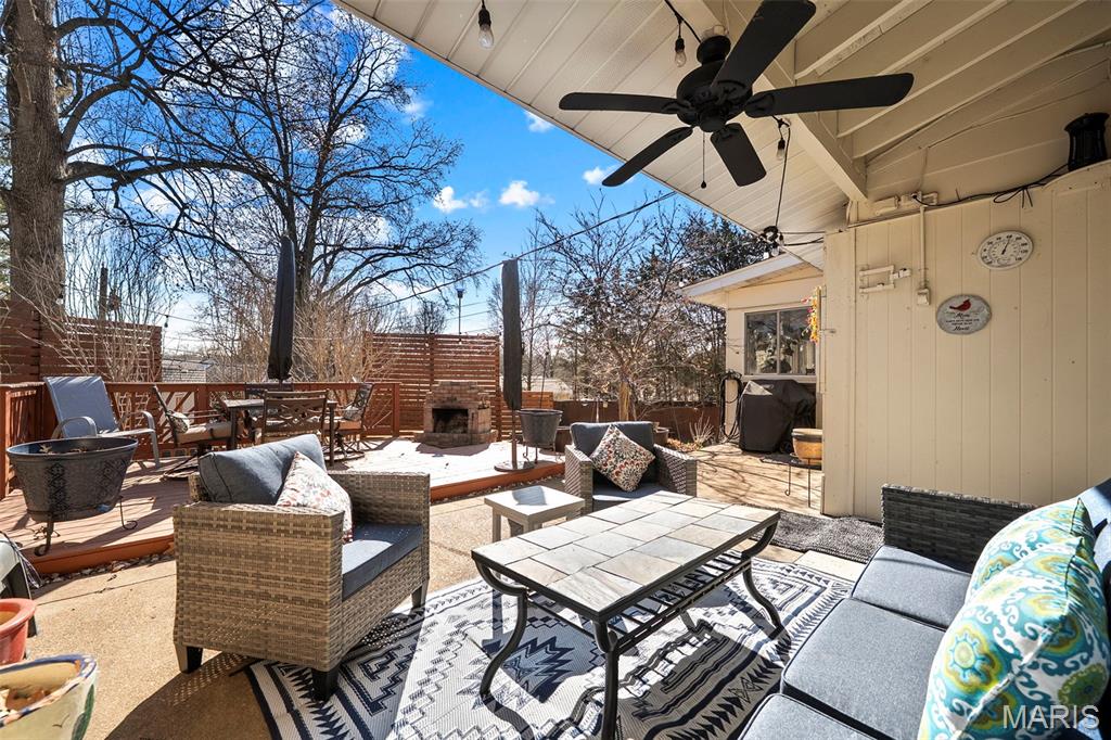 Open house canceled! This beautifully maintained and extensively updated home situated on one of the largest lots in the area! Lovingly cared for from 2015 to 2026, this property blends thoughtful modern upgrades with warm, inviting living spaces and an exceptional outdoor retreat. Prepare to be wowed starting with the new custom front entry door (2025). The eat-in kitchen is truly the heart of the home, featuring a stunning wall of windows that overlooks the backyard and fills the space with glorious morning sun — making every breakfast feel like a peaceful escape. The kitchen has been beautifully remodeled with refaced white cabinetry (2025), granite countertops, a subway tile backsplash, and updated trim and window framing in the breakfast area. New appliances include an LG stove (2025), KitchenAid silent dishwasher (2025), refrigerator (2022), microwave (2022), and disposal (2023), along with a new faucet and sprayer. Fresh paint (2025), sun-blocking window treatments, a ceiling fan with light, and a mounted TV complete this bright and functional space. Major mechanical updates provide comfort and efficiency, including a Lennox HVAC system installed in 2018 with a 90% efficient gas furnace, 14 SEER air conditioning unit, whole-home humidifier, and digital programmable thermostat. Doors throughout the home have been upgraded, including a custom fiberglass front door with sidelight (2025), new kitchen glass door (2025), walk-out basement fire door (2021), and new garage doors (2024). Custom barn doors add character in the primary suite and basement, and six-panel doors enhance the bedrooms and lower level. Flooring updates include refinished hardwood floors (2015), new carpet in the primary bedroom (2022) and basement family room (2023), and luxury vinyl plank flooring in Bedroom 4, currently used as an office (2023). The primary bathroom has been beautifully renovated with a tiled shower and glass doors, new vanity and sink, updated cabinetry, mirror, and lighting. The second bathroom features a newly glazed tub and updated vanity lighting. Additional interior improvements include an electric fireplace and built-in bookcase in the living room, crown molding in the living room, dining room, hallways, and second bathroom, updated light fixtures in the dining room and entryway, ceiling fans throughout the main floor, window treatments on every main floor window, replaced basement windows (2018), a basement workbench, and multiple TV mounts. The front porch concrete has been professionally epoxy coated (2024) for a polished finish. Step outside to an incredible outdoor paradise. The oversized lot is surrounded by massive mature trees and thoughtfully landscaped with newly planted maples, a cherry tree, and Rose of Sharon. The backyard is designed for both relaxation and entertaining, featuring a wooden deck with side rails and toppers, privacy fencing replacing the original chain-link, outdoor lighting along the deck and fence, and a custom-built outdoor fireplace that creates a cozy gathering space year-round. Decorative front blockwork and raised beds with rock accents add to the home’s curb appeal. This move-in ready home offers space, privacy, extensive updates, and a truly special backyard setting — all in a highly desirable Creve Coeur location.