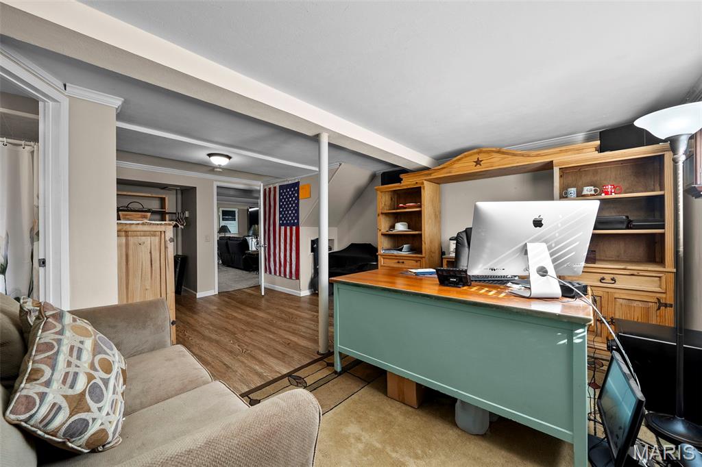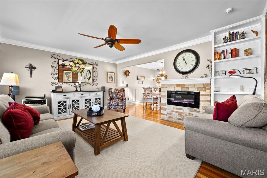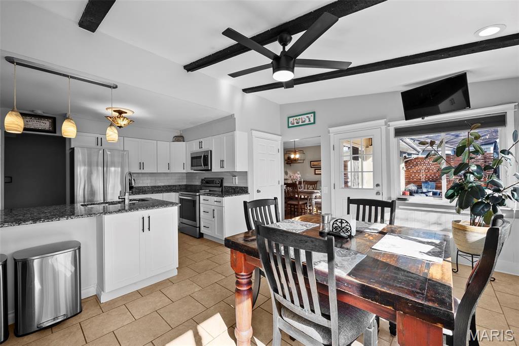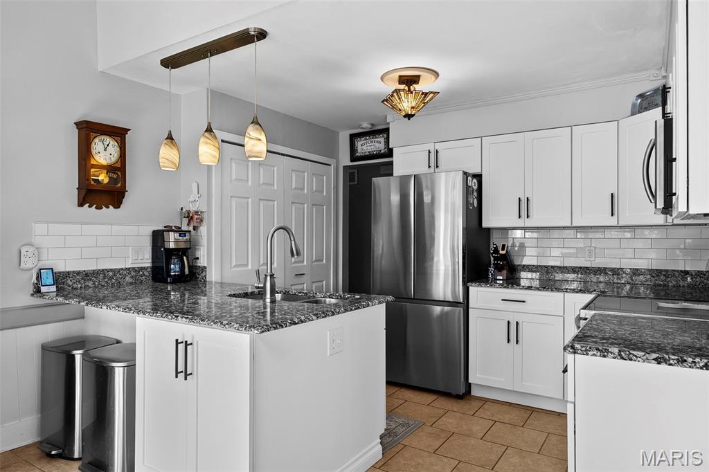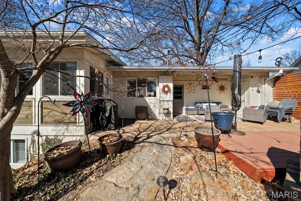 Open house canceled! This beautifully maintained and extensively updated home situated on one of the largest lots in the area! Lovingly cared for from 2015 to 2026, this property blends thoughtful modern upgrades with warm, inviting living spaces and an exceptional outdoor retreat. Prepare to be wowed starting with the new custom front entry door (2025). The eat-in kitchen is truly the heart of the home, featuring a stunning wall of windows that overlooks the backyard and fills the space with glorious morning sun — making every breakfast feel like a peaceful escape. The kitchen has been beautifully remodeled with refaced white cabinetry (2025), granite countertops, a subway tile backsplash, and updated trim and window framing in the breakfast area. New appliances include an LG stove (2025), KitchenAid silent dishwasher (2025), refrigerator (2022), microwave (2022), and disposal (2023), along with a new faucet and sprayer. Fresh paint (2025), sun-blocking window treatments, a ceiling fan with light, and a mounted TV complete this bright and functional space. Major mechanical updates provide comfort and efficiency, including a Lennox HVAC system installed in 2018 with a 90% efficient gas furnace, 14 SEER air conditioning unit, whole-home humidifier, and digital programmable thermostat. Doors throughout the home have been upgraded, including a custom fiberglass front door with sidelight (2025), new kitchen glass door (2025), walk-out basement fire door (2021), and new garage doors (2024). Custom barn doors add character in the primary suite and basement, and six-panel doors enhance the bedrooms and lower level. Flooring updates include refinished hardwood floors (2015), new carpet in the primary bedroom (2022) and basement family room (2023), and luxury vinyl plank flooring in Bedroom 4, currently used as an office (2023). The primary bathroom has been beautifully renovated with a tiled shower and glass doors, new vanity and sink, updated cabinetry, mirror, and lighting. The second bathroom features a newly glazed tub and updated vanity lighting. Additional interior improvements include an electric fireplace and built-in bookcase in the living room, crown molding in the living room, dining room, hallways, and second bathroom, updated light fixtures in the dining room and entryway, ceiling fans throughout the main floor, window treatments on every main floor window, replaced basement windows (2018), a basement workbench, and multiple TV mounts. The front porch concrete has been professionally epoxy coated (2024) for a polished finish. Step outside to an incredible outdoor paradise. The oversized lot is surrounded by massive mature trees and thoughtfully landscaped with newly planted maples, a cherry tree, and Rose of Sharon. The backyard is designed for both relaxation and entertaining, featuring a wooden deck with side rails and toppers, privacy fencing replacing the original chain-link, outdoor lighting along the deck and fence, and a custom-built outdoor fireplace that creates a cozy gathering space year-round. Decorative front blockwork and raised beds with rock accents add to the home’s curb appeal. This move-in ready home offers space, privacy, extensive updates, and a truly special backyard setting — all in a highly desirable Creve Coeur location.