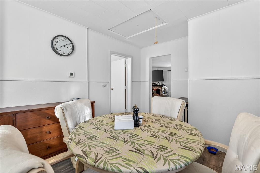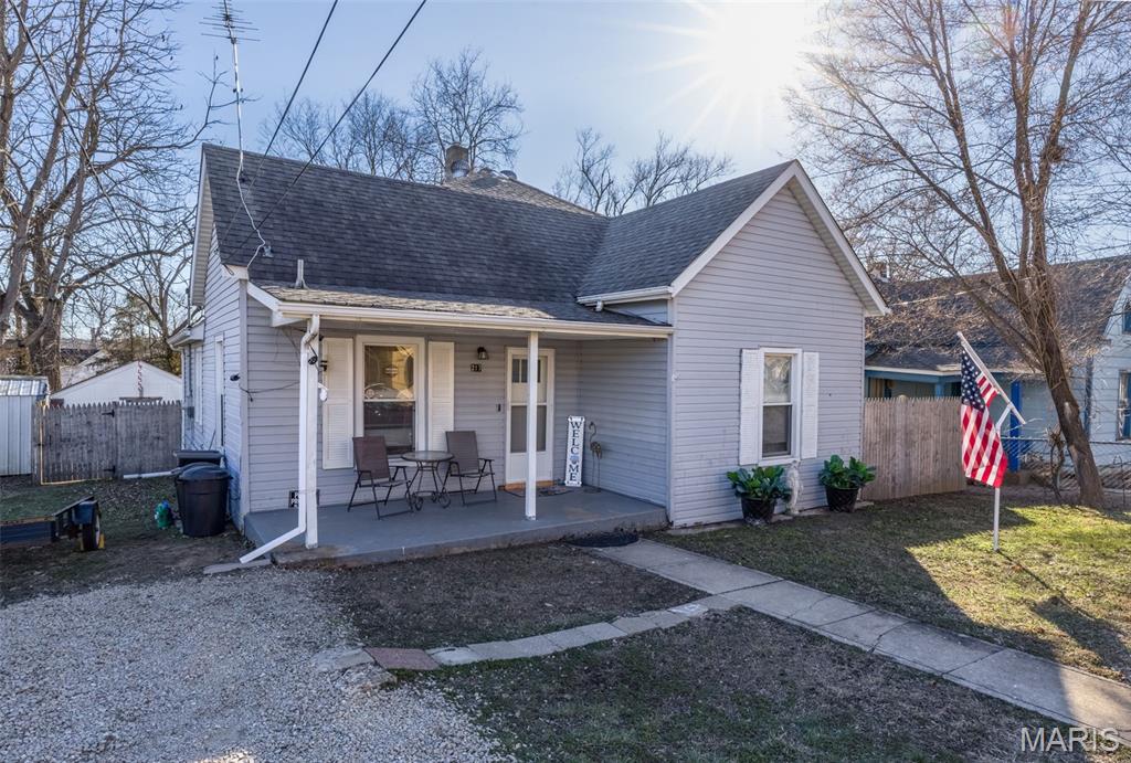 This all-electric 3-bedroom, 1-bath home offers spacious rooms and timeless character, featuring some original hardwood flooring. Large windows bring in natural light, creating a warm and inviting feel the moment you step inside. Enjoy relaxing evenings on the covered front porch. Take advantage of the pull-down attic access that provides abundant storage space. Situated on a larger lot with mature trees, this property offers privacy and a peaceful setting — a rare find at this price point. The fully fenced yard with privacy fencing adds security and seclusion, perfect for pets, kids, or simply enjoying your own space. A detached garage and additional shed provide extra storage and workspace options. Conveniently located close to town, this home offers easy access to everyday amenities while still maintaining a quaint, manageable feel. Whether you’re looking for a solid starter home or your next investment property, this one checks all the boxes. Affordable, functional, and full of potential. Great opportunity at a great price — don’t miss it!