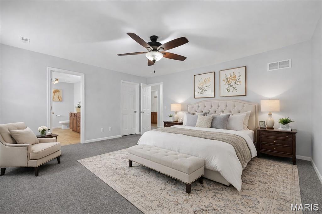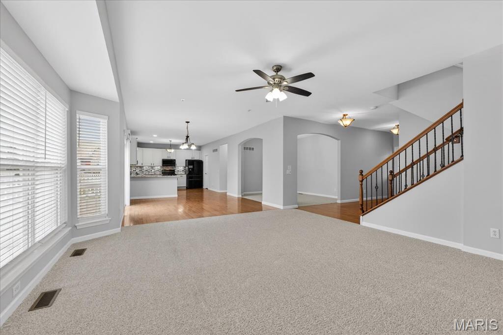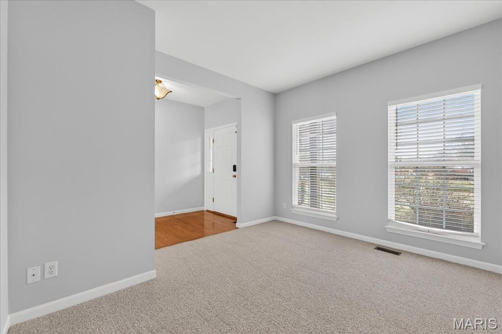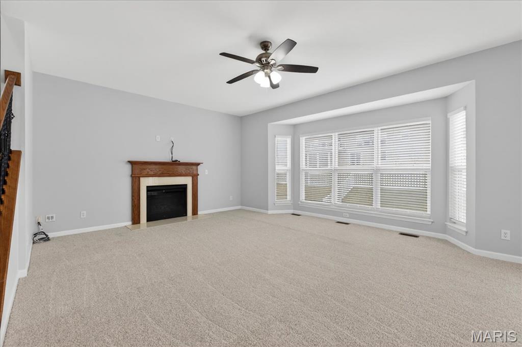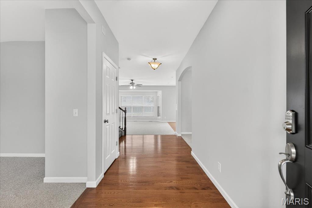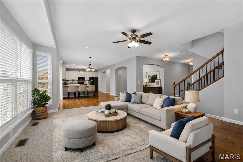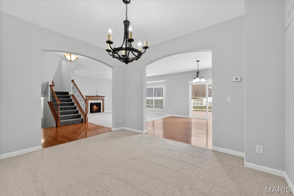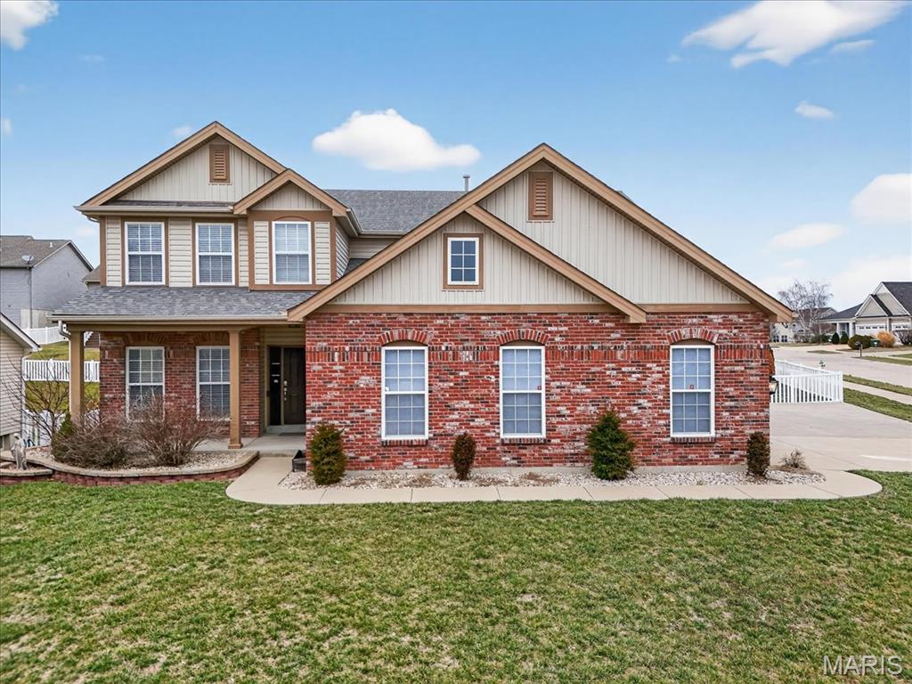 Welcome to Talbridge, one of St. Charles' most sought-after neighborhoods. This beautifully updated corner-lot home checks every box and then some. From the moment you pull up, you'll notice the oversized driveway, additional side parking, and side-entry garage, plenty of room for guests, toys, or extra vehicles. Inside, newer carpet, fresh designer paint, hardwood floors, and soaring 9' ceilings set a warm, welcoming tone throughout. The family room centers around a cozy gas fireplace with a bay window that fills the space with natural light. Arched openings lead to a formal dining room and a private den, perfect as a home office. The kitchen has been tastefully refreshed with custom white cabinetry and flows right out to a maintenance-free deck overlooking a fully fenced backyard, ideal for summer evenings and weekend entertaining. Upstairs, the primary suite offers a spa-style bath and walk-in closet, with walk-in closets in every bedroom and double vanities in the hall bath. The finished lower level is a true bonus, complete with a full bathroom, making it perfect for guests, a rec room, or whatever fits your lifestyle. Maintenance-free exterior with architectural shingles, brick front, and enclosed soffits and fascia make this home truly move-in ready. In Talbridge, homes like this don't come around often. Don't miss your chance.