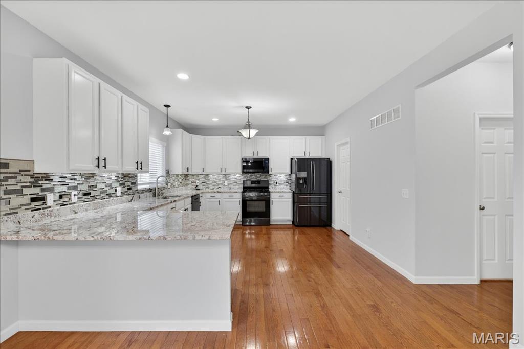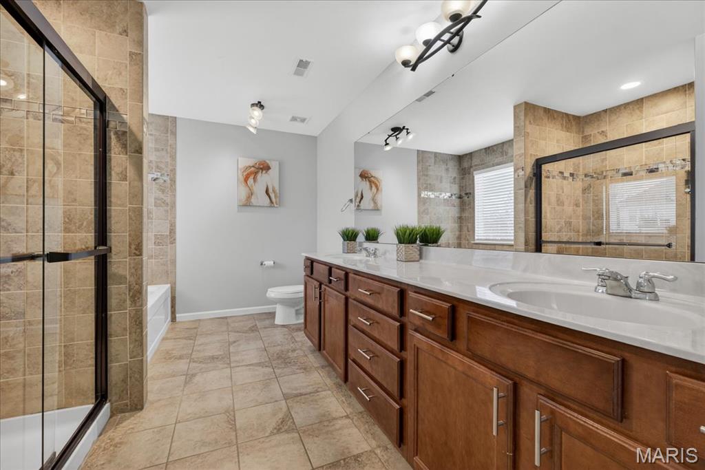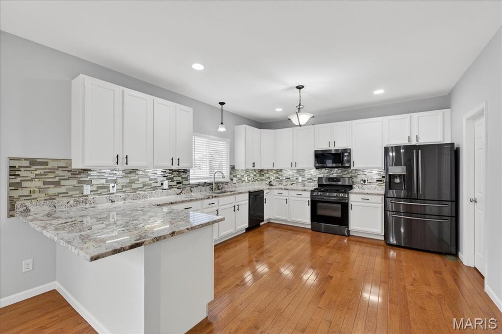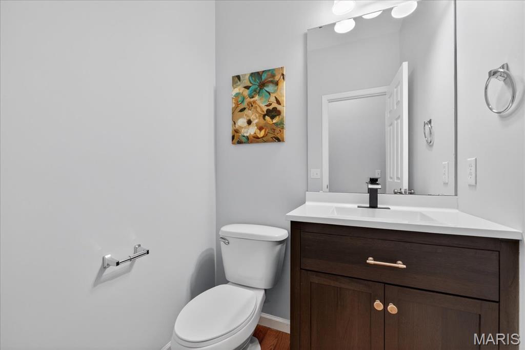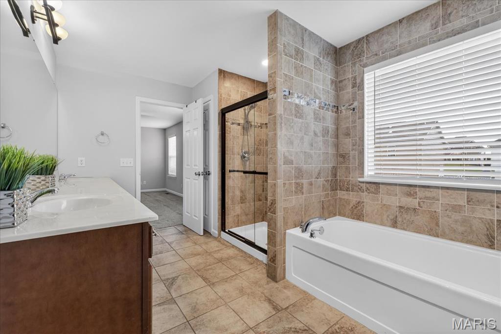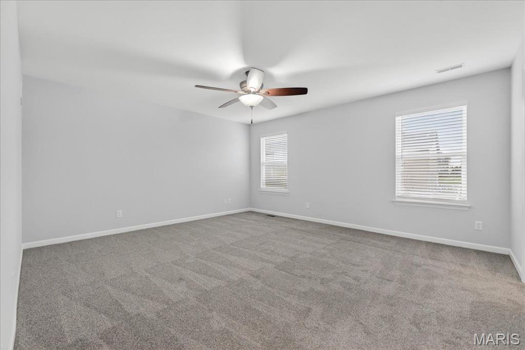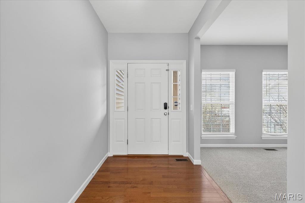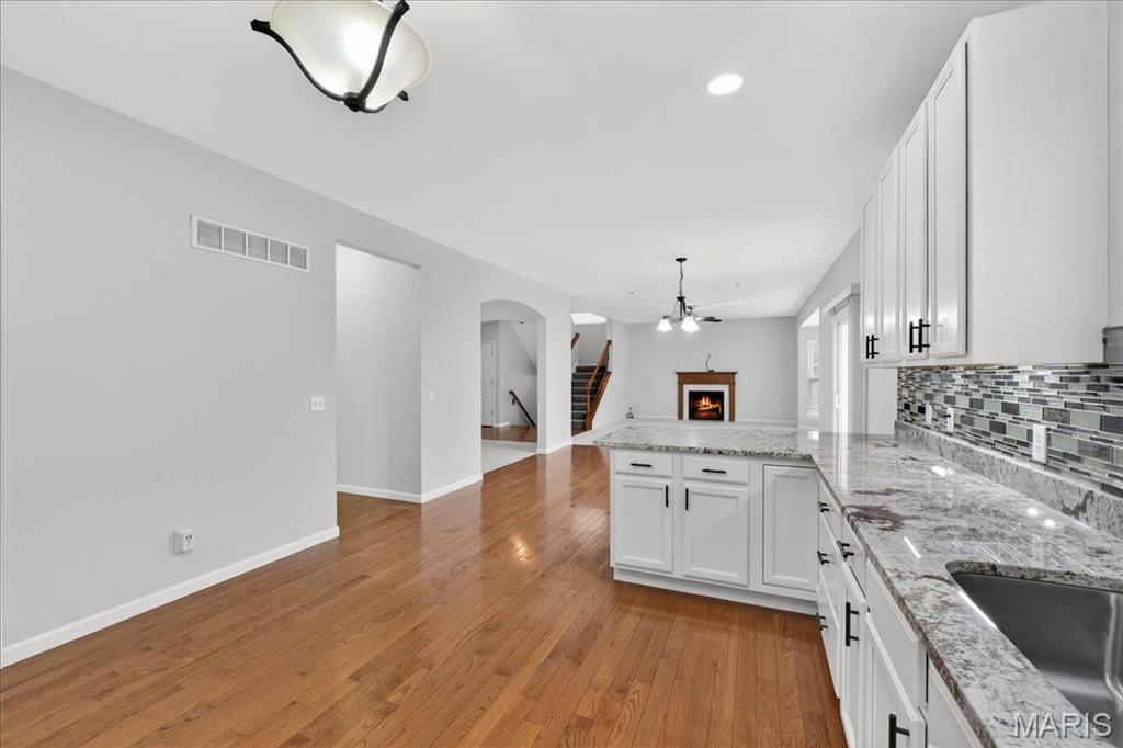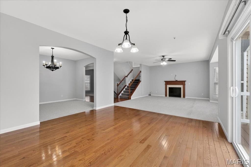 Welcome to Talbridge, one of St. Charles' most sought-after neighborhoods. This beautifully updated corner-lot home checks every box and then some. From the moment you pull up, you'll notice the oversized driveway, additional side parking, and side-entry garage, plenty of room for guests, toys, or extra vehicles. Inside, newer carpet, fresh designer paint, hardwood floors, and soaring 9' ceilings set a warm, welcoming tone throughout. The family room centers around a cozy gas fireplace with a bay window that fills the space with natural light. Arched openings lead to a formal dining room and a private den, perfect as a home office. The kitchen has been tastefully refreshed with custom white cabinetry and flows right out to a maintenance-free deck overlooking a fully fenced backyard, ideal for summer evenings and weekend entertaining. Upstairs, the primary suite offers a spa-style bath and walk-in closet, with walk-in closets in every bedroom and double vanities in the hall bath. The finished lower level is a true bonus, complete with a full bathroom, making it perfect for guests, a rec room, or whatever fits your lifestyle. Maintenance-free exterior with architectural shingles, brick front, and enclosed soffits and fascia make this home truly move-in ready. In Talbridge, homes like this don't come around often. Don't miss your chance.