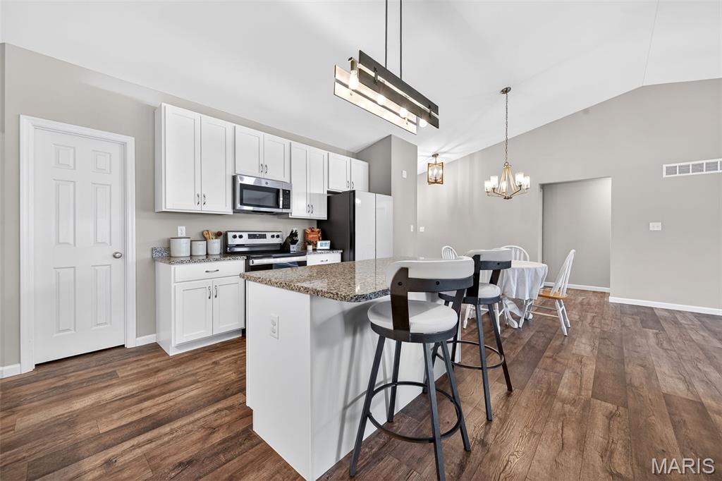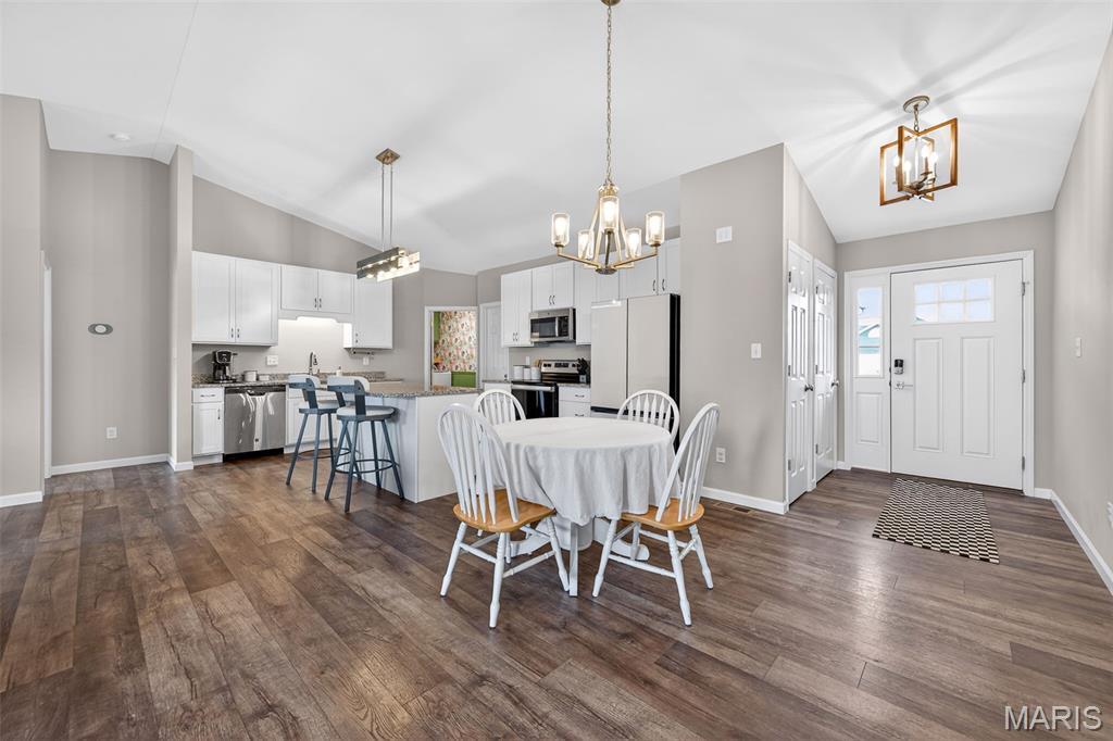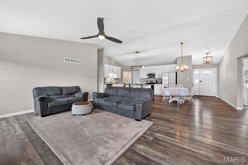 Welcome home to this lightly lived in ranch in the highly desirable Charlestowne Place subdivision! Built by respected builder TR Hughes Homes, this 3-bedroom, 2-bath, beauty offers the perfect blend of thoughtful design, quality craftsmanship, and modern comfort. Step inside to a bright, open layout featuring gorgeous LVP flooring, granite countertops, vaulted ceilings, and an abundance of natural light throughout. The split-bedroom floor plan provides ideal privacy, with the spacious primary suite separated from the secondary bedrooms. Thoughtfully designed for effortless living, this home features main-floor laundry for added comfort and convenience. The backyard is fully fenced offering privacy and peace of mind, ideal for relaxing evenings, pets, play, or hosting family and friends. The unfinished basement is a blank canvas, and features a full bath rough in, and an Egress window. The 3-car garage offers plenty of room for vehicles, storage, hobbies, or a workshop. Located just minutes from downtown St. Charles, Lindenwood University, shopping, dining, and major highways, this home offers both convenience and community. You’ll love being part of this growing neighborhood. Schedule your private showing today and see why this is the one you’ve been waiting for. Open House Saturday & Sunday 1-3pm!!!