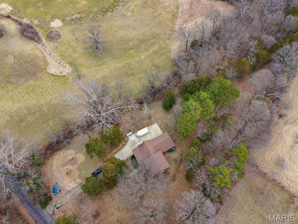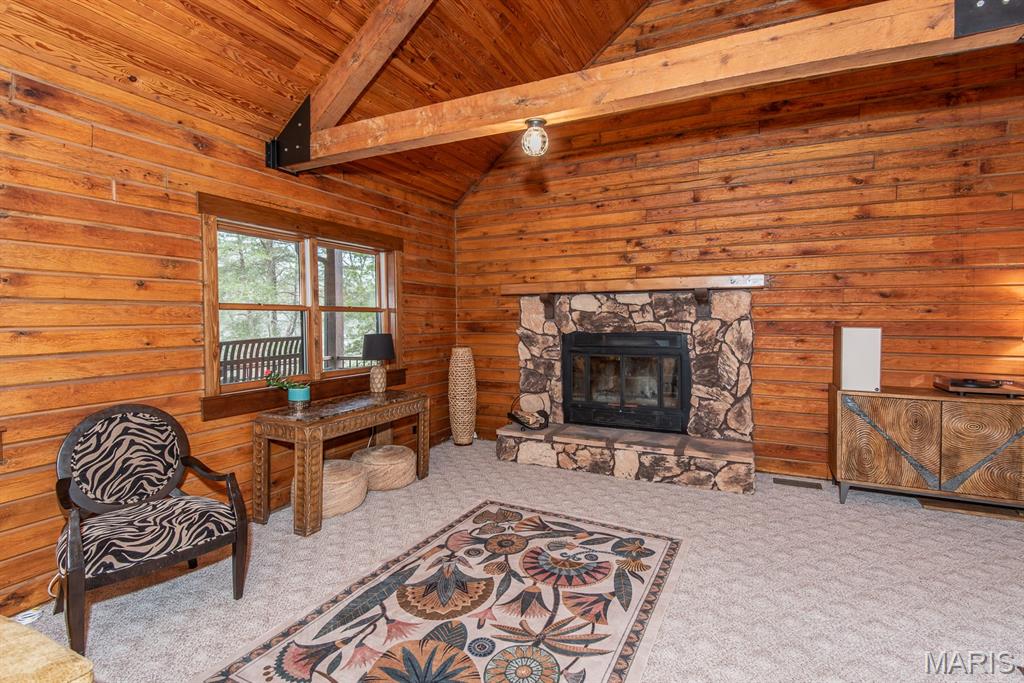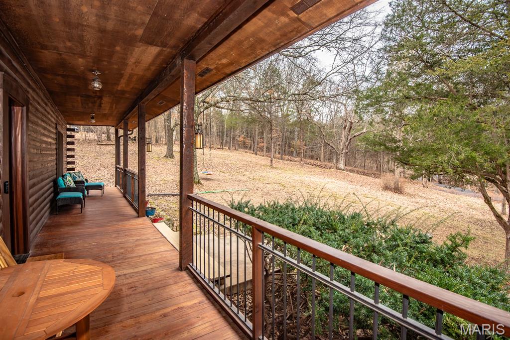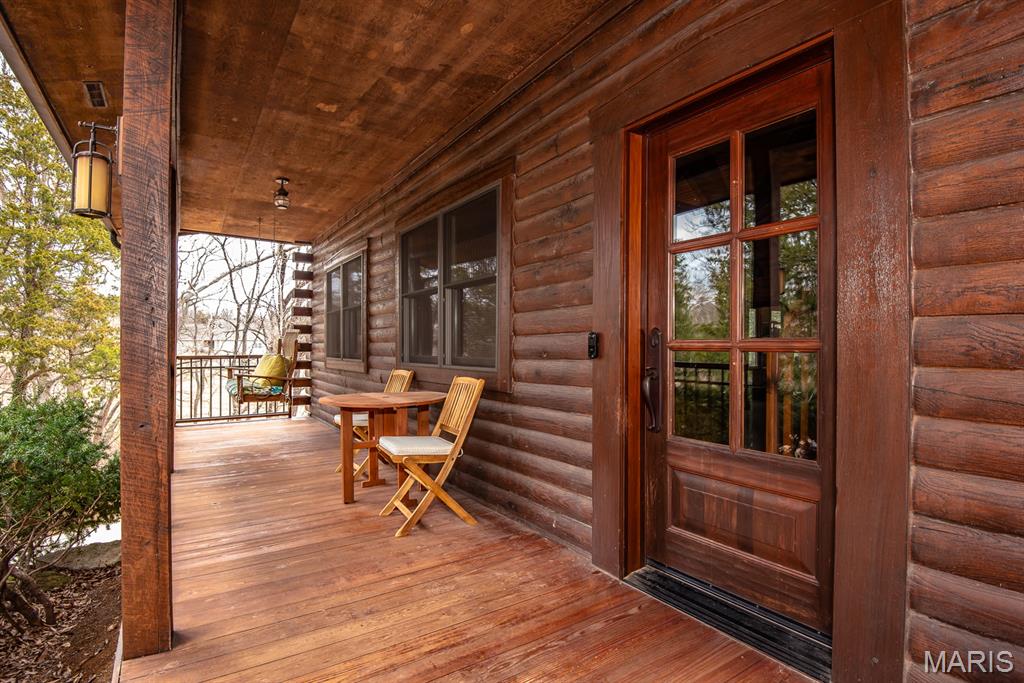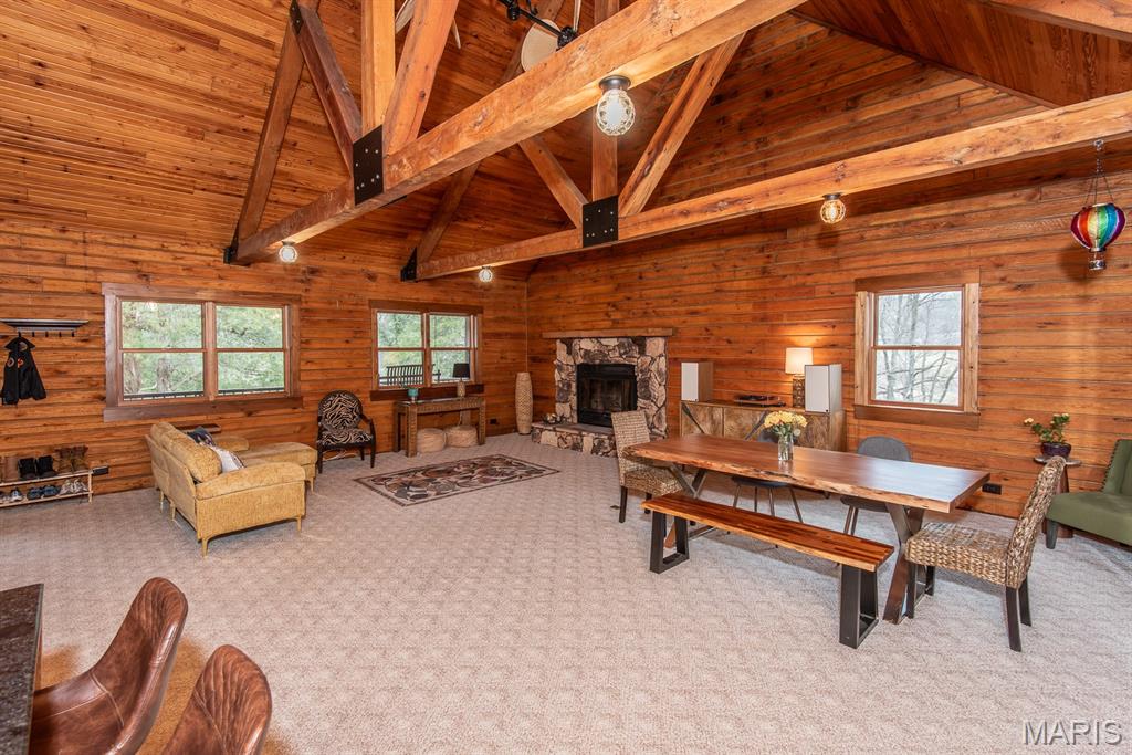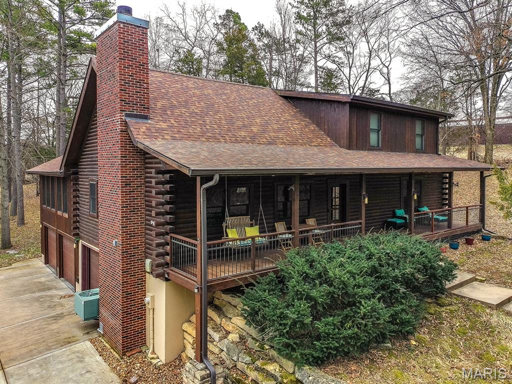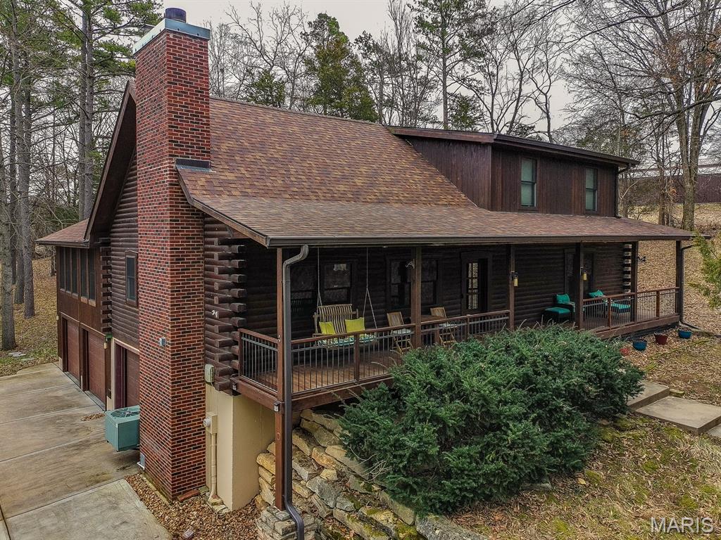 A rare Eureka retreat – 6.24 private acres with a thoughtfully designed custom 4-bedroom, 2.5-bath home that is both functional and visually stunning. Blending natural beauty, privacy, and convenience in a way that is increasingly hard to find, the property is surrounded by mature trees, wet-weather creek, and wooded views that create a true sense of escape while remaining just minutes from shopping, dining, and quick I-44 access. Imagine mornings spent on the porch with coffee in hand as sunlight filters through the trees, or ending the day with a quiet walk along your own private stretch of nature. Inside, the home showcases the craftsmanship and warmth expected in a true log home, featuring soaring vaulted tongue-and-groove ceilings, large windows filled with natural light, and an impressive stone wood-burning fireplace that anchors the main living space. The open living and dining areas create an inviting setting for everyday living or entertaining. The spacious main-level family room offers beautiful wood flooring and wall-to-wall windows with panoramic views. The thoughtful layout includes two bedrooms on the main floor with two additional bedrooms upstairs, ideal for guests, remote work, or hobbies. A partially finished walk-out basement with bathroom and an oversized 3+ car garage offer generous space for cars, outdoor equipment, and perhaps a few recreational vehicles. Lovingly and meticulously cared for, this home presents a rare opportunity for buyers seeking acreage, character, and convenience in one of Eureka’s most desirable settings
