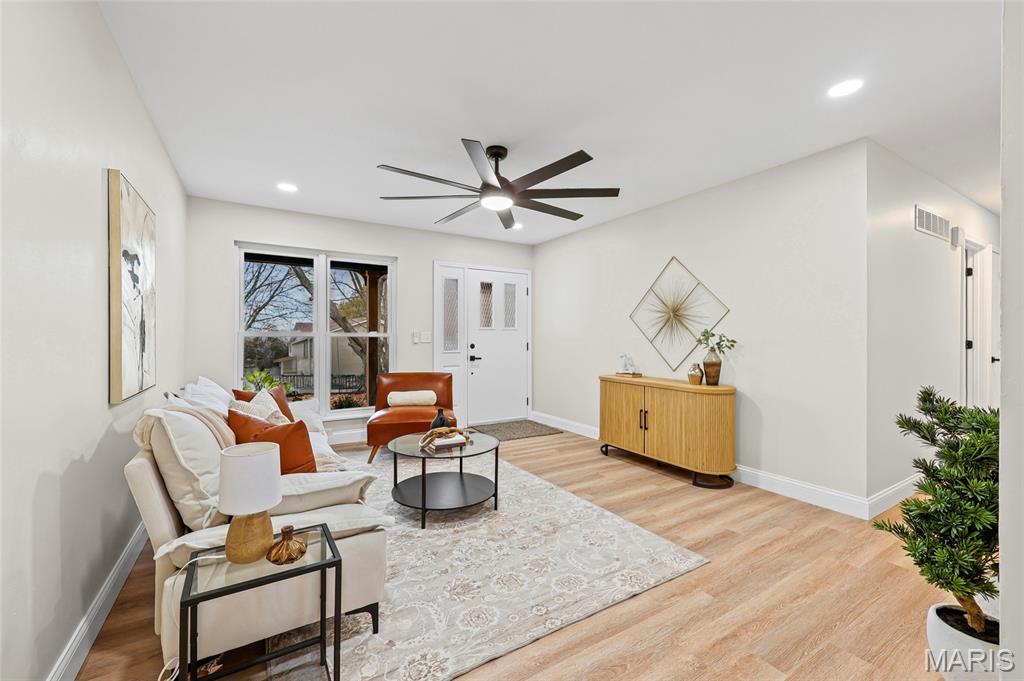 OPEN SUN 1-3PM! WOW, what a beautiful place to call HOME - Spacious, completely renovated 3 bedroom, 2 full bath ranch located just a short walk from beautiful Laurel Park and Francis Howell North High! Outstanding location with all main floor living and additional lower level finished space. You'll fall in love with the finishes throughout. Inviting covered front porch welcomes you inside - as you enter the great living room with a great flow to the dining & kitchen area - followed by the family room with vaulted ceilings and a fireplace! Kitchen highlights are brand new countertops, plenty of cabinetry, new appliances and a pantry. Beautiful primary main floor bedroom featuring a great private full bath. Two big sized bedrooms and an additional full bath complete the main floor. Lower level has partially been finished with a big recreation/ bonus room or additional family (could also be used as an office, gym or hobby/ play area) as well as a separate sleeping room!! This basement also features an unfinished area with lots room for storage or workshop area. Additional highlights are the big 2-car garage and the private backyard - perfect for relaxing, gardening, bbq hangouts, pets or entertaining! Move-in Ready for you - comes with passed occupancy AND a Home Warranty. Nestled in a quiet neighborhood with access to a scenic community pond, it's an ideal setting for peaceful living. CALL NOW!