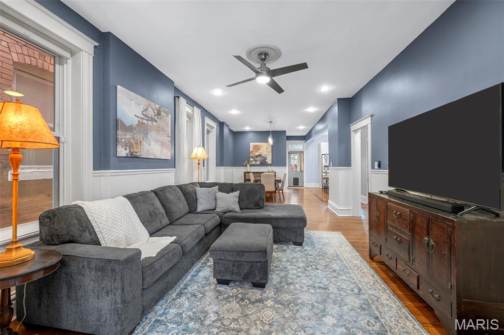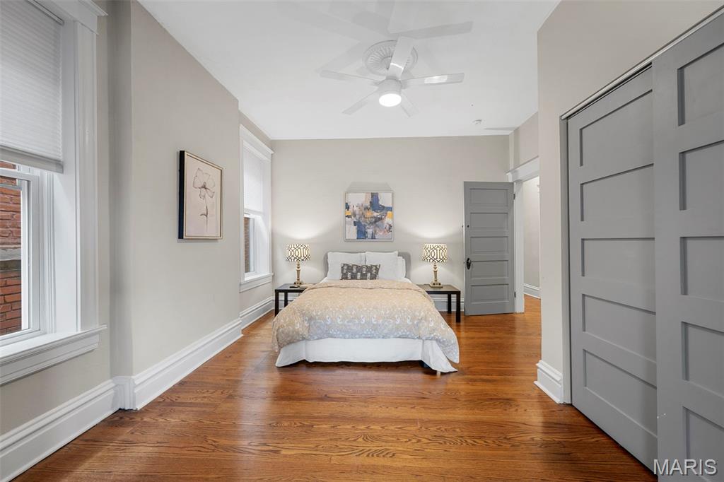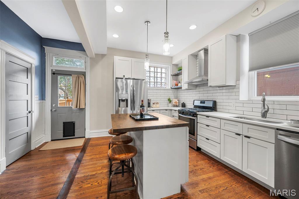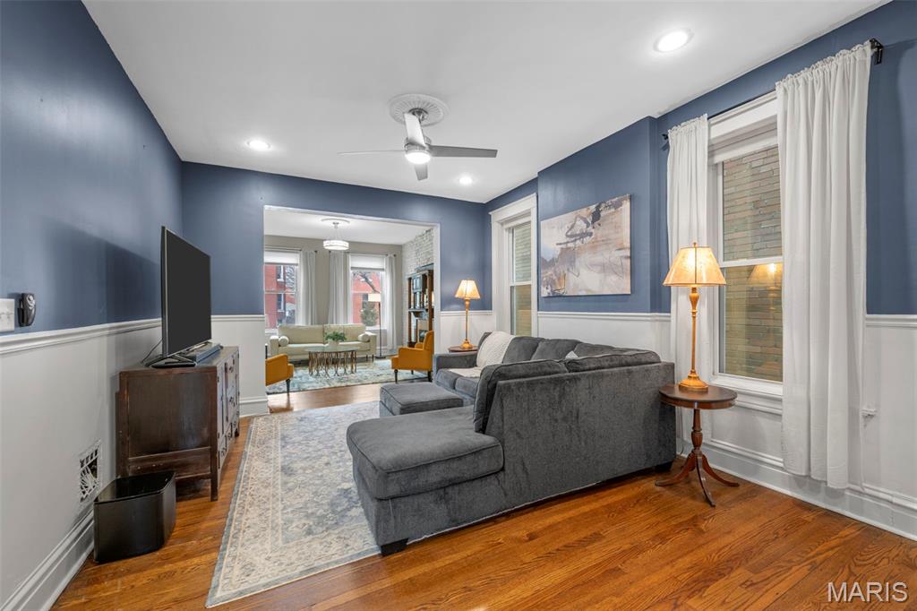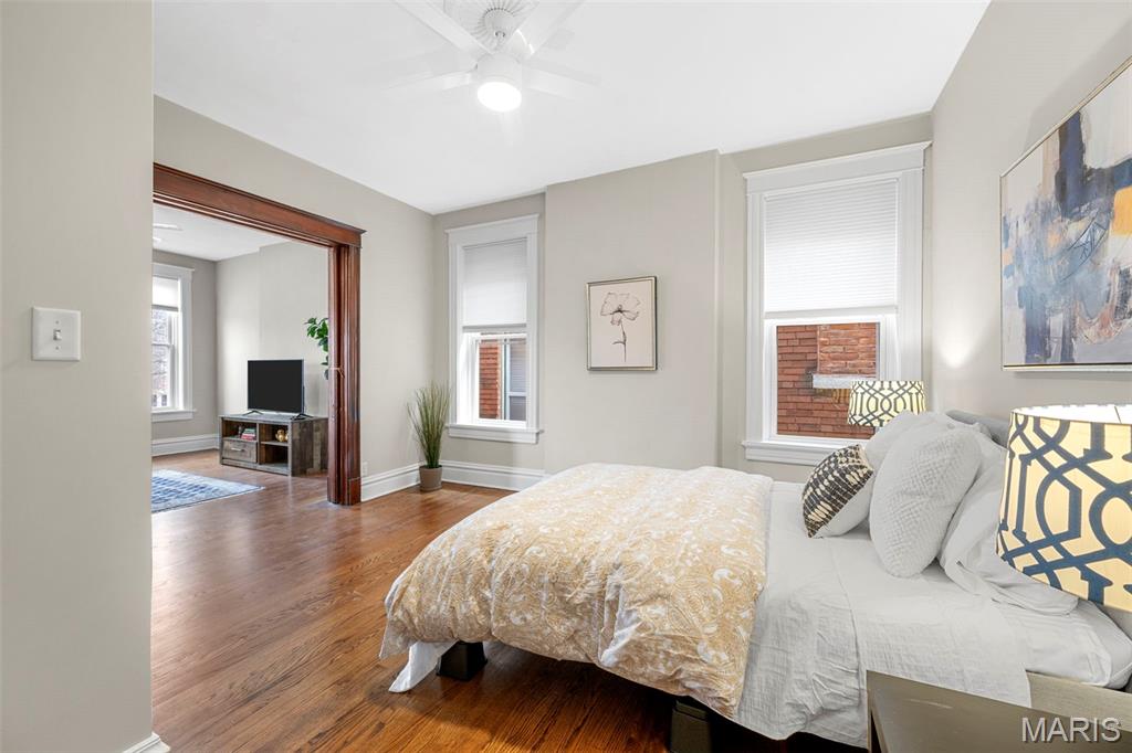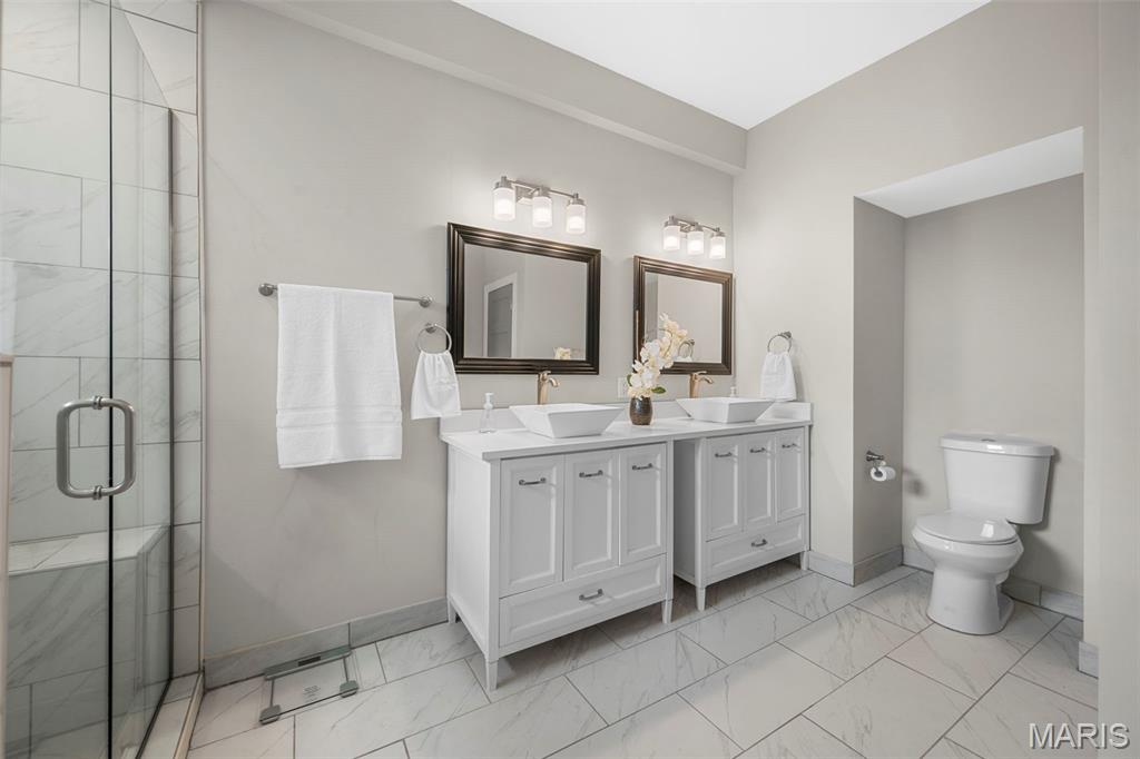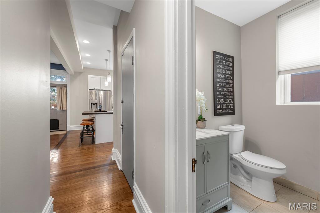 Live beautifully in the heart of Tower Grove East. This impeccably restored 1909 brick home pairs historic character with the refined updates today’s professionals expect—just moments from morning jaunts with your pets in Tower Grove Park and dinner reservations along South Grand. Inside, soaring 10-foot ceilings, rich hardwood floors, and a striking mahogany fireplace mantel create a warm, elevated atmosphere. The open-concept main level is designed for both effortless entertaining and relaxed evenings at home. The thoughtfully updated kitchen blends style and function with quartz and butcher block countertops, white shaker cabinetry, gorgeous inlaid hardwood flooring and stainless steel appliances—perfect for hosting friends or enjoying a quiet night in. Upstairs, the spacious primary suite feels like a private retreat, featuring a walk-in closet and a spa-inspired bath with a soaking tub, separate shower with new seamless glass doors, and double vanity with elegant vessel sinks. A second-floor office or large walk in closet opens to a private balcony—ideal for working from home with fresh air between meetings. Convenient second-floor laundry makes daily living seamless. Step outside to your own fenced backyard oasis with a patio for weekend grilling, space for your pup to roam, and two-carage covered parking—an exceptional convenience in the city. This is more than a home; it’s a lifestyle—walkable, architectural, and effortlessly sophisticated in Tower Grove East, one of St. Louis’ most desirable and happening neighborhoods.