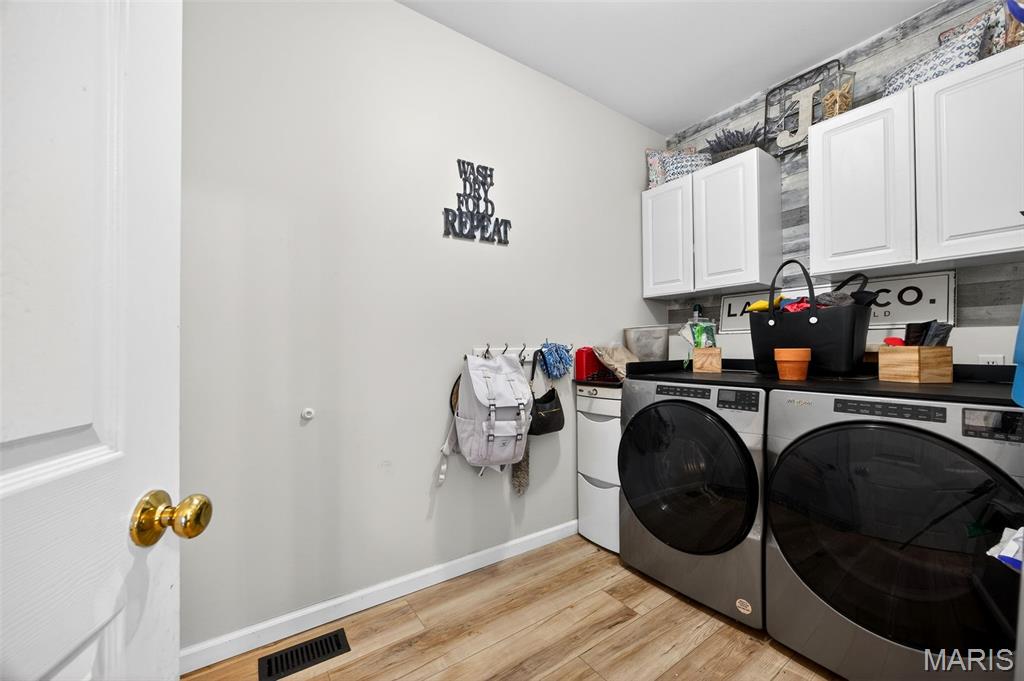 Gorgeous, well designed 2 story floor plan with open concept. Brick and sided elevation, nice front porch for waving. to walkers or relaxing and enjoying this quaint smaller subdivision with a community lake, friendly neighbors and schools that are keep people in the area with all that they offer. Step inside ~ the minute you walk in you will love the upscale decor accents that this home offers. Rear open stairs for a designer look. The office or living room offers a light bright place to read a book or take a call. The large great room with bay window and cozy fireplace ~ perfect for entertaining too. The tall ceilings offer a sophisticated flair to this home. Kitchen with updated appliances, gas stove for the chef of the house, center island, tons of cabinets offer the space for cooking and conversation. Designer lighting. The large main level laundry works as a mud room for the extra items, rain boots and backpacks. 1/2 bath on main level. The upper level offers 4 bedrooms. The primary bedroom with cathedral ceiling, enormous walk in closet, luxury bath with dual sinks, separate tub and shower. Bedrooms 2 & 3 with good window placement and well sized closets. Bedroom 4 with large walk in closet, custom wall treatment - just like an HGTV design. If all of this is not enough lets visit the finished lower level featuring a family room ~ great hang out space plus a sleeping room and full bath. A great teen suite of in-laws quarters. Lower level also offers a large storage area. 2 car garage, fenced yard, nice trees and landscaping make this home one that you will love. Location is near schools, shopping, dining, parks and easy highway access to Hwy 94, 40 or 364. Updates include: updated flooring 2024, HVAC 2019, sump pump 2018, hot water heater 2018, gutters updated and screen guards added 2019, main level updated paint 2024, ceilings on main level and upper level painted 2024. Schedule an appointment today - showings begin 3/7 at 10:00am!