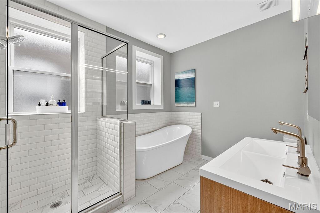 Stylish Updates, Prime Walkability, and Exceptional Indoor-Outdoor Living — This Townhome Has It All. Just blocks from Tower Grove Park, farmers markets, and some of the city's favorite restaurants, 4223 Hartford puts you in the heart of it all. Prefer to stay in? We get it — this beautifully updated and inviting home makes it hard to leave. Enjoy a spacious kitchen perfect for entertaining, two newly stained decks for relaxing or hosting, and thoughtfully renovated bathrooms that bring a touch of luxury to everyday living. Upstairs, you'll find three bedrooms, including a serene primary suite featuring a marble-floored bathroom, a walk-in shower, and a large soaking tub. Convenience meets comfort with second-floor laundry and a flexible layout that suits any lifestyle. Whether you're hosting friends or enjoying a quiet night at home, this townhome checks all the boxes. Don’t miss your chance to make it yours!