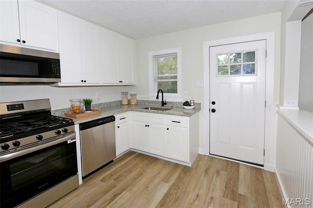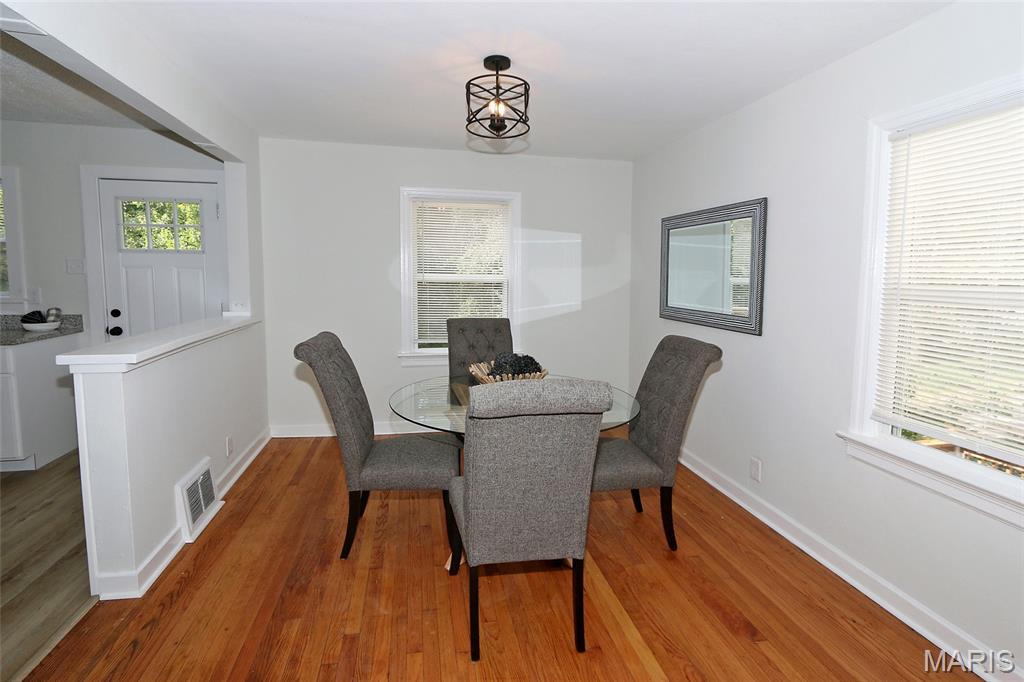 COMPLETELY UPDATED 2BR/1BA W/FULL BASEMENT! SHOWS LIKE A NEW HOME! Kitchen is ALL NEW--new white cabinets, new granite counters, all new stainless steel appliances including gas stove, & new wood flooring. All NEW windows w/blinds, NEW white 6-panel doors w/new hardware. Enter to spacious living room w/original wood floors that have been beautifully refinished. Living room is open to the dining room & kitchen. NEW exterior door from the kitchen out to NEW wooden deck that overlooks the large backyard that backs to trees. Two bedrooms with wood floors & NEW ceiling fans. Full hall bath is ALL NEW--new tub with new tile surround, new vanity, new mirror & light fixture, new toilet, new rectangular ceramic tile flooring. Attic fan. Full walk-out basement is unfinished. Home has been freshly painted throughout, even the basement! Quiet street. MUST SEE!!
