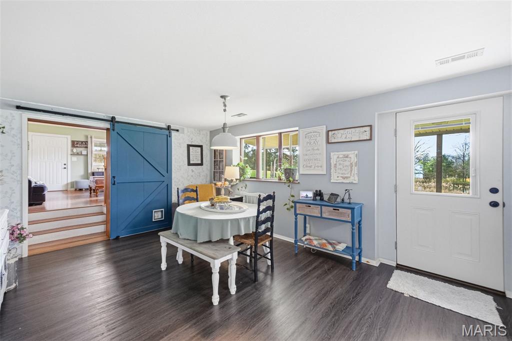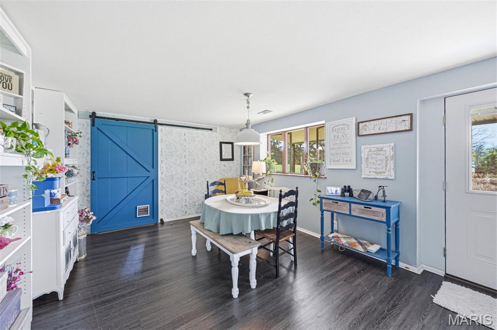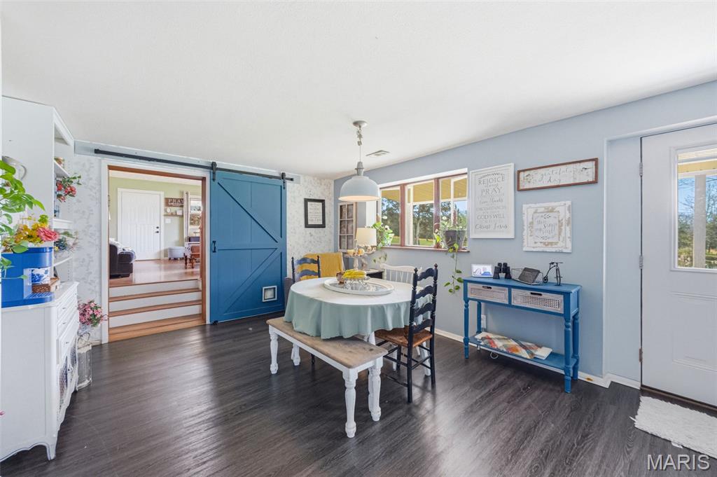 Looking for peace and tranquility? You’ll fall in love with this beautifully maintained 3-bedroom ranch, perfectly set on 2 level, park-like acres. Home is also located within minutes of Don Robinson State Park. Relax on the inviting covered front porch and take in the serene views of your private retreat. Step inside to a desirable, easy-flow layout with no-step entry, leading into a charming kitchen with a convenient tucked-away laundry area. The spacious bedrooms offer generous closet space, creating comfort and functionality throughout. Recent updates—including new siding, gutters, and architectural shingles—enhance both curb appeal and long-term peace of mind. Outside, the property truly shines. Enjoy an established garden in full bloom, a picturesque pond, and a fenced area ideal for pets or hobbies. A 10x10 shed with a garage door accommodates a 72" mower deck, offering excellent additional storage. For those needing workspace or extra parking, the detached 24x30 insulated 2-car garage is fully equipped with heating and cooling, along with an attached 2-car carport. With a robust 380 amp service, there’s more than enough power for both the home and workshop. Plus, a 12x20 barn with a concrete slab and loft provides even more storage options. This property offers the perfect balance of comfort, space, and peaceful country living—ready for you to call home.
