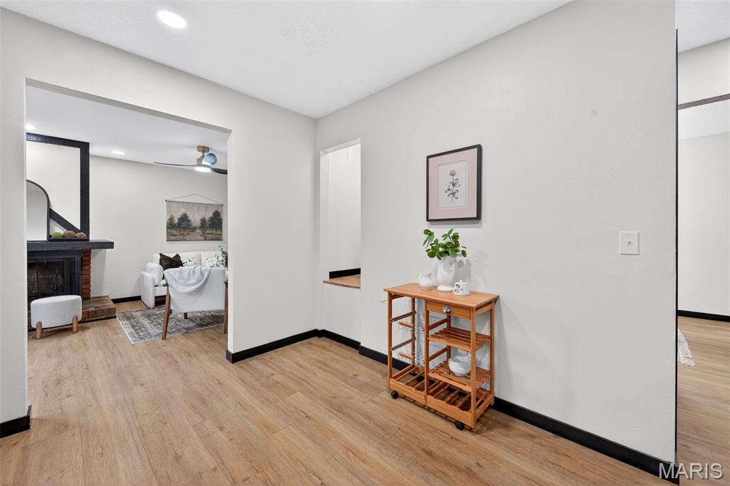Welcome home to 2701 Westminister Dr, where warmth, style, and comfort come together in this beautifully updated ranch. From the moment you walk in, you’re greeted by natural light, warm wood tones, and a clean modern design that instantly feels inviting. The living spaces are thoughtfully designed for both relaxing evenings and effortless entertaining, highlighted by a cozy fireplace that creates the perfect gathering spot. The fully updated kitchen is the heart of the home, featuring sleek cabinetry, modern finishes, and a layout that makes everyday living feel elevated. Just steps away, the dining area flows seamlessly, making it easy to host family and friends. With 3 spacious bedrooms and 2 updated bathrooms, there’s room for everyone to feel comfortable. Every detail — from the new flooring throughout to the stylish fixtures — has been carefully chosen to create a move-in-ready experience. Step outside and you’ll find a large, private backyard with mature trees, offering the perfect setting for morning coffee, weekend gatherings, or simply unwinding at the end of the day. The back deck extends your living space outdoors and is ideal for entertaining. With a new roof and major updates already completed, this home offers peace of mind along with modern style. Located in the heart of Saint Charles, you’ll enjoy a quiet neighborhood feel while still being close to everything you need.