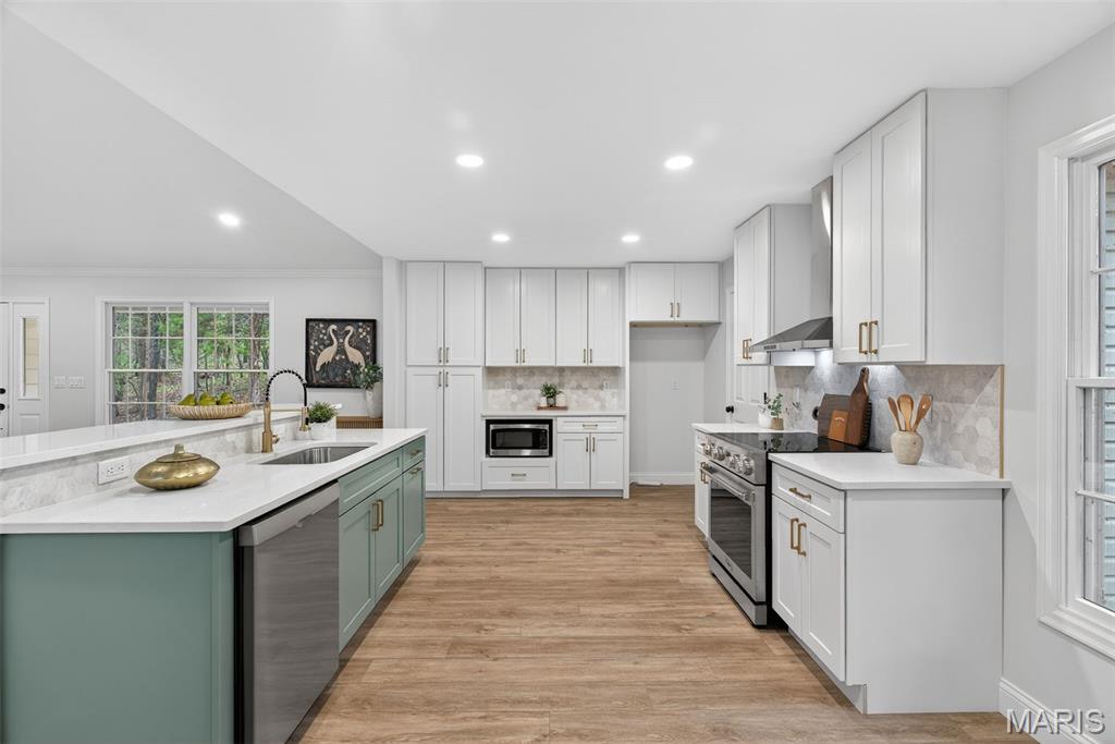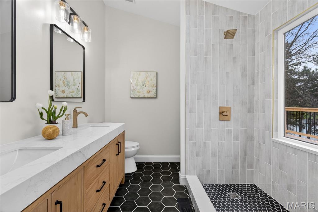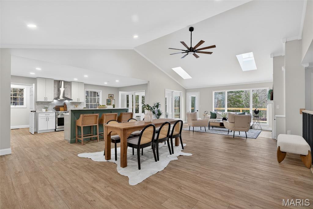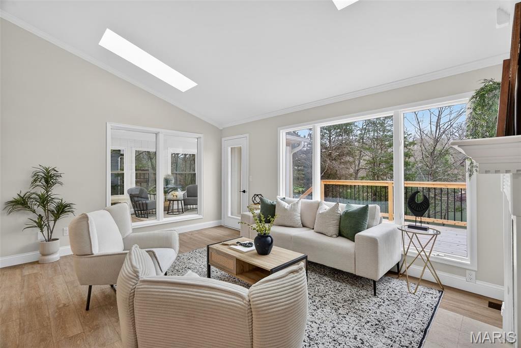Luxury Lakefront Living on Lake Whippoorwill in the prestigious Innsbrook subdivision. This fully renovated 3-bedroom, 3-bath residence is a rare offering, perfectly positioned on over an acre of prime waterfront and boasting over 2,500 square feet of thoughtfully designed living space. The open-concept floor plan is enhanced by expansive windows and skylights, filling the home with natural light and showcasing breathtaking lake views from nearly every angle. The living room serves as a warm and inviting centerpiece, featuring a charming wood-burning fireplace flanked by custom built-ins—perfect for cozy evenings and stylish storage. The beautifully updated kitchen is designed for both style and function, highlighted by a large center island ideal for gathering and entertaining. A sun room provides a serene, light-filled retreat, seamlessly blending indoor comfort with the beauty of the outdoors. The primary suite offers a private sanctuary, complete with a luxurious ensuite bath and a spacious walk-in closet. A generously sized second bedroom on the main floor provides flexibility for guests or additional living space. A fully renovated second bathroom adds both convenience and elevated style, while main floor laundry enhances everyday ease and functionality. The walk-out lower level expands the home’s living space, featuring a private bedroom, full bathroom, and a spacious family room—perfect for guests, recreation, or a secondary living area with direct access to the outdoors. Step outside to the dramatic two-story deck spanning the entire back of the home—an exceptional space for elevated entertaining or relaxing while taking in the tranquil waterfront setting. Residents of Innsbrook enjoy an exclusive lifestyle with access to resort-style amenities including a public championship 18-hole golf course, restaurants, pool, pickleball courts, fitness center, playground, and outdoor amphitheater—hosting live music, seasonal events, and year-round entertainment. Explore multiple lakes, sandy beaches, and scenic walking trails, all just moments from your door. Every detail has been carefully renovated to deliver a true turnkey experience, combining modern luxury with the peaceful charm of lakeside living. An extraordinary opportunity to own a private waterfront estate in one of Innsbrook’s most coveted locations.