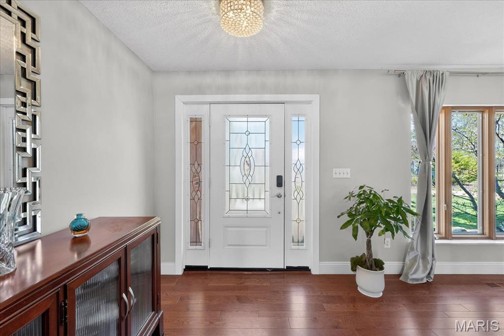 NEW ROOF AND HVAC. You won't want to miss this all brick, open floor plan ranch with approximately 3,500 square feet of living space situated on a stunning lot just under 3/4 of an acre. Inside, you’ll find five spacious bedrooms—each with its own walk-in closet—providing exceptional storage and flexibility. Gorgeous hardwood flooring flows throughout the great room, kitchen, dining room, sitting room, hallway, and primary suite, creating a warm and cohesive feel. The stylish navy and white kitchen is both functional and eye-catching, featuring stainless steel appliances, a coffee bar, and a center island with breakfast bar seating—perfect for gathering and everyday living. The adjacent great room offers an inviting space for relaxing or entertaining. If you like entertaining you will love the additional space provided by the large dining room and sitting room. The generously sized primary suite includes a walk-in closet and a luxury bath with a separate soaking tub and shower. Two additional bedrooms, a second full bath, a large laundry room, and a convenient half bath complete the main level. The finished walk-out lower level expands your living space with two additional bedrooms (both with walk-in closets), a family room, game area, and a possible kitchenette setup—ideal for guests or multi-generational living. There’s also a massive storage area with potential for future finishing. And don’t miss the adorable bonus: a custom “bedroom” just for your dog! Additional features and updates include central vac system, covered patio and firepit area. Located within the highly sought-after Rockwood School District, this home also enjoys all the benefits of being within Fenton city limits, including less taxes, free weekly trash, recycling, and yard waste pickup, discounted access to the 71,000 sq ft RiverChase Recreation Center, and proximity to numerous parks and connected walking trails.