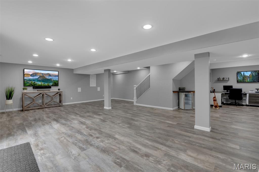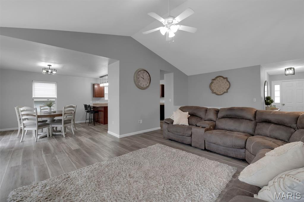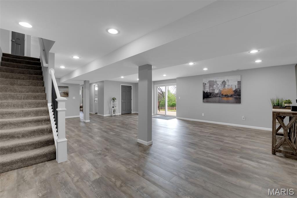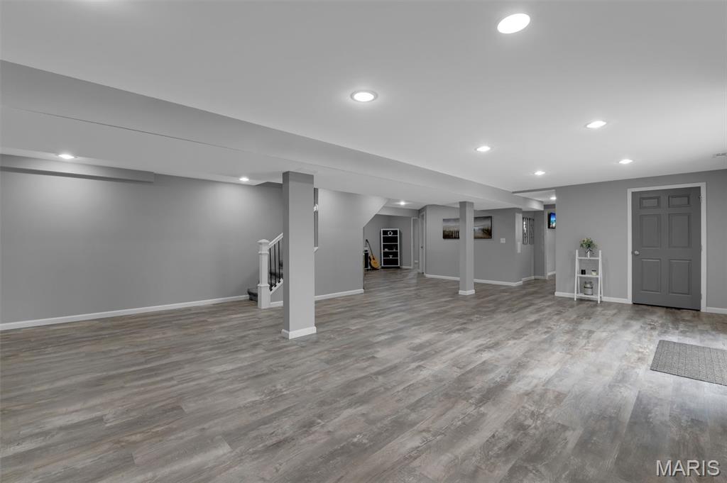This beautifully designed ranch-style home offers the perfect blend of comfort and modern convenience. Featuring 3 spacious bedrooms upstairs and an open layout that is both functional and inviting. Luxury vinyl plank flooring runs throughout, adding durability and a sleek, cohesive look to every room. A convenient main floor laundry room makes laundry easy and efficient. The kitchen is well-appointed with stainless steel appliances, ample cabinetry, and a layout that flows seamlessly into the living and dining areas—ideal for both entertaining and daily life. The primary bedroom has a walk-in closet and ceiling fan. The primary bath has a soaking tub, double sinks and separate shower. Downstairs, the full finished basement expands your living space with a large recreation room, an additional bedroom, a versatile bonus room perfect for an office or gym, and a third full bath—providing flexibility for guests or extended living arrangements. Step outside to enjoy a fully fenced backyard that backs to a peaceful line of trees, offering both privacy and a serene natural backdrop. This home combines practical features with thoughtful design, making it a standout choice for comfortable, modern living. Don't miss the subdivision pool, sports court and playground at the front of the subdivision entrance.