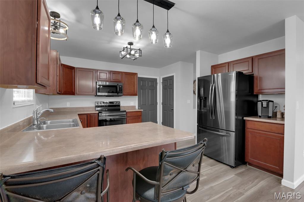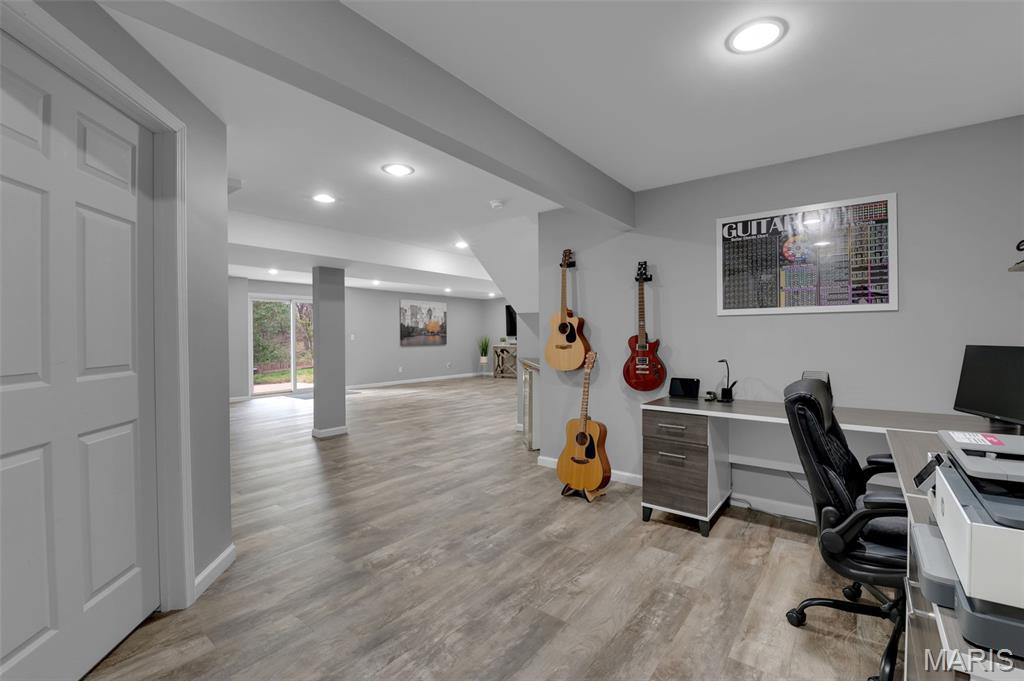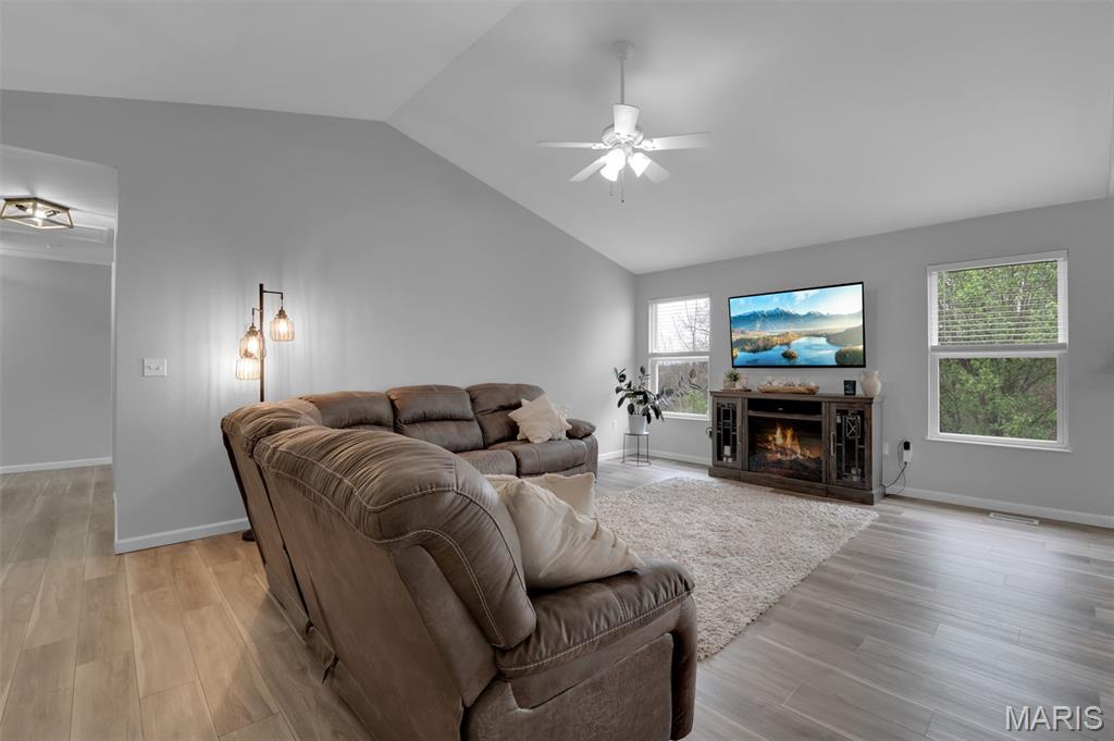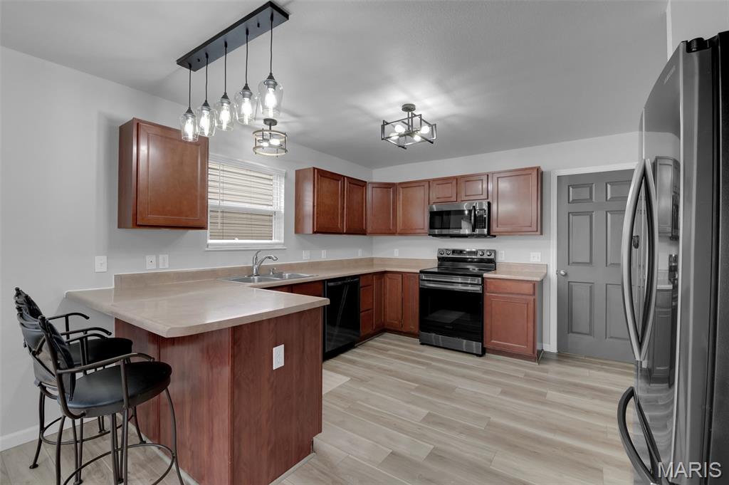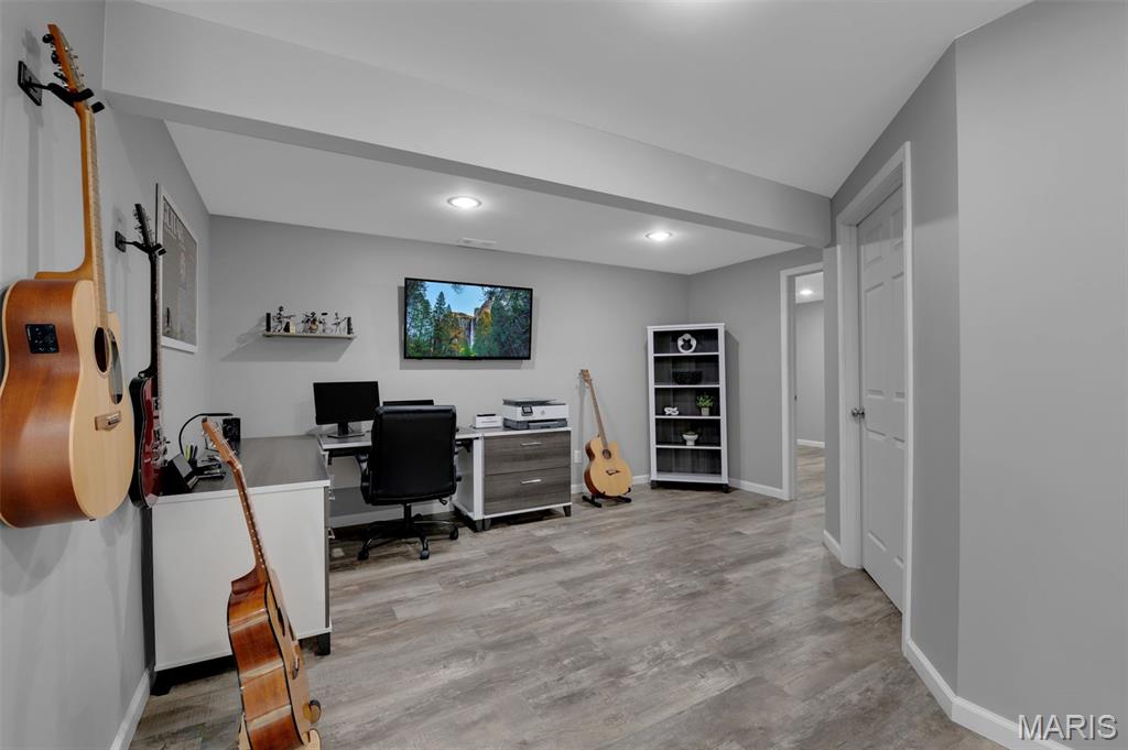 This beautifully designed ranch-style home offers the perfect blend of comfort and modern convenience. Featuring 3 spacious bedrooms upstairs and an open layout that is both functional and inviting. Luxury vinyl plank flooring runs throughout, adding durability and a sleek, cohesive look to every room. A convenient main floor laundry room makes laundry easy and efficient. The kitchen is well-appointed with stainless steel appliances, ample cabinetry, and a layout that flows seamlessly into the living and dining areas—ideal for both entertaining and daily life. The primary bedroom has a walk-in closet and ceiling fan. The primary bath has a soaking tub, double sinks and separate shower. Downstairs, the full finished basement expands your living space with a large recreation room, an additional bedroom, a versatile bonus room perfect for an office or gym, and a third full bath—providing flexibility for guests or extended living arrangements. Step outside to enjoy a fully fenced backyard that backs to a peaceful line of trees, offering both privacy and a serene natural backdrop. This home combines practical features with thoughtful design, making it a standout choice for comfortable, modern living. Don't miss the subdivision pool, sports court and playground at the front of the subdivision entrance.