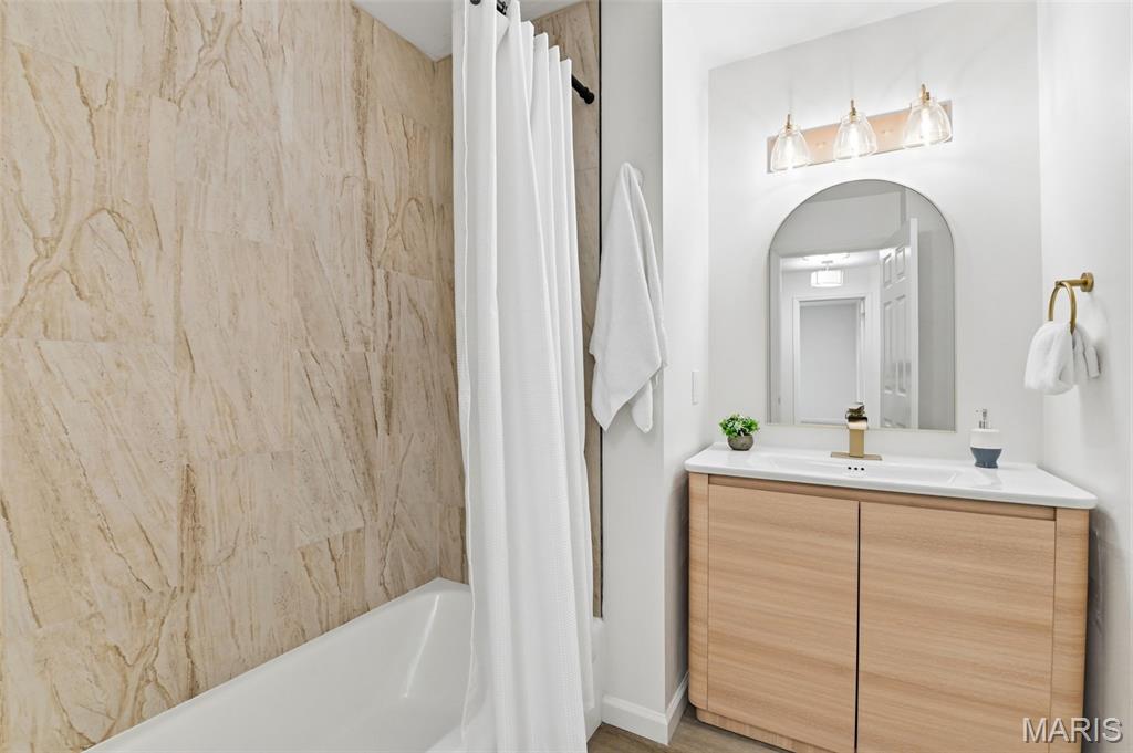 Don't miss this beautifully renovated 3 bed, 2 bath condo nestled in one of Chesterfield's most desirable communities. Every inch of this unit has been thoughtfully updated — from the stunning kitchen featuring white shaker cabinets, quartz countertops, gold hardware, and stainless steel appliances, to the spacious living room with a cozy fireplace perfect for those Missouri winters. The primary suite is a true retreat with a custom board-and-batten accent wall, private balcony access, and room to breathe. Two balconies total give you outdoor space to enjoy the mature, wooded surroundings Baywood Village is known for. Community amenities don't disappoint — enjoy the pool, clubhouse, and elevator access, all wrapped in classic brick architecture with immaculate landscaping maintained year-round. This is lock-and-leave living at its finest in the heart of Chesterfield. Close to 40/64, top-rated Rockwood schools, shopping, and dining — yet tucked away in a peaceful, established community. Move-in ready. Nothing to do but unpack.