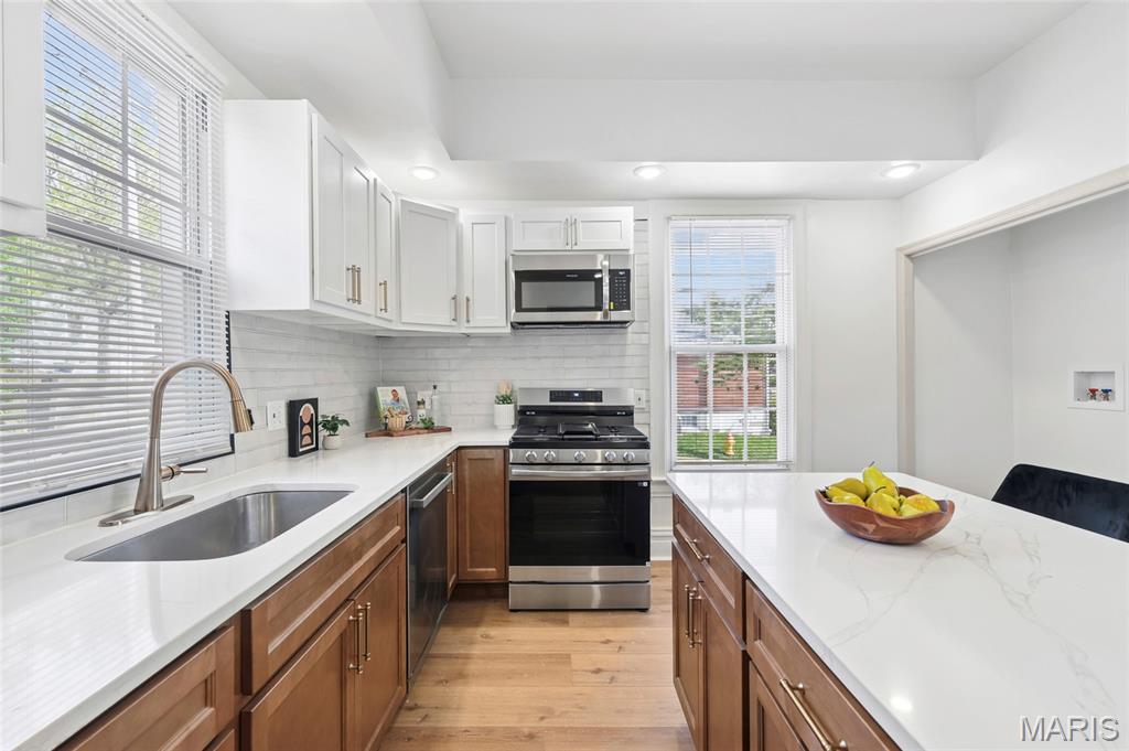 Welcome to this stunning 2 story Tudor style Maplewood gem. This spacious home on a corner lot has updates galore and lots of sunlight. The main level offers a light filled living room, fully updated kitchen with laundry, gorgeous dining room, and a 1/2 bath. The upper level offers 3 bedrooms, lots of storage space, and a fully updated full bathroom. The finished lower level offers a recreation room, another fully updated full bathroom, and a utility room with additional space for storage. Outside you will find a deck with access just off the kitchen - making it perfect for grilling and entertaining. The spacious backyard is enclosed by a privacy fence and offers plenty of space for garden boxes, playsets, or pups. There is a private driveway behind the privacy fence as well as a storage shed for all your outdoor toys and tools. Located directly across from Yale Park, this home has everything you could want and need!